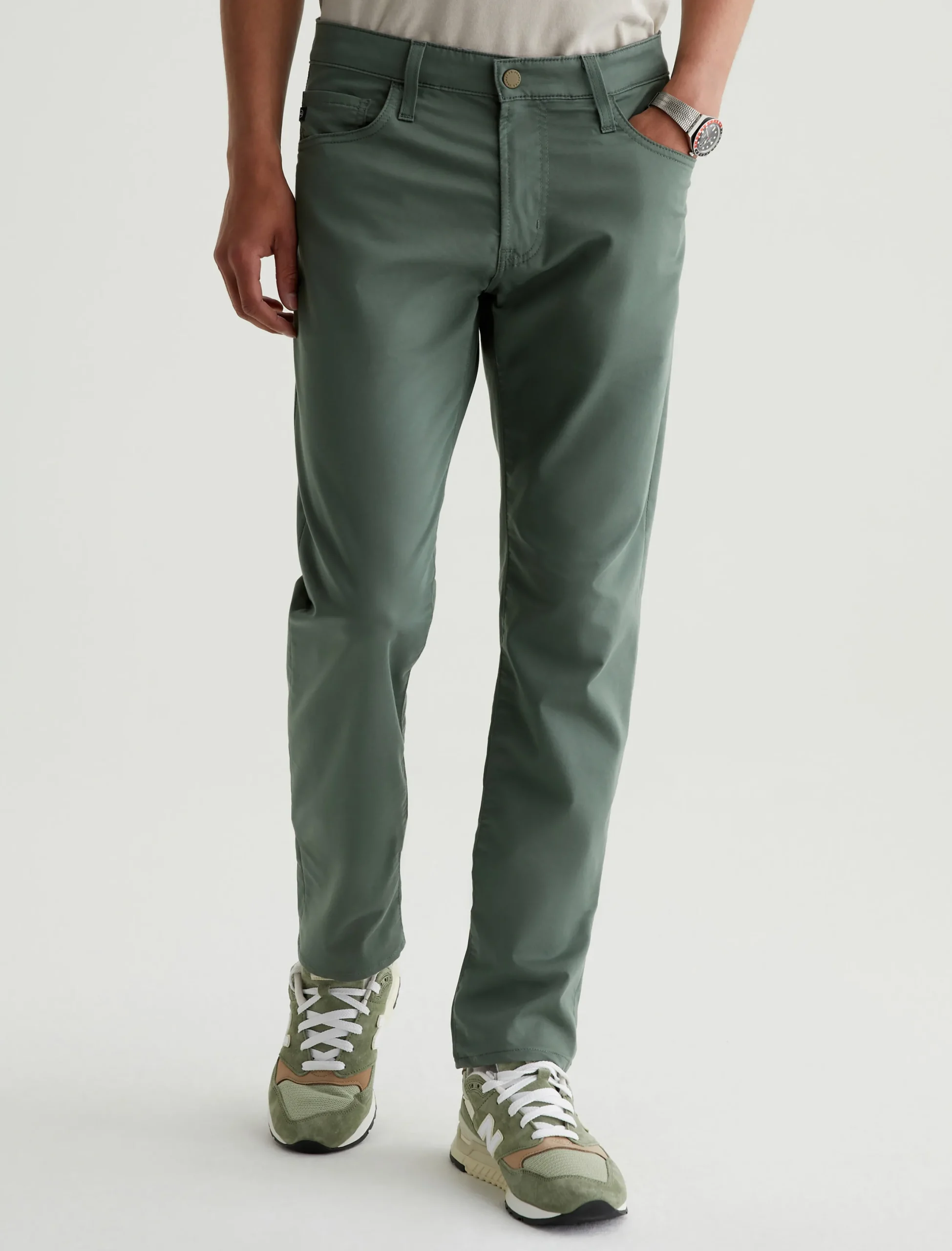 The Tellis Performance pants feature our signature modern slim fit in exclusive 5.9 oz. Airluxe™ Commuter Performance Sateen. Updated here in a spring green shade, the fabric has a soft, refined texture and premium stretch for enhanced mobility. With a fitted upper block and tapered leg opening, these five-pocket men’s pants offer equal parts style and comfort to keep your look elevated in any situation.