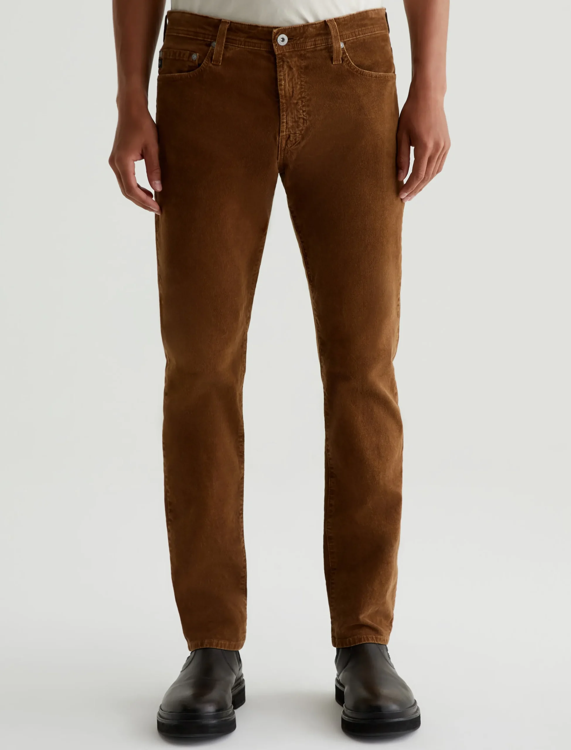 The Tellis is our modern slim-fit pant for men, updated here in 8.8 oz. Range Stretch Cord fabric from Japan. It’s got fine-wale construction with a premium look and luxe feel. Sulfur-dyed for a rust-brown shade, these five-pocket corduroy pants have a fitted upper block and slender legs with a tapered finish.