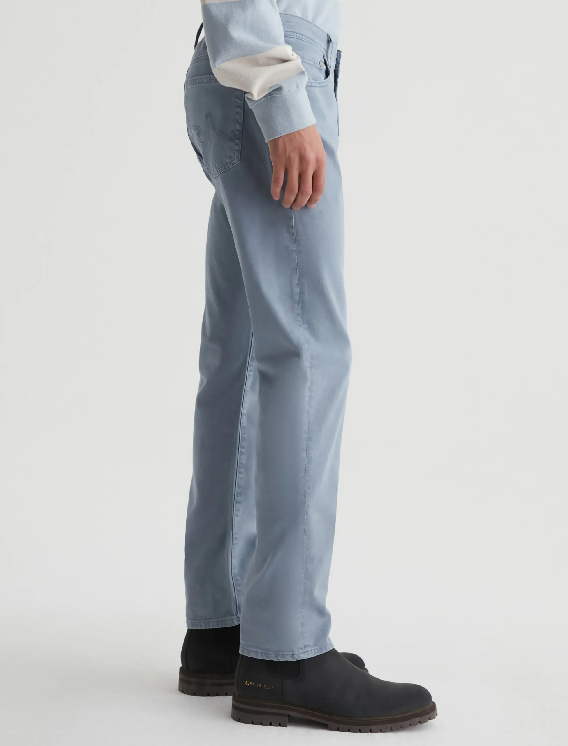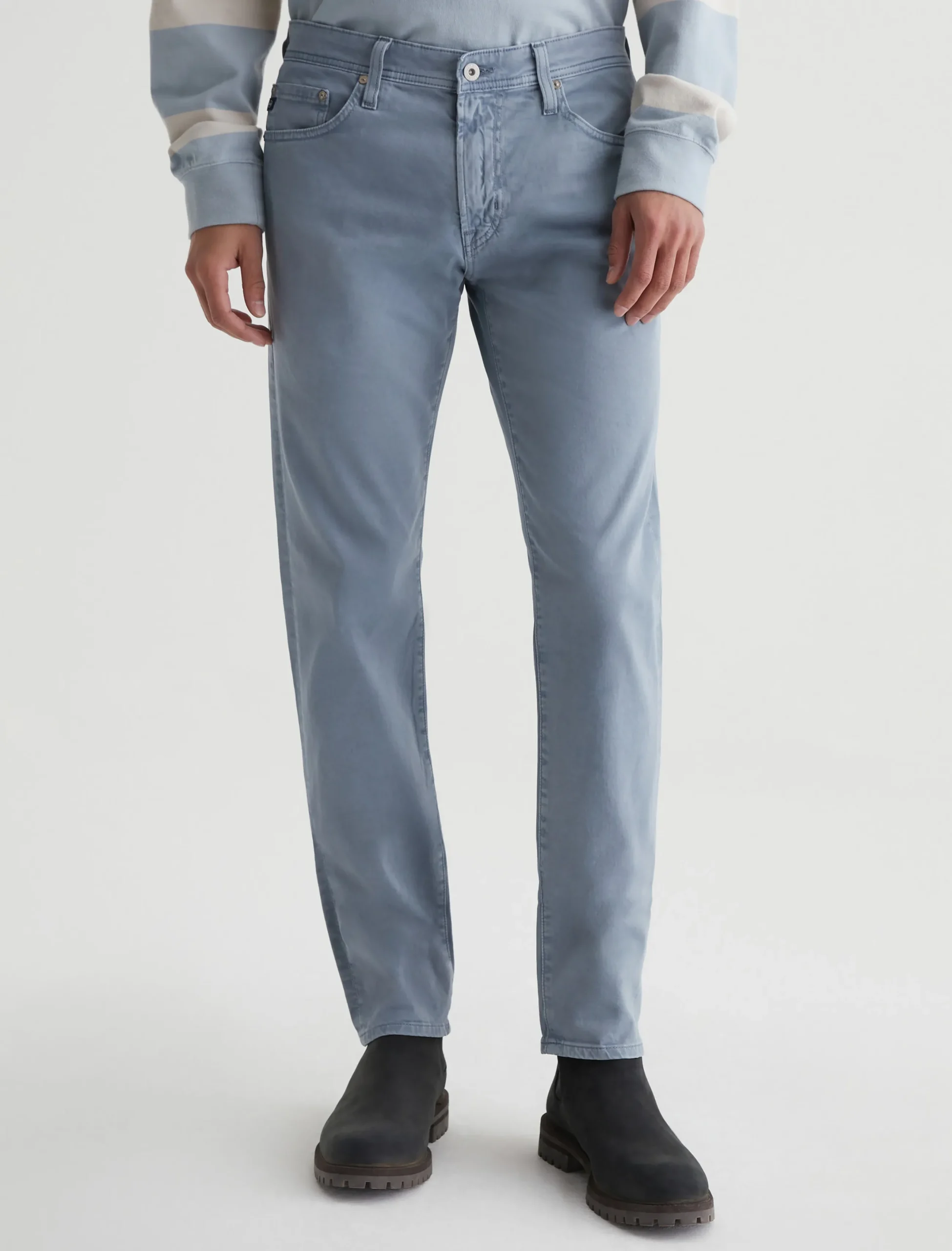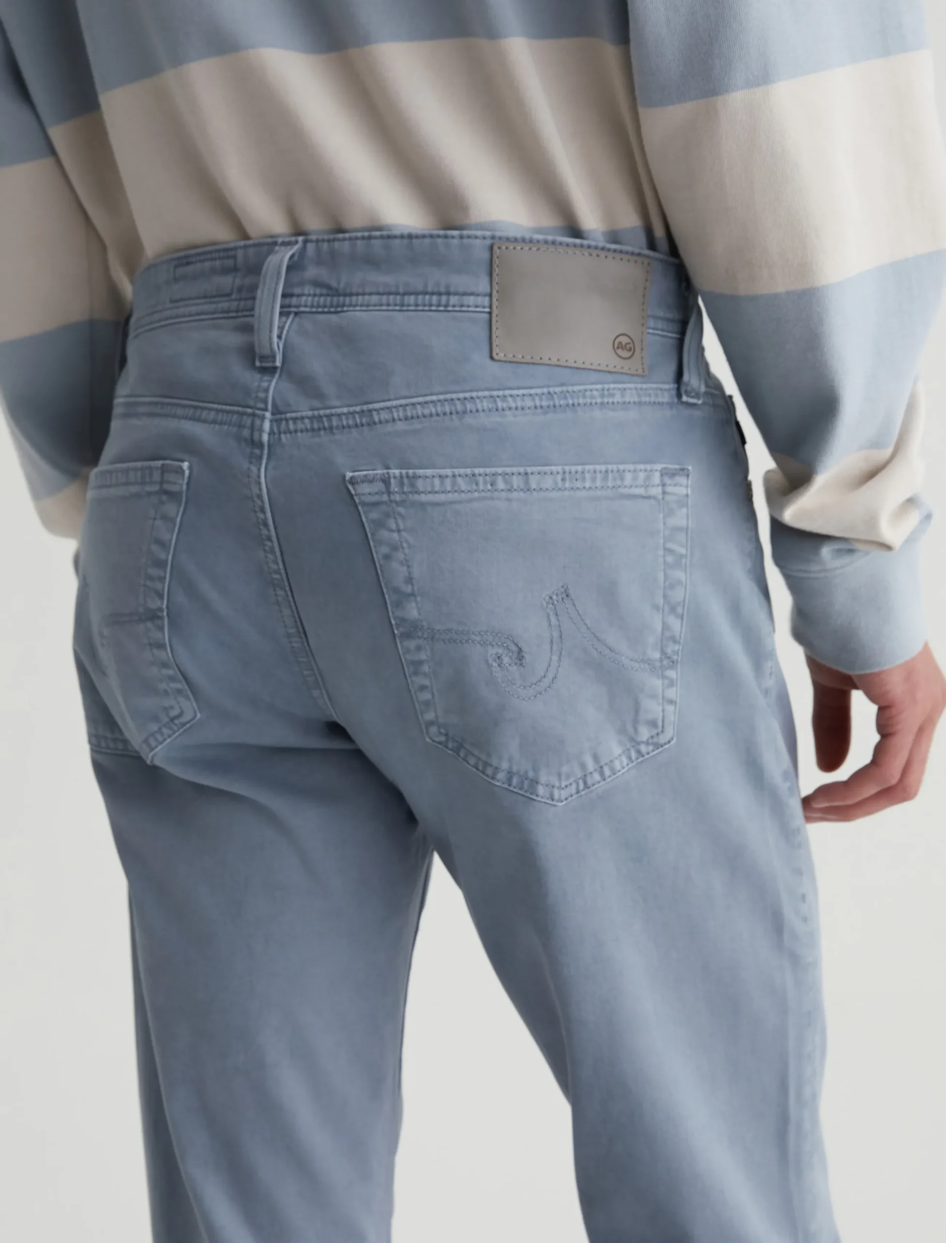 Tellis is our modern slim fit for men, updated here in a sulfur-dyed shade of blue with a gently faded look. The style has a fitted upper block and tapered leg opening. These five-pocket men’s pants are cut from lightweight 8.4 oz. Sueded Stretch Sateen from Italy—it’s soft, refined, and incredibly comfortable.