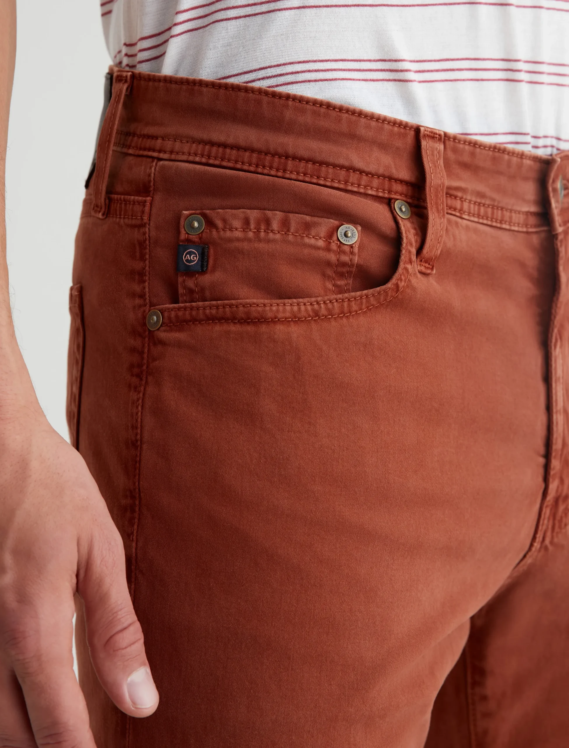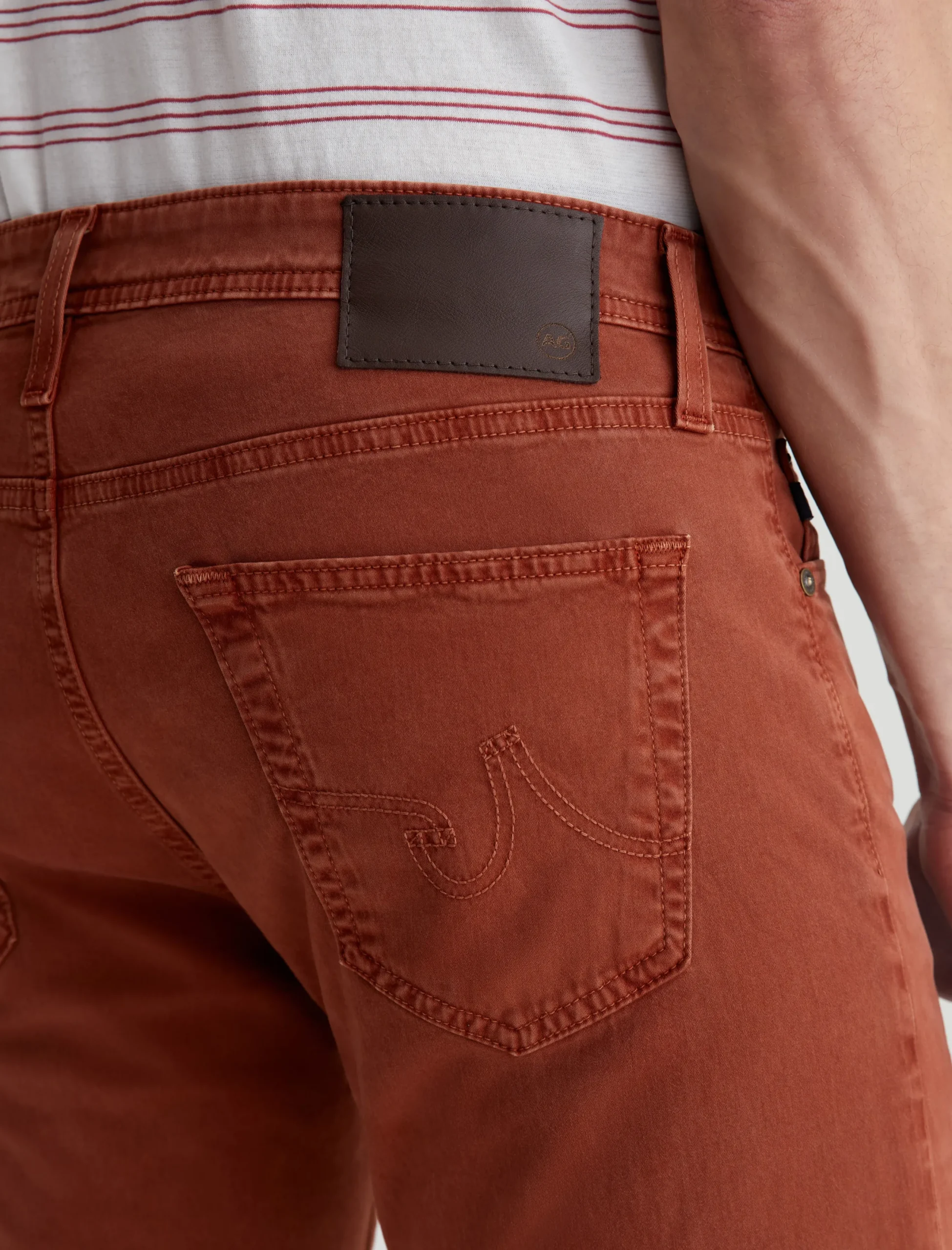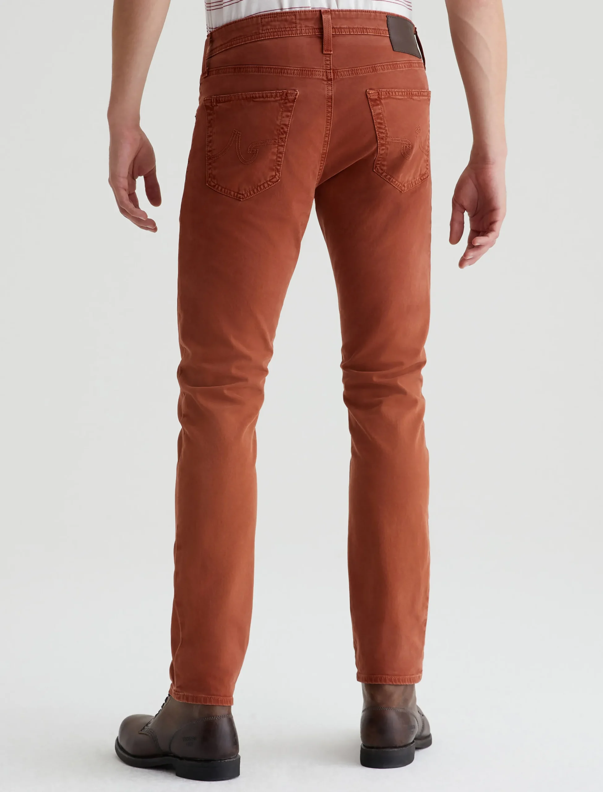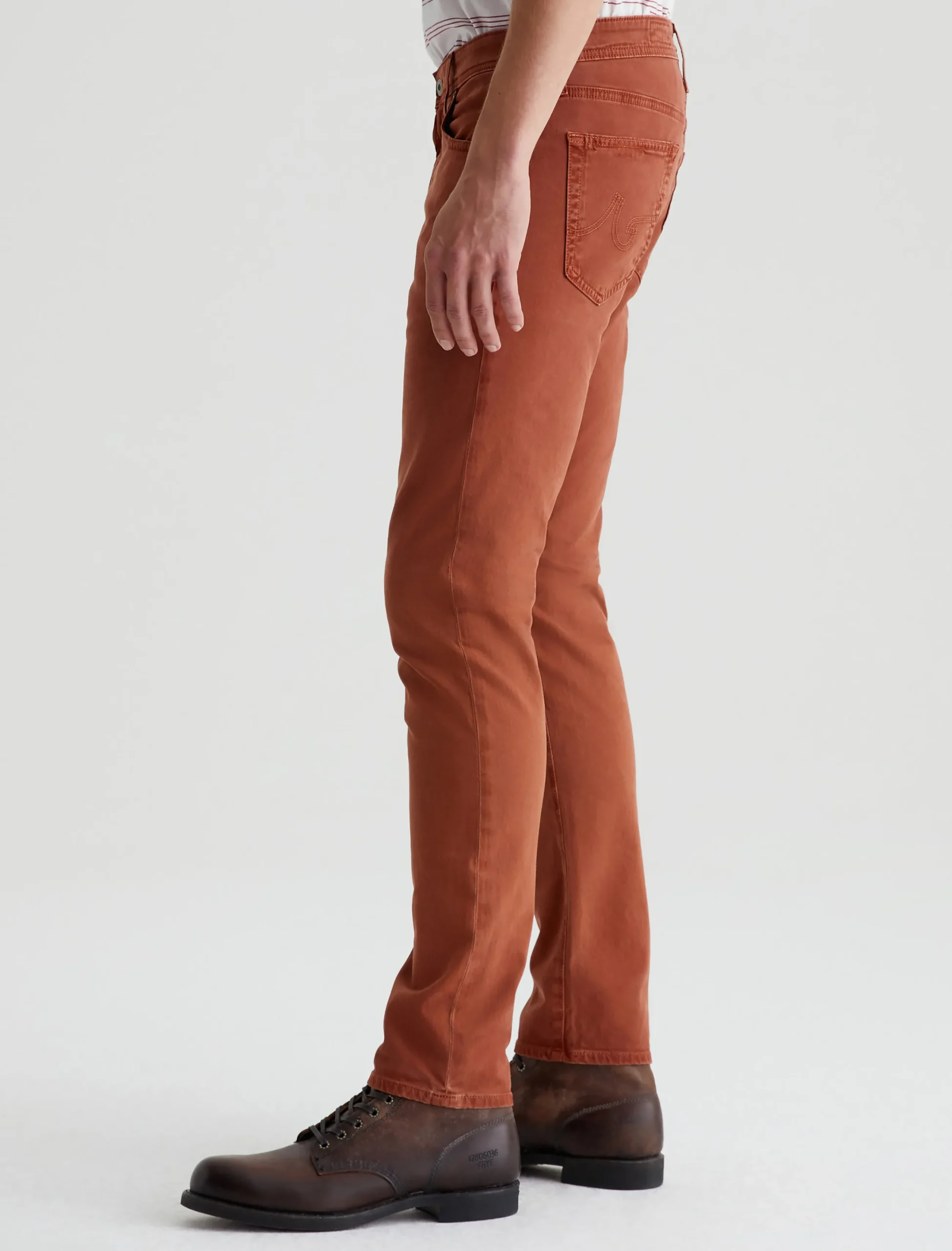 Tellis is our modern slim fit with a fitted upper block and a tapered leg opening. Sulfur-dyed for a faded cinnamon-red shade, these five-pocket men’s pants are soft, refined, and incredibly comfortable in lightweight Sueded Stretch Sateen from Italy.