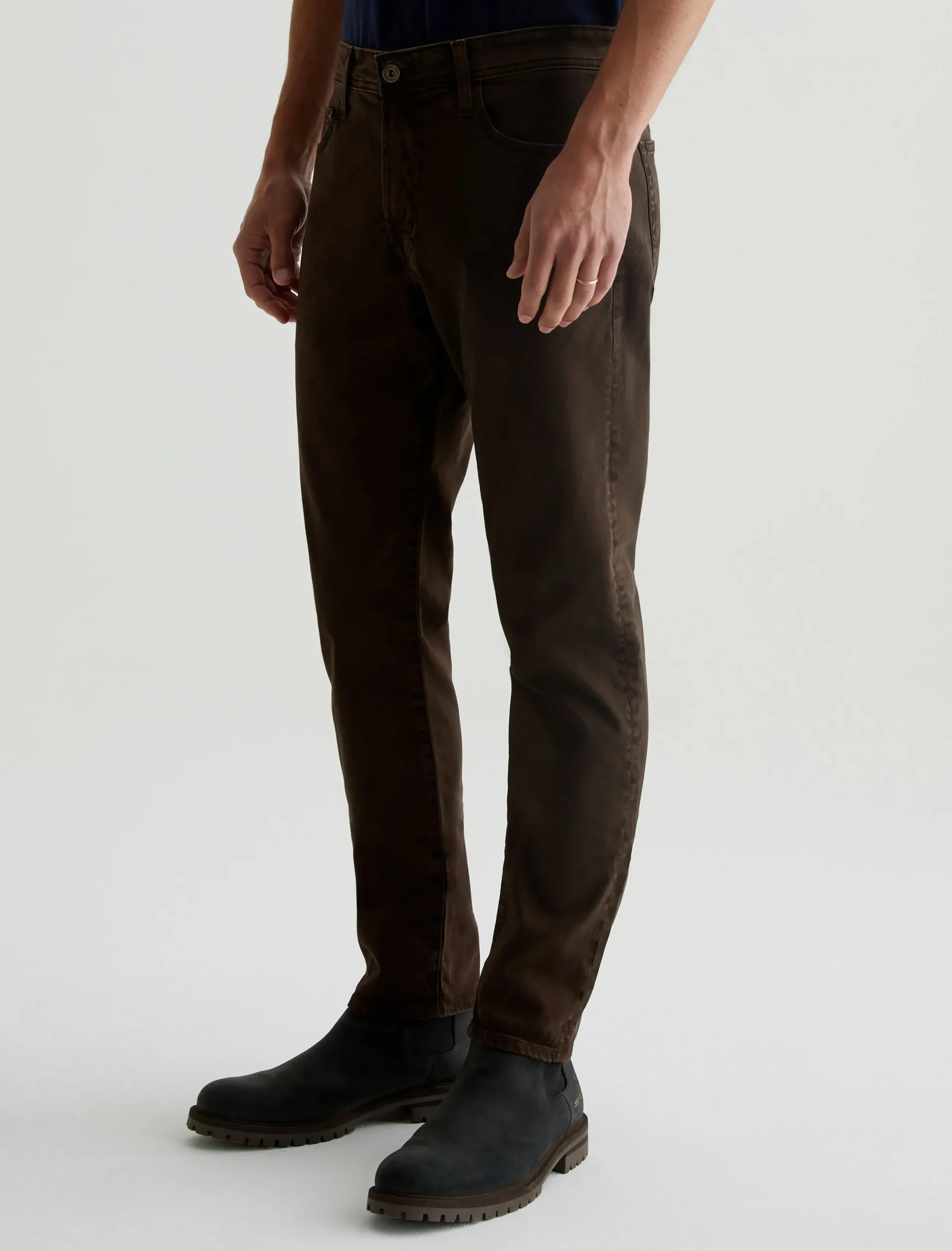 Tellis is our modern slim fit with a fitted upper block and a tapered leg opening. Sulfur-dyed for a dark-brown shade, these five-pocket men’s pants are soft, refined, and incredibly comfortable in lightweight Sueded Stretch Sateen from Italy.