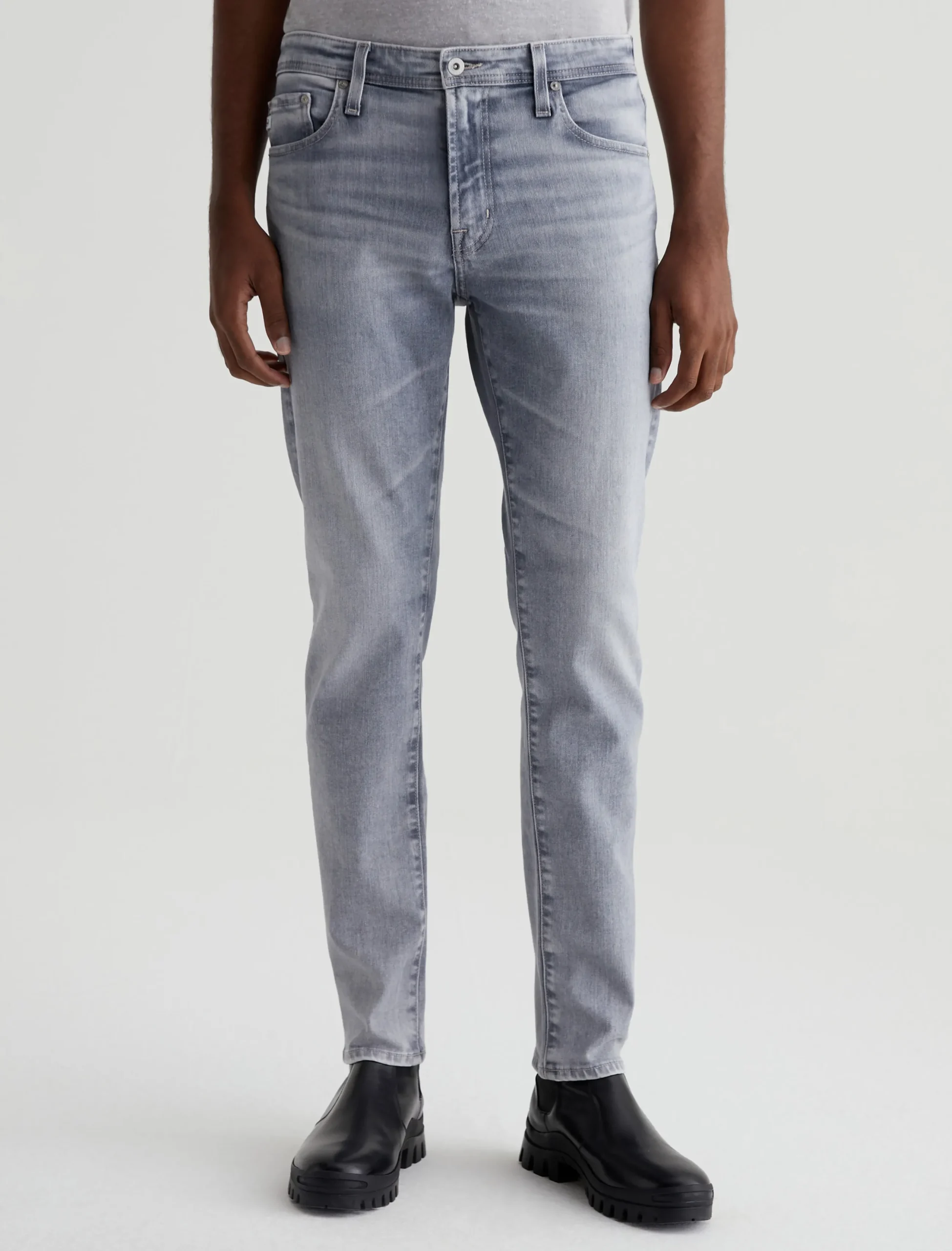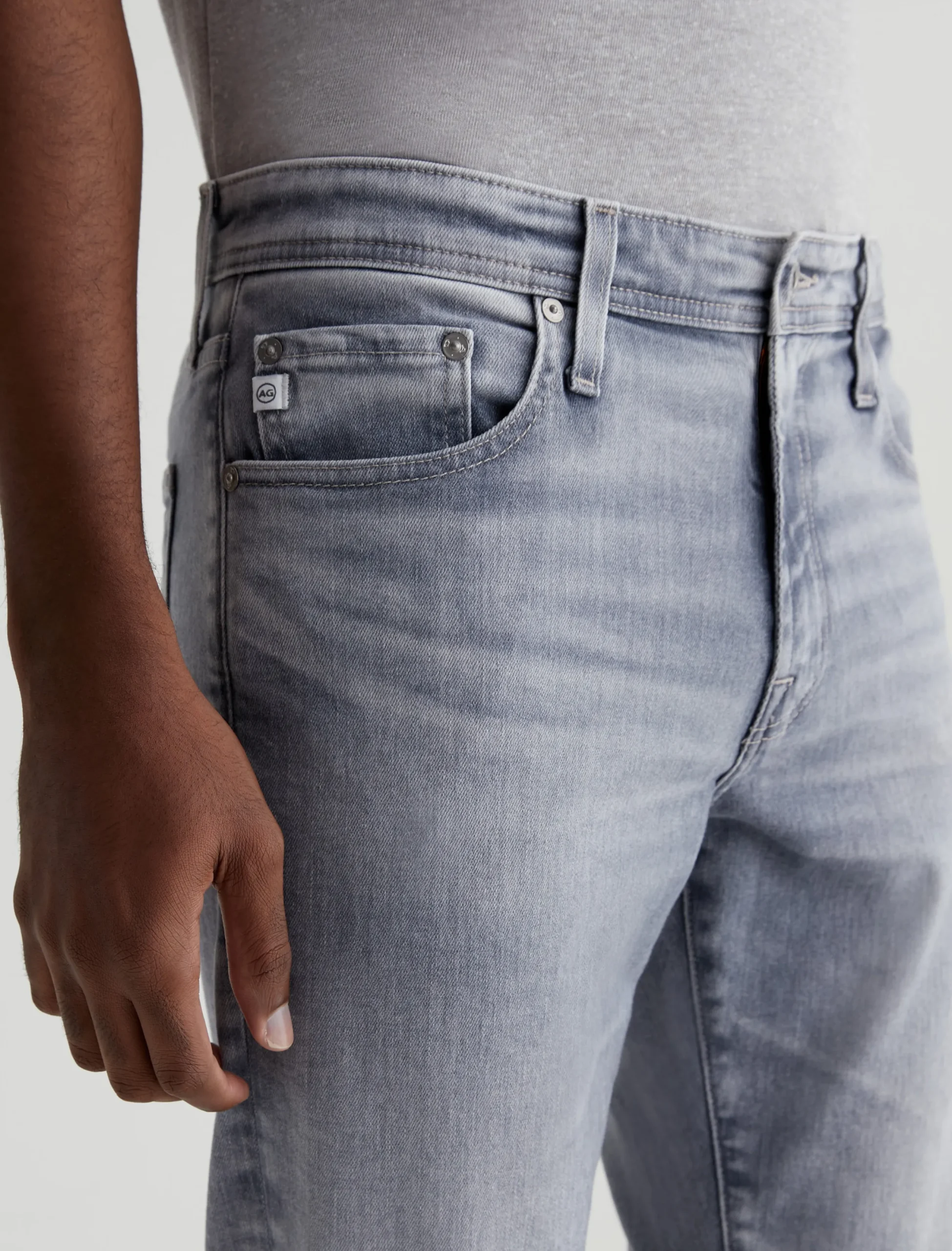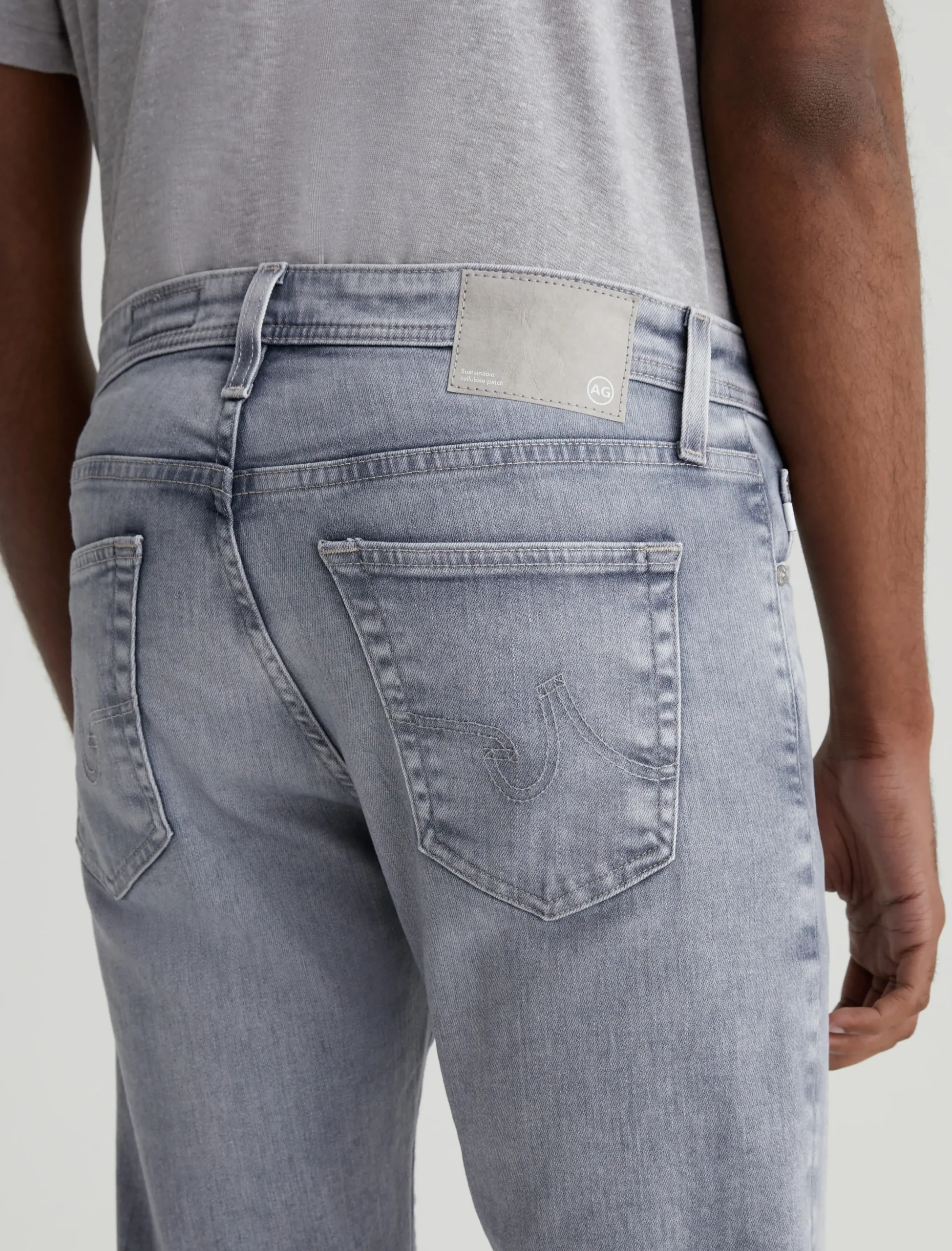 Our Tellis modern slim men’s jeans are made using AG’s eco-friendly AG Vapor Wash™ technology. Defined by a fitted upper block and tapered leg opening, these five-pocket jeans are designed in 10 oz. Ashen Stretch Denim with a faded grey shade. Our AG Vapor Wash™ process significantly reduces the use of water, chemicals, and energy to lessen environmental impact. Finished with a vegan and 100% biodegradable cellulose patch at the back waistband.