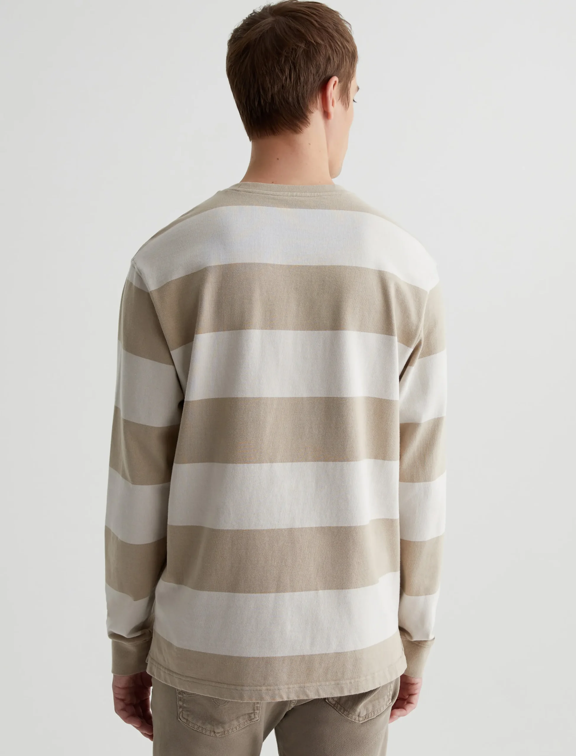 The Wade Long-Sleeve Crew is a relaxed pullover in heavy cotton jersey with vintage-inspired rugby stripes. Designed after preppy collegiate styles, it pairs equally well with jeans and casual tailored silhouettes.