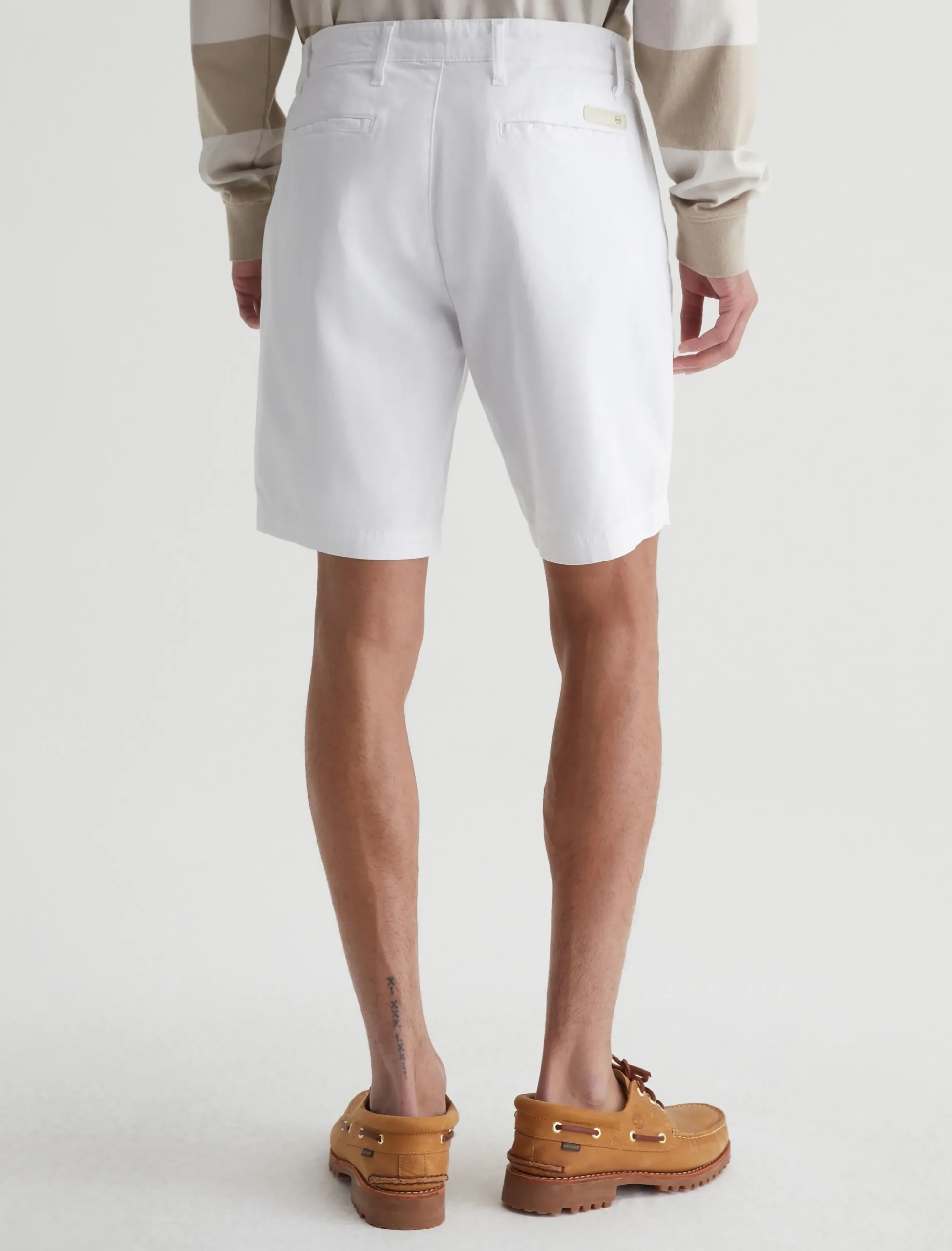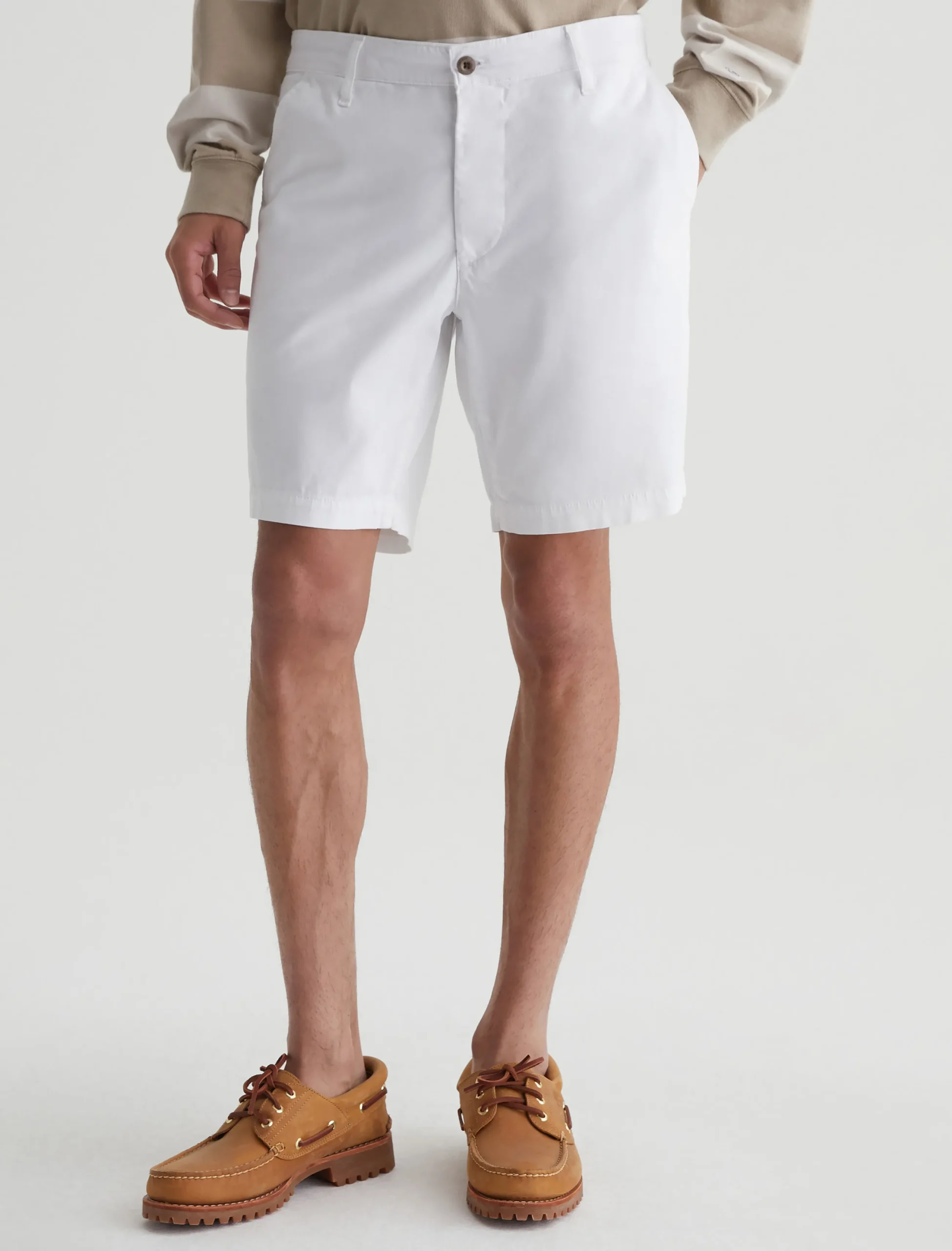 Our Wanderer Short for men has a clean trouser look in a slim fit with slightly tapered legs. Done in bright white, these men’s shorts are crafted from ultra-lightweight and sumptuous 7.4 oz. Brighton Sueded Sateen with premium stretch.