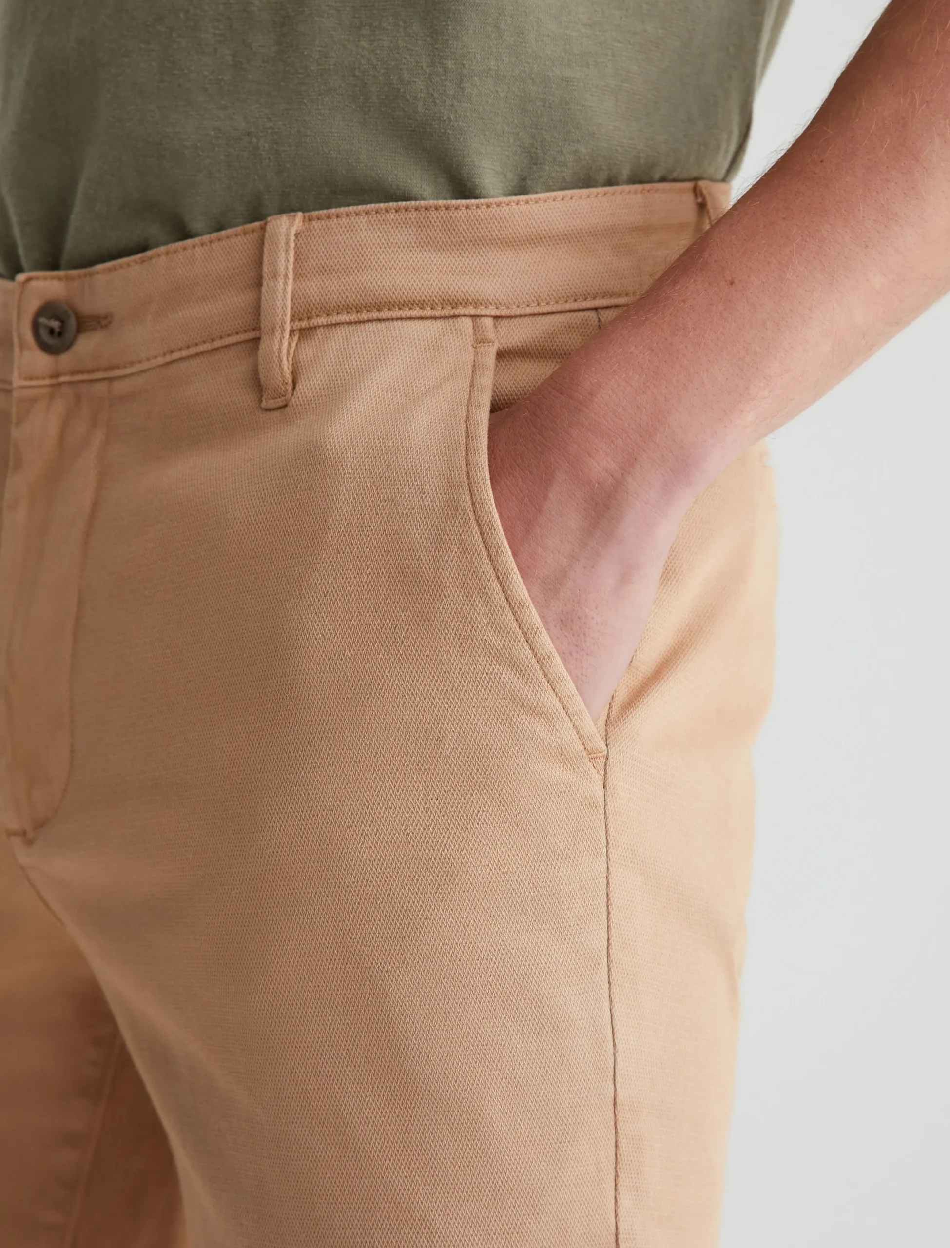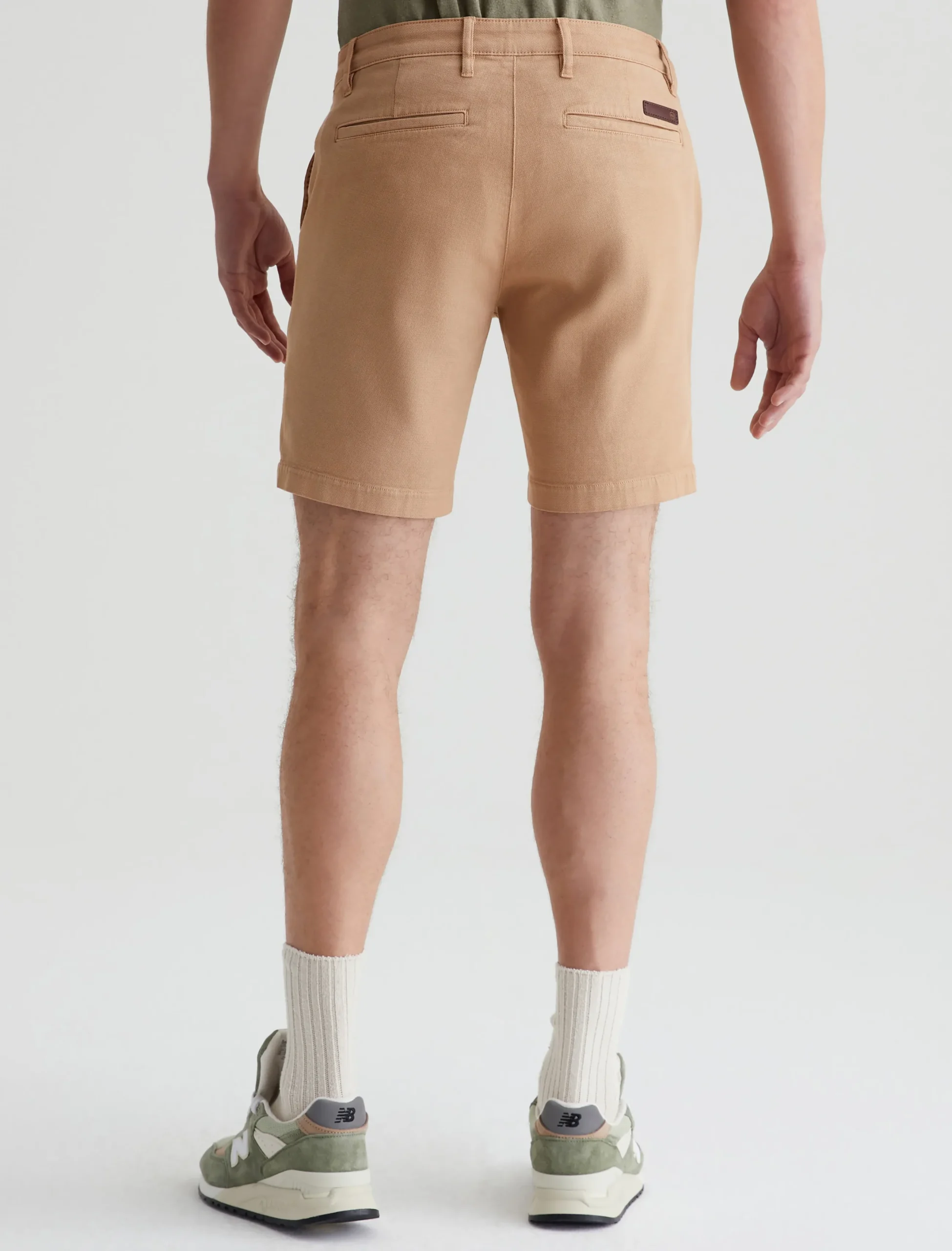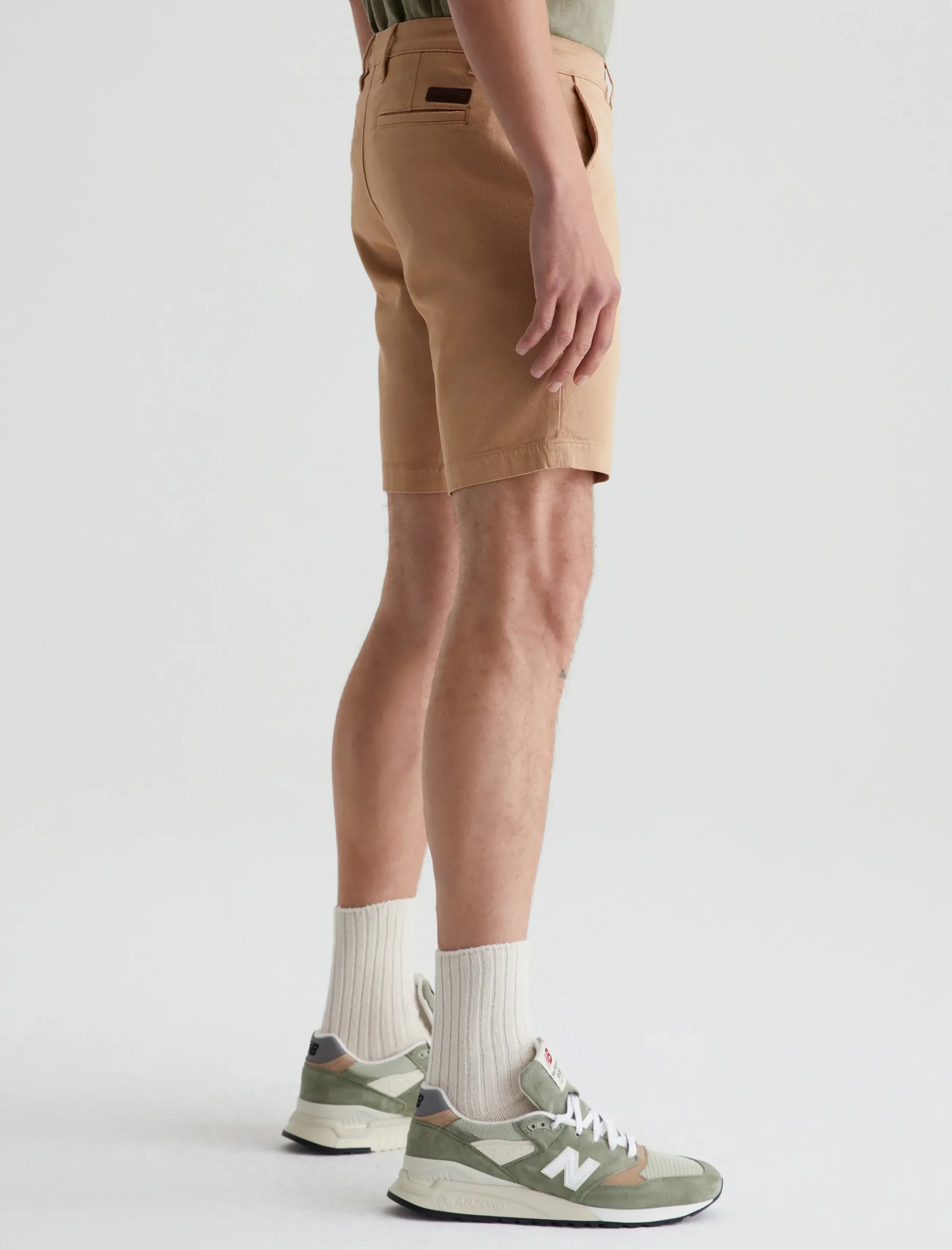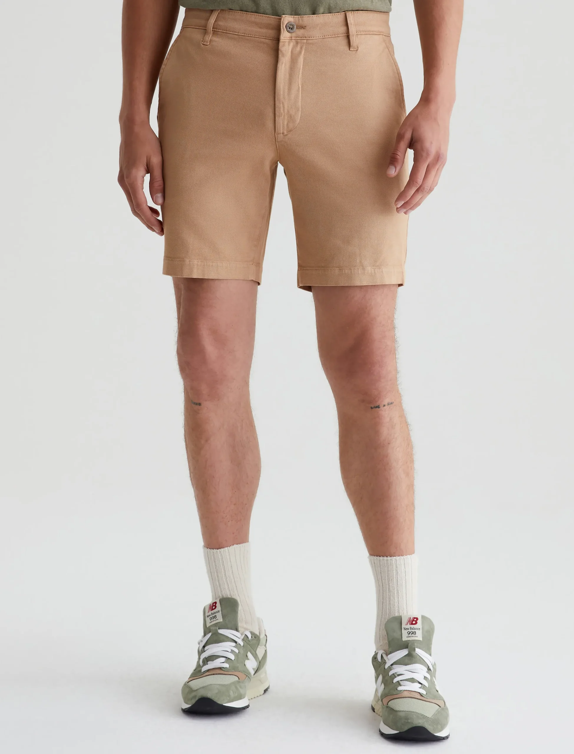 The Wanderer Short for men is tailored for a slim fit in 7.35 oz. Unite Dobby Cotton, a lightweight stretch-blend fabric that’s perfect for warmer days. Featuring a sulfur-dyed khaki color, these men’s shorts have a classic trouser look with a mid-rise waist and a slightly tapered leg opening.