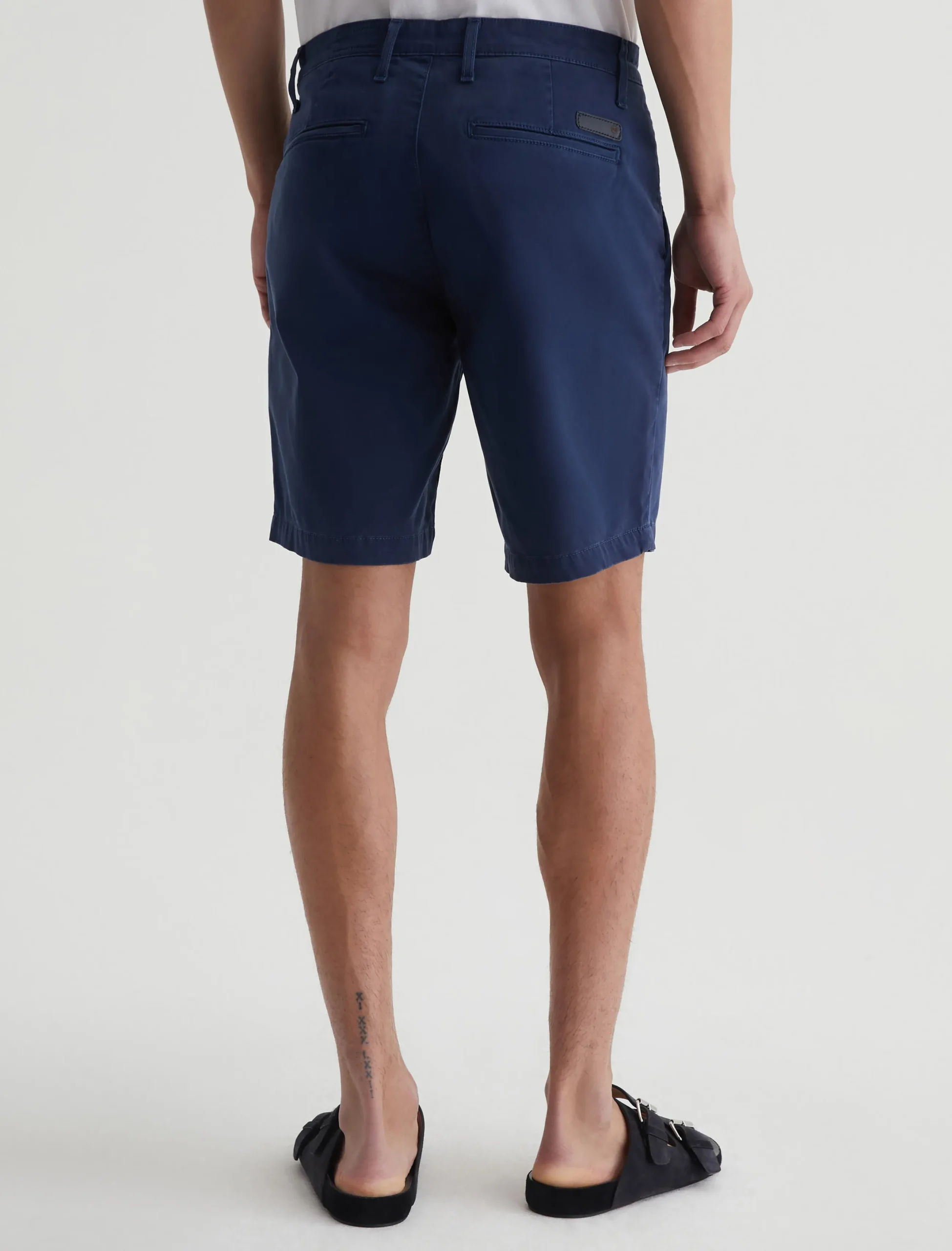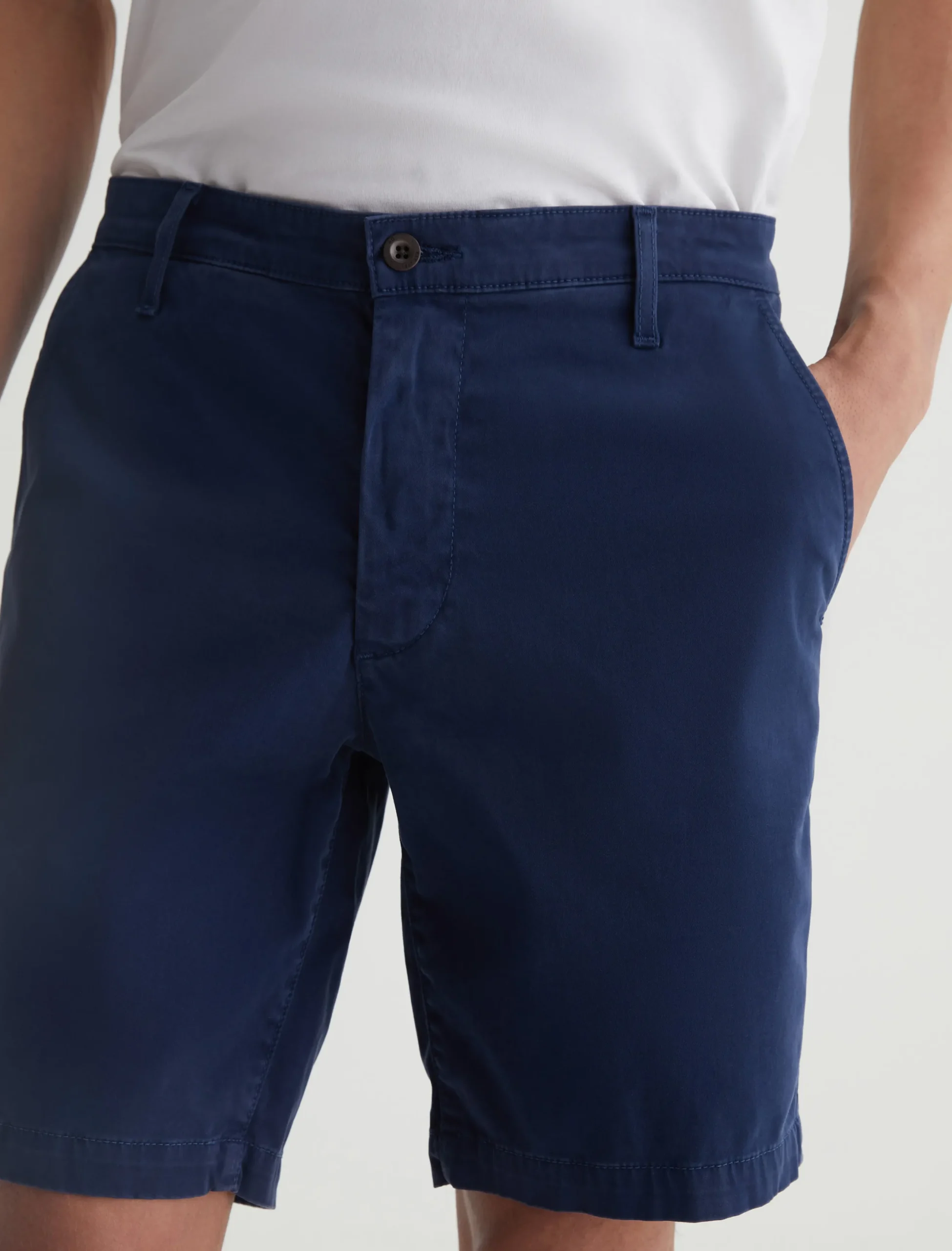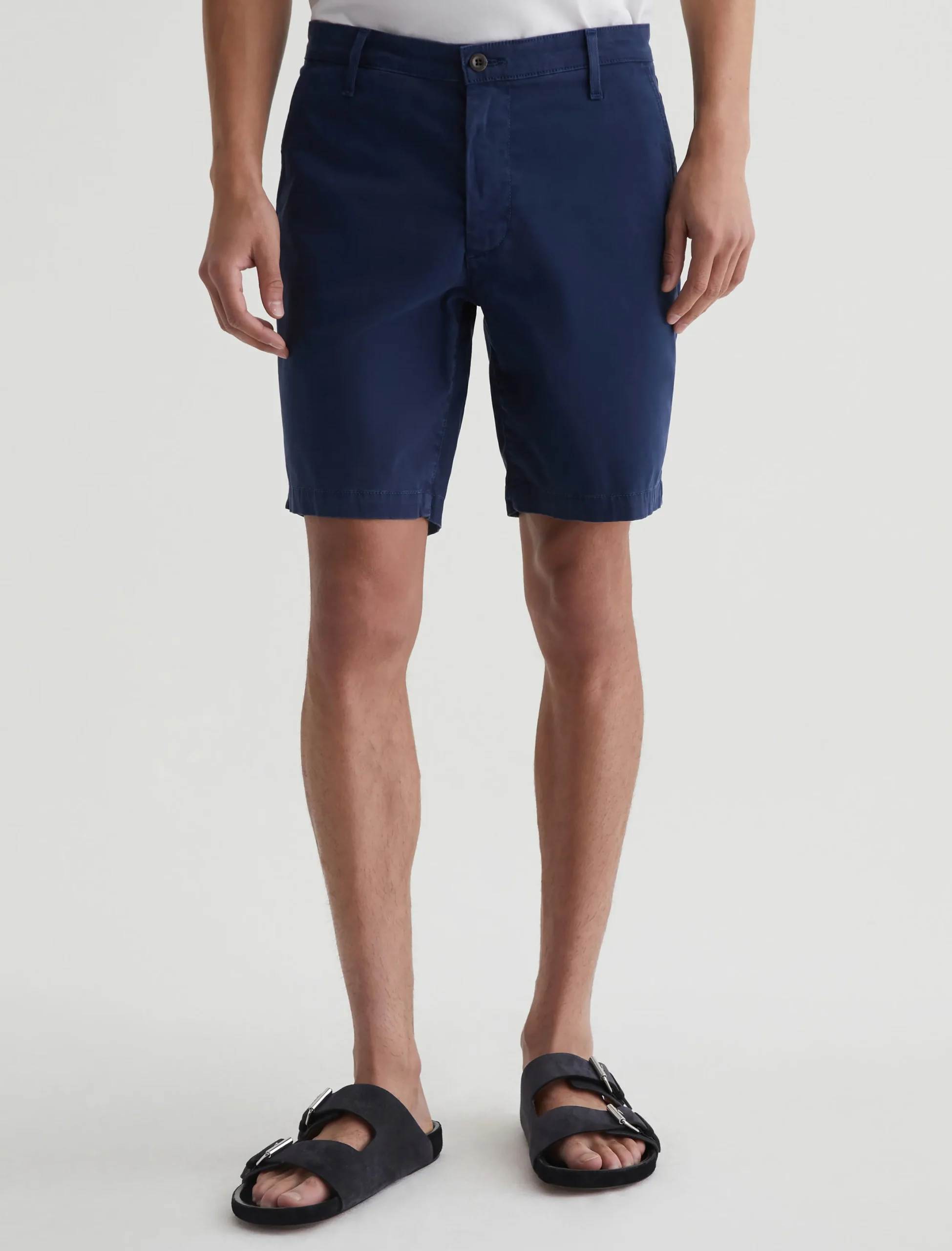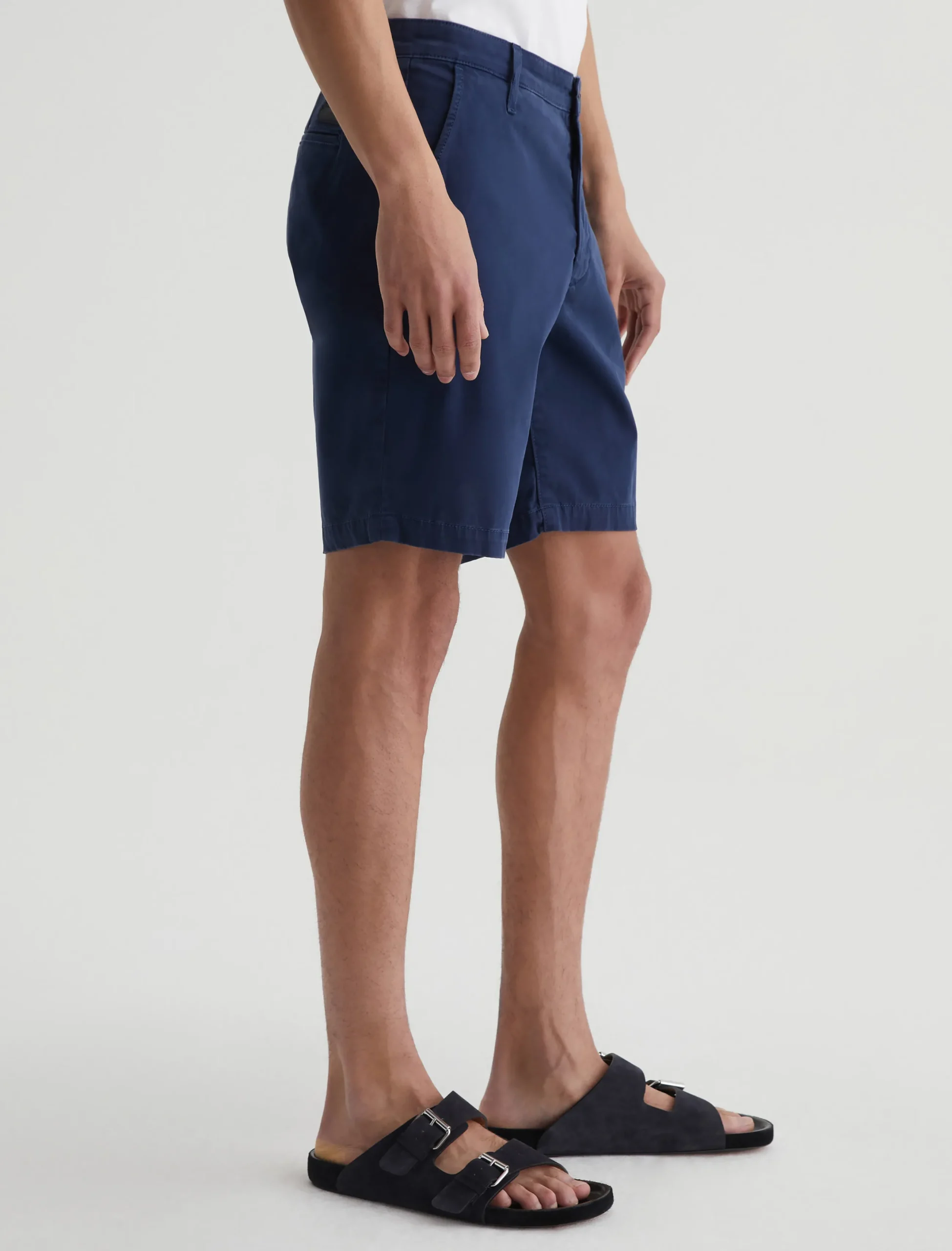 The Wanderer Short for men is cut for a slim fit with a classic trouser look and a slightly tapered leg opening. Done here in navy blue, this men’s short is crafted from sumptuous 7.4 oz. Brighton Sueded Sateen. There’s a bit of stretch to it, ensuring an extra-comfortable feel.