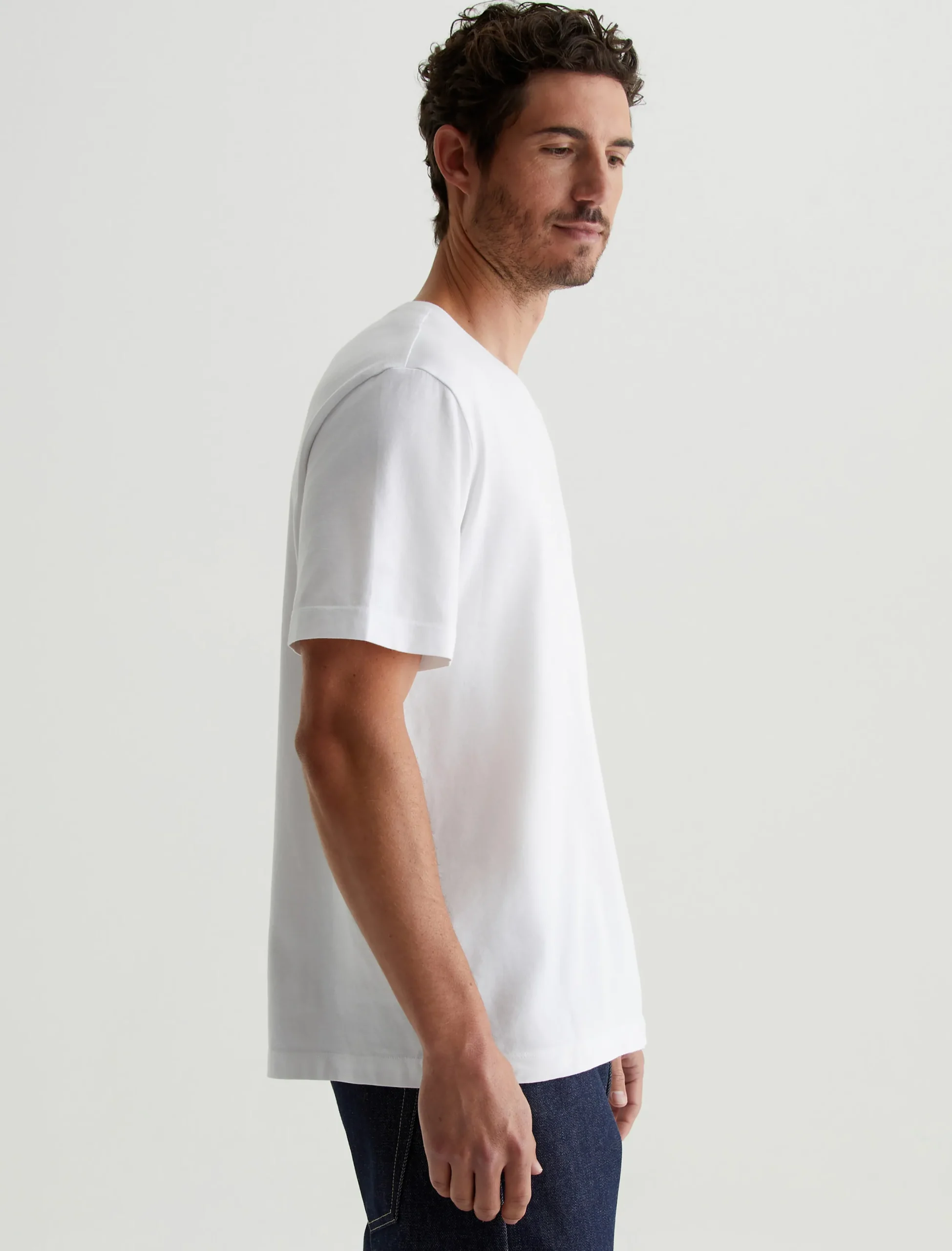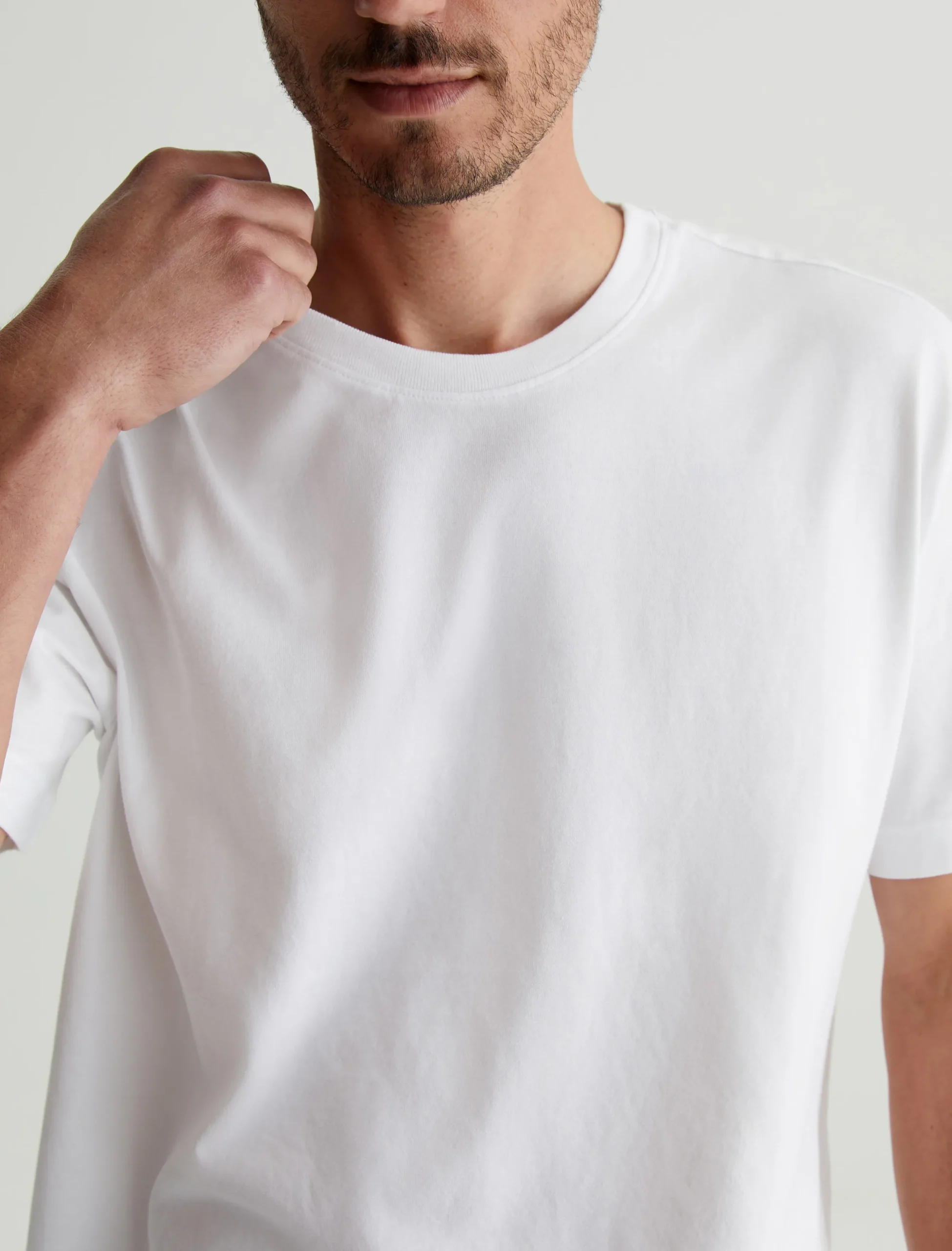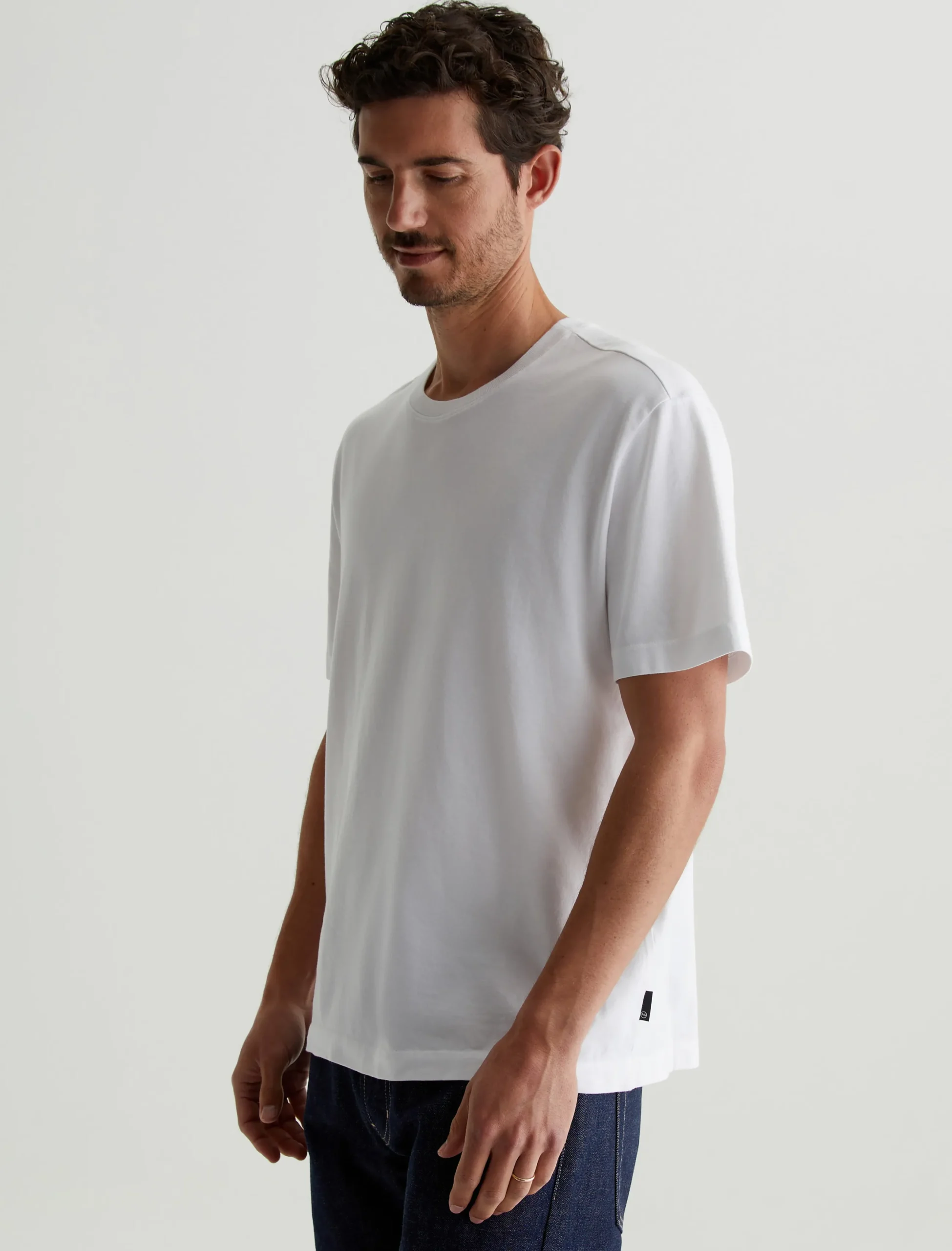The Wesley Crew in white is a relaxed short-sleeve tee for men. The tee offers drop shoulder detailing and wider hem for a more fashion forward fit. Our Jersey Knit offers a luxurious comfort that is unrivaled—knitted with both S-twist and Z-twist yarn to sustain longevity and stability, preventing unnecessary twisting and torquing. During the production process, the S-twist yarn is spun counter-clockwise creating a right-handed twill. The Z-twist yarn works in opposition, spinning clockwise for a left-handed twill. This opposition—when working together—yields a softer, more durable fabrication and gives strength to the yarn making it more difficult to pull apart. Designed in 100% Cotton.