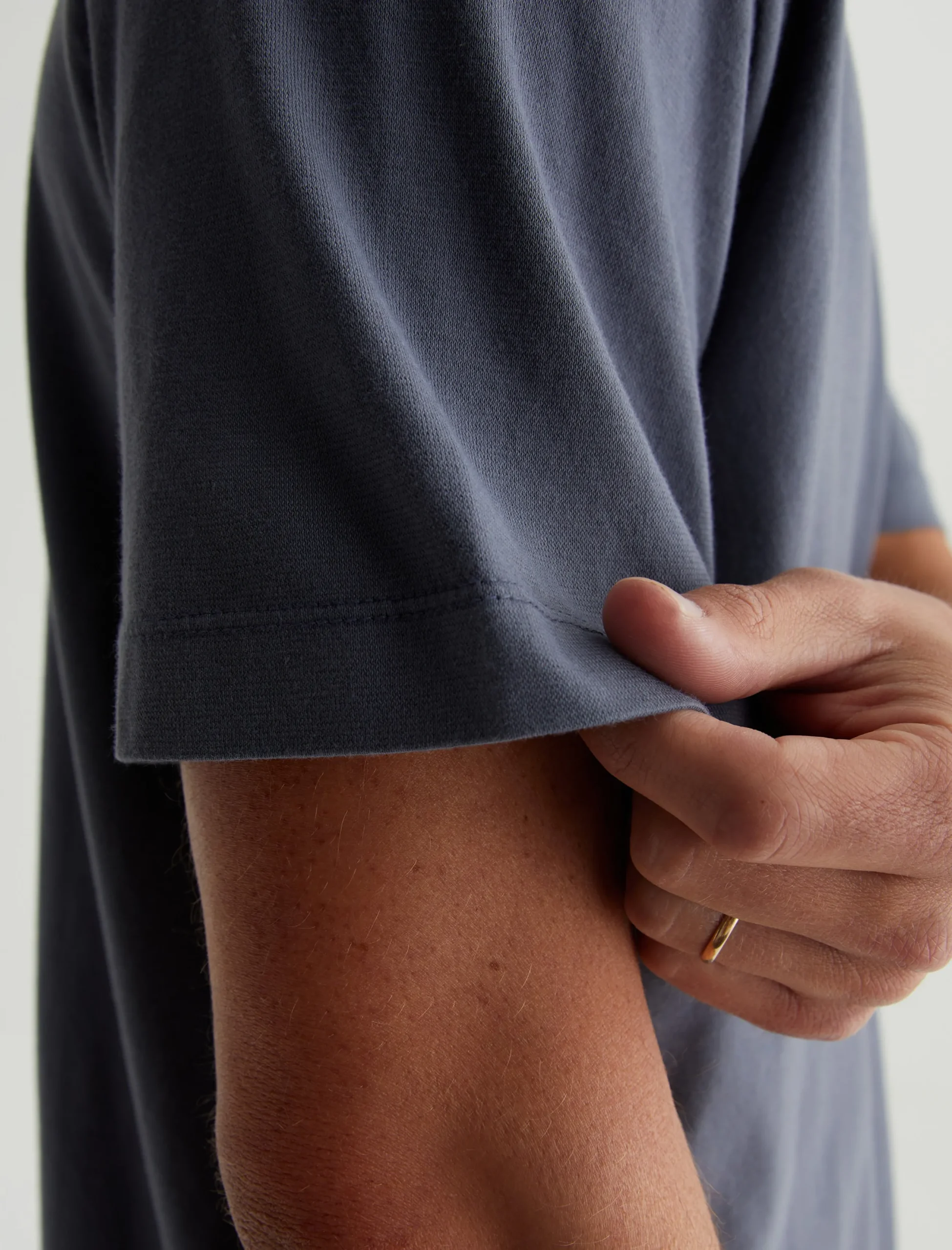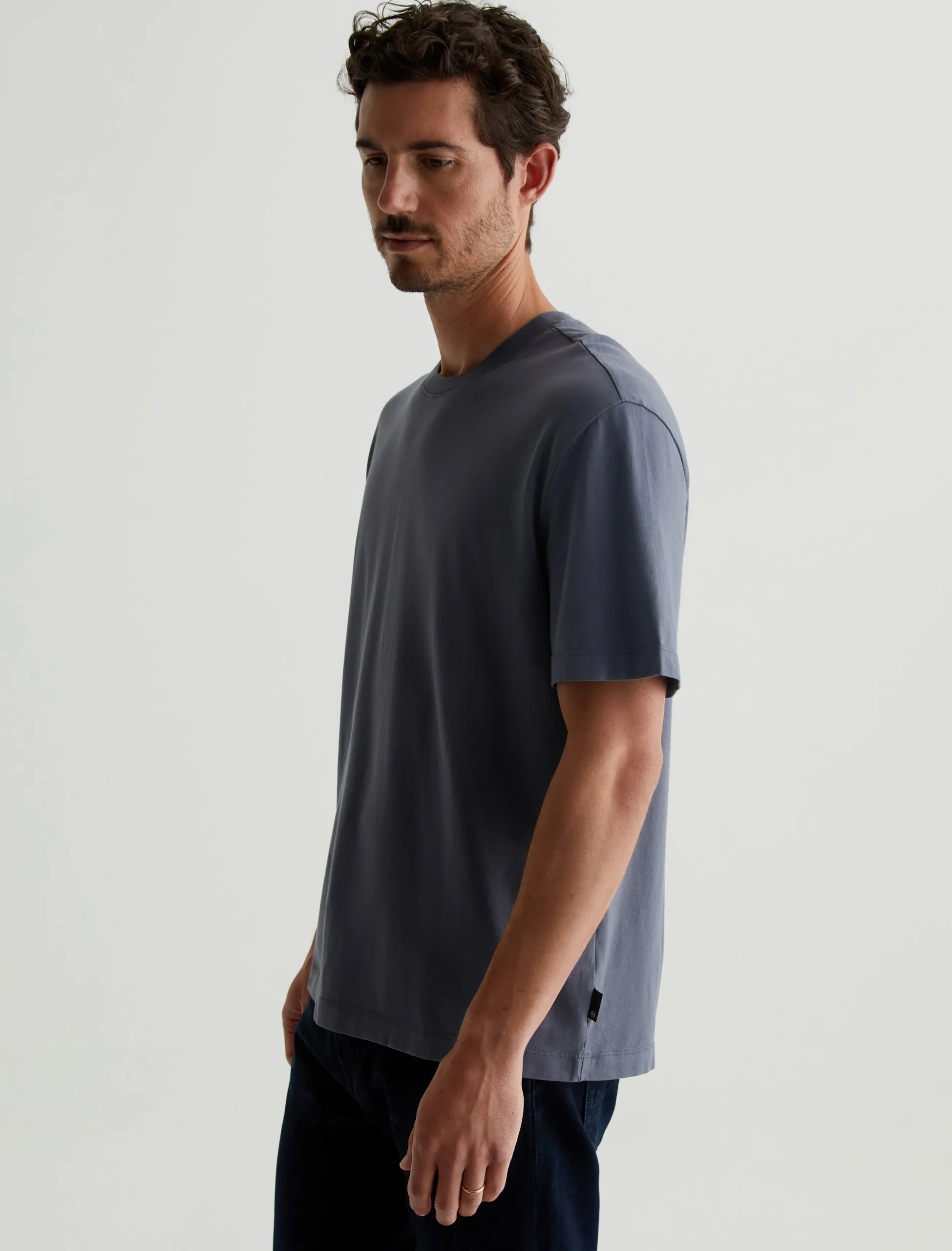 The Wesley Crew in grey is a relaxed short-sleeve tee for men. The tee offers drop shoulder detailing and wider hem for a more fashion forward fit. Our Jersey Knit offers a luxurious comfort that is unrivaled—knitted with both S-twist and Z-twist yarn to sustain longevity and stability, preventing unnecessary twisting and torquing. During the production process, the S-twist yarn is spun counter-clockwise creating a right-handed twill. The Z-twist yarn works in opposition, spinning clockwise for a left-handed twill. This opposition—when working together—yields a softer, more durable fabrication and gives strength to the yarn making it more difficult to pull apart. Designed in 100% Cotton.