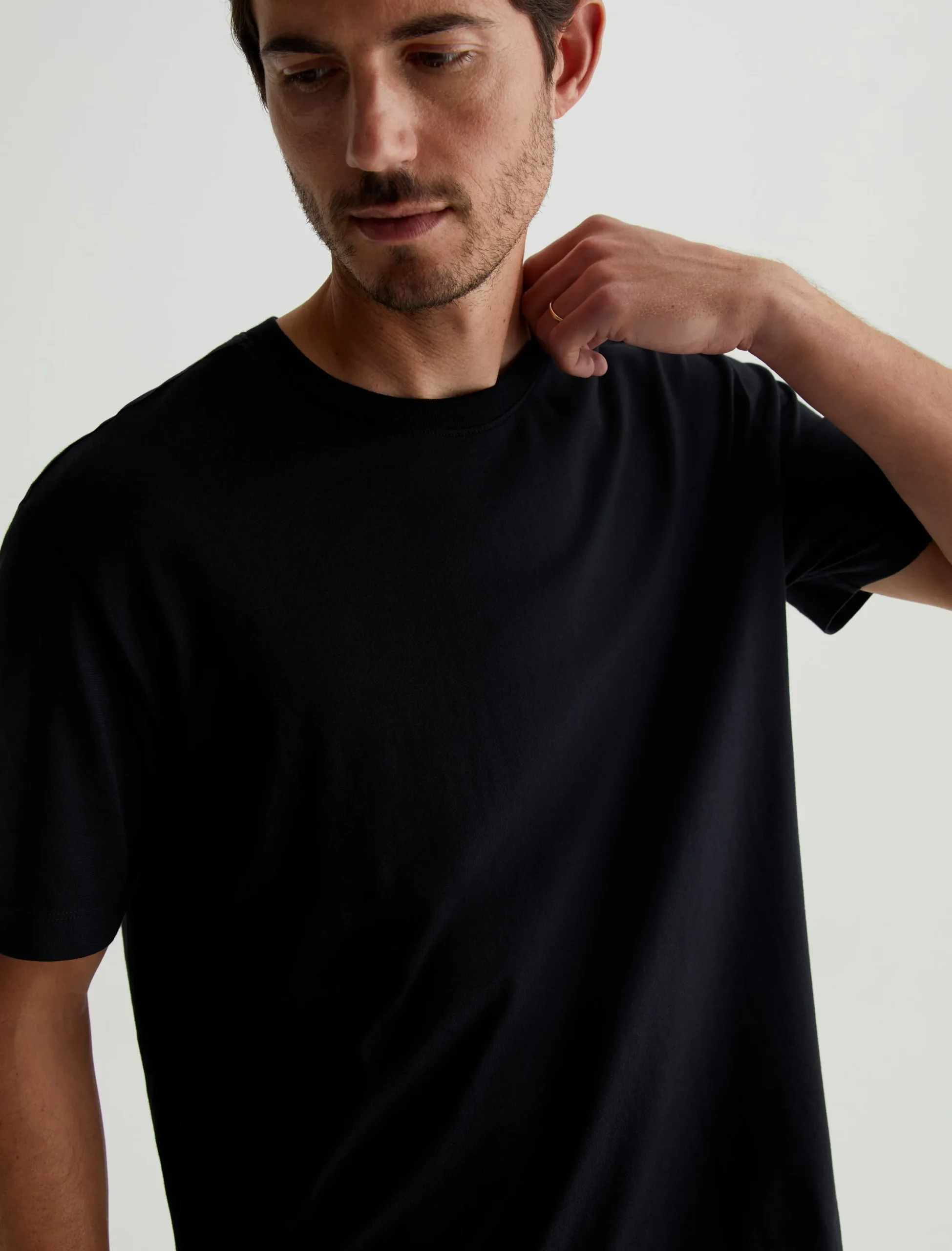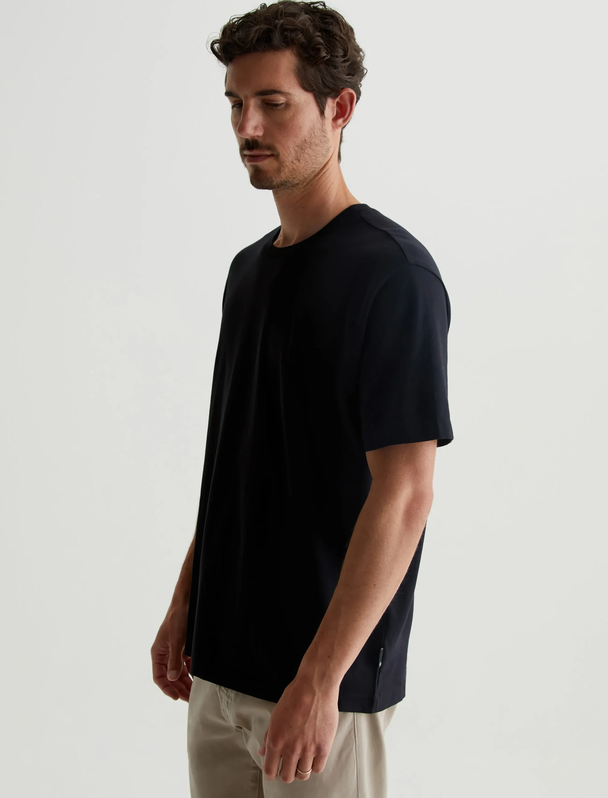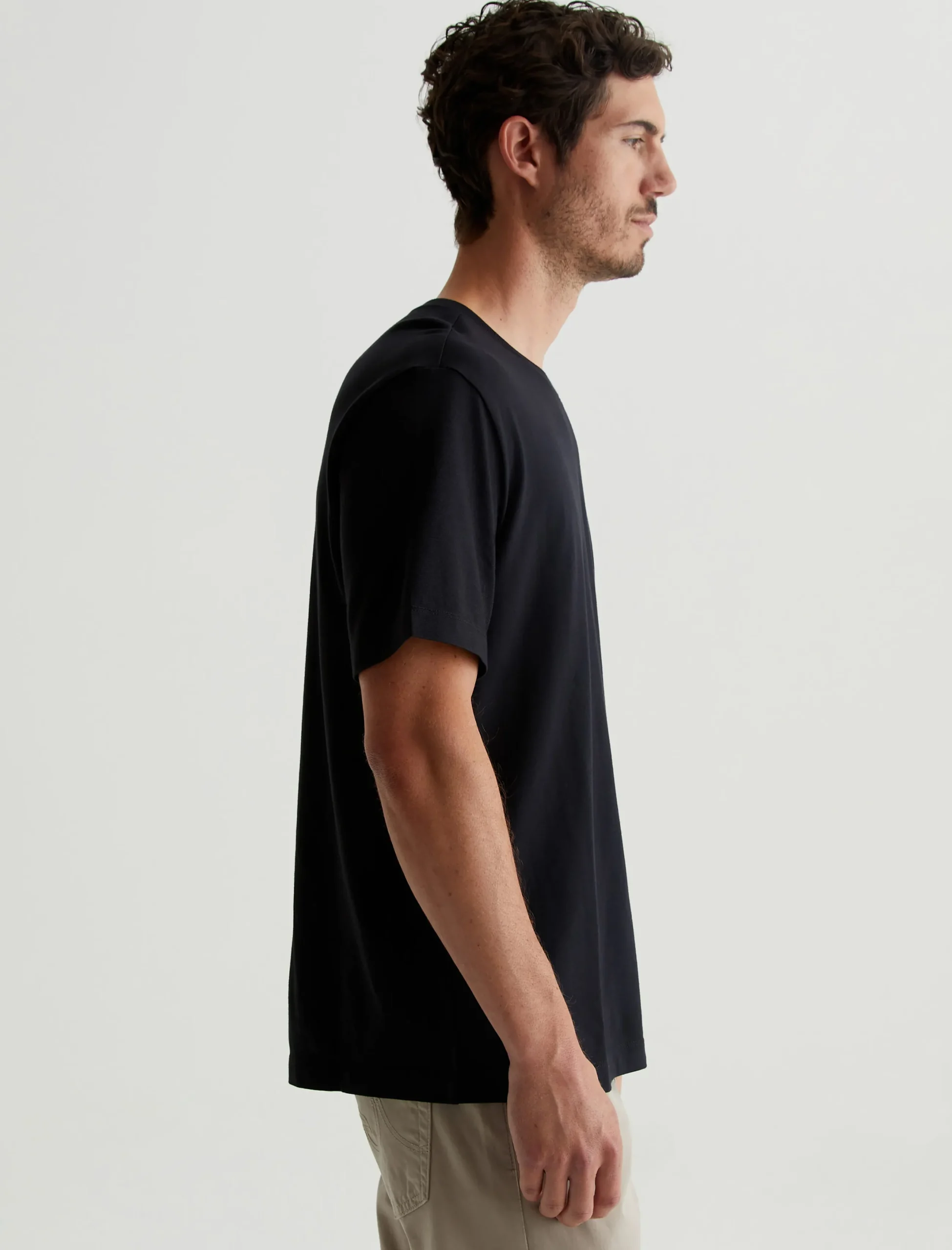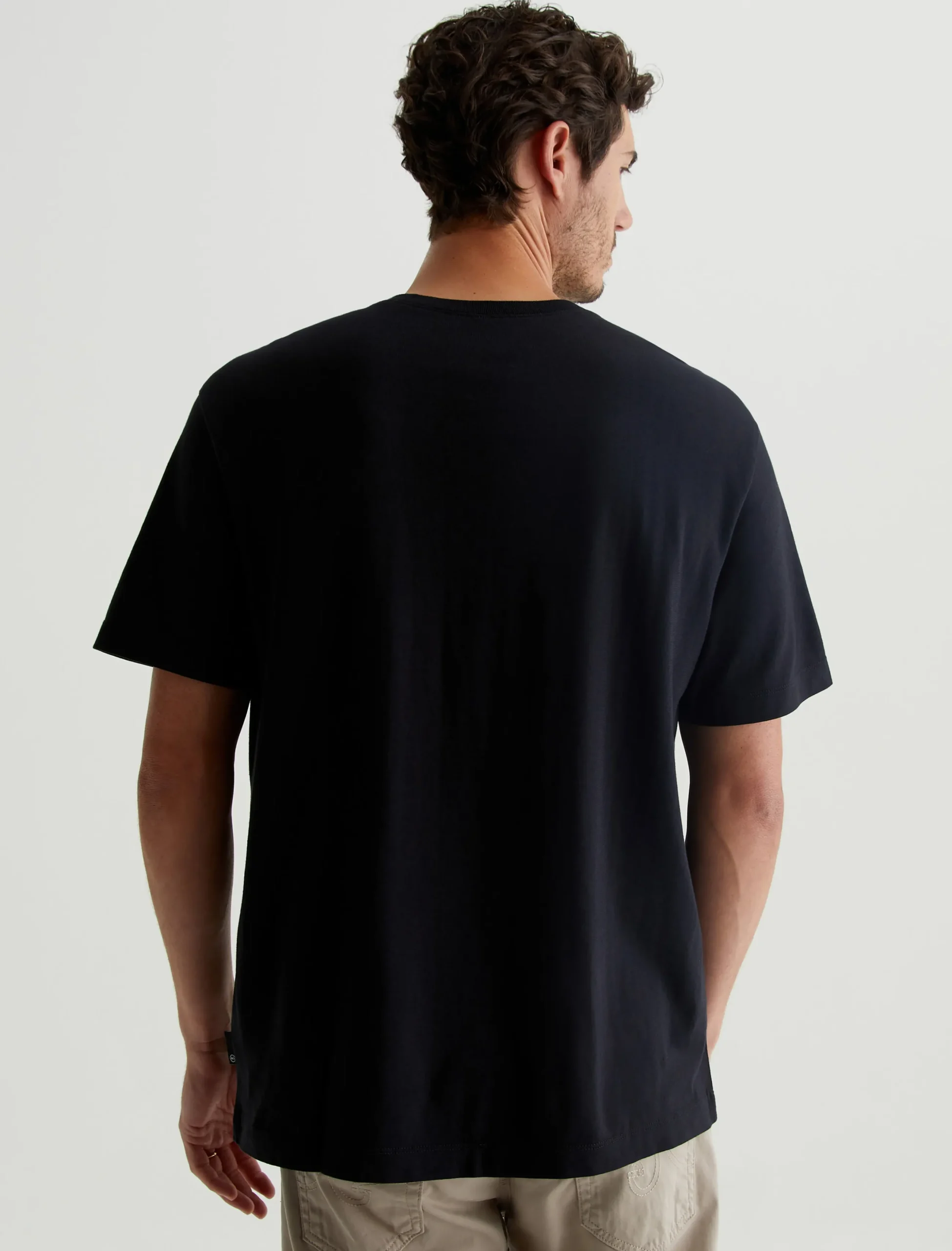 The Wesley Crew in black is a relaxed short-sleeve tee for men. The tee offers drop shoulder detailing and wider hem for a more fashion forward fit. Our Jersey Knit offers a luxurious comfort that is unrivaled—knitted with both S-twist and Z-twist yarn to sustain longevity and stability, preventing unnecessary twisting and torquing. During the production process, the S-twist yarn is spun counter-clockwise creating a right-handed twill. The Z-twist yarn works in opposition, spinning clockwise for a left-handed twill. This opposition—when working together—yields a softer, more durable fabrication and gives strength to the yarn making it more difficult to pull apart. Designed in 100% Cotton.