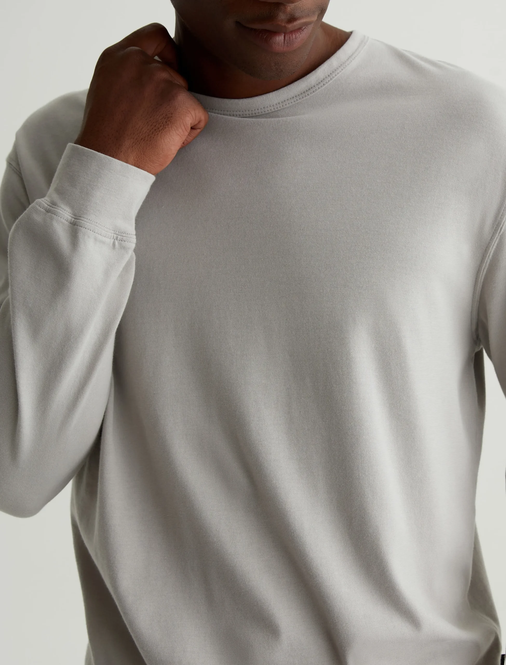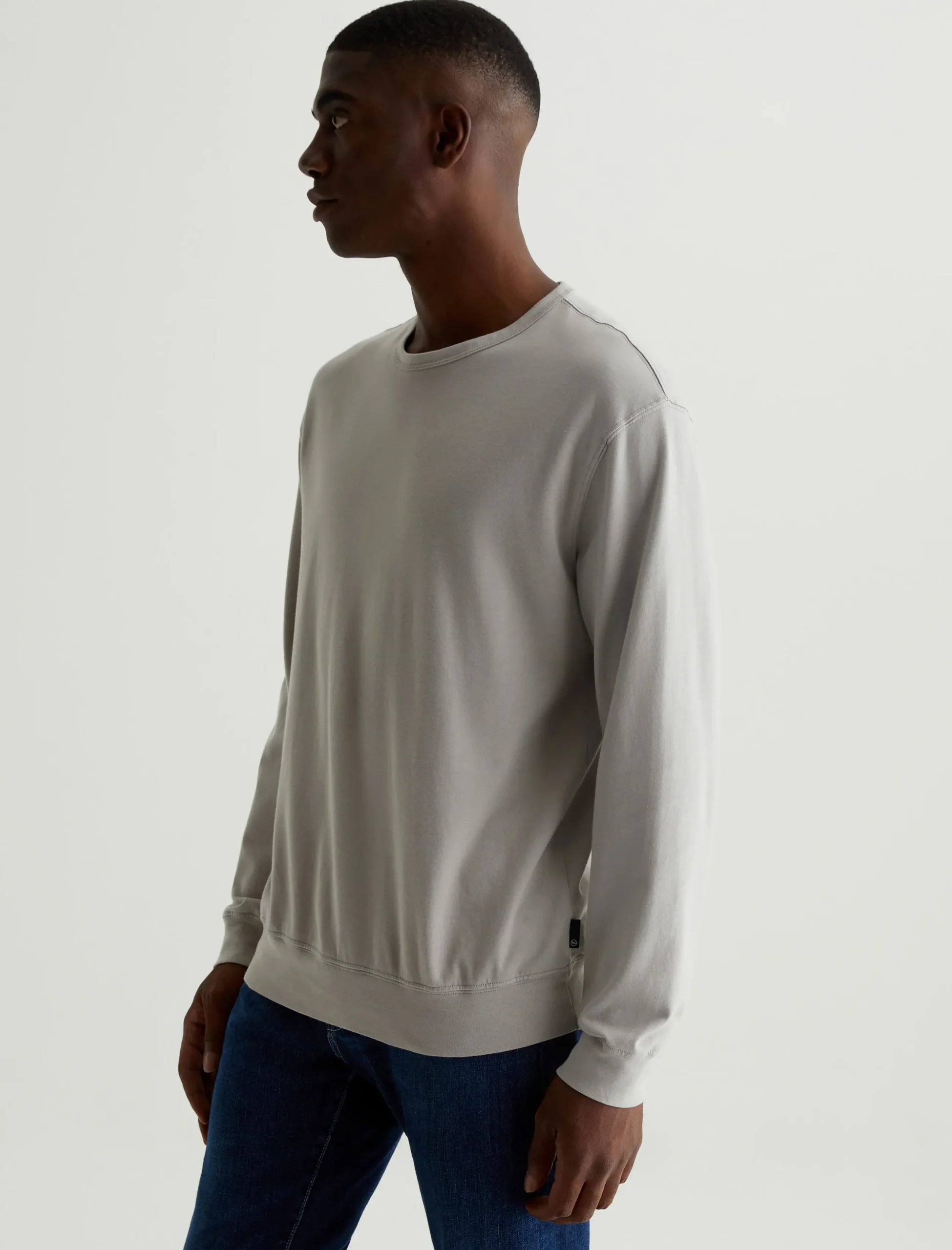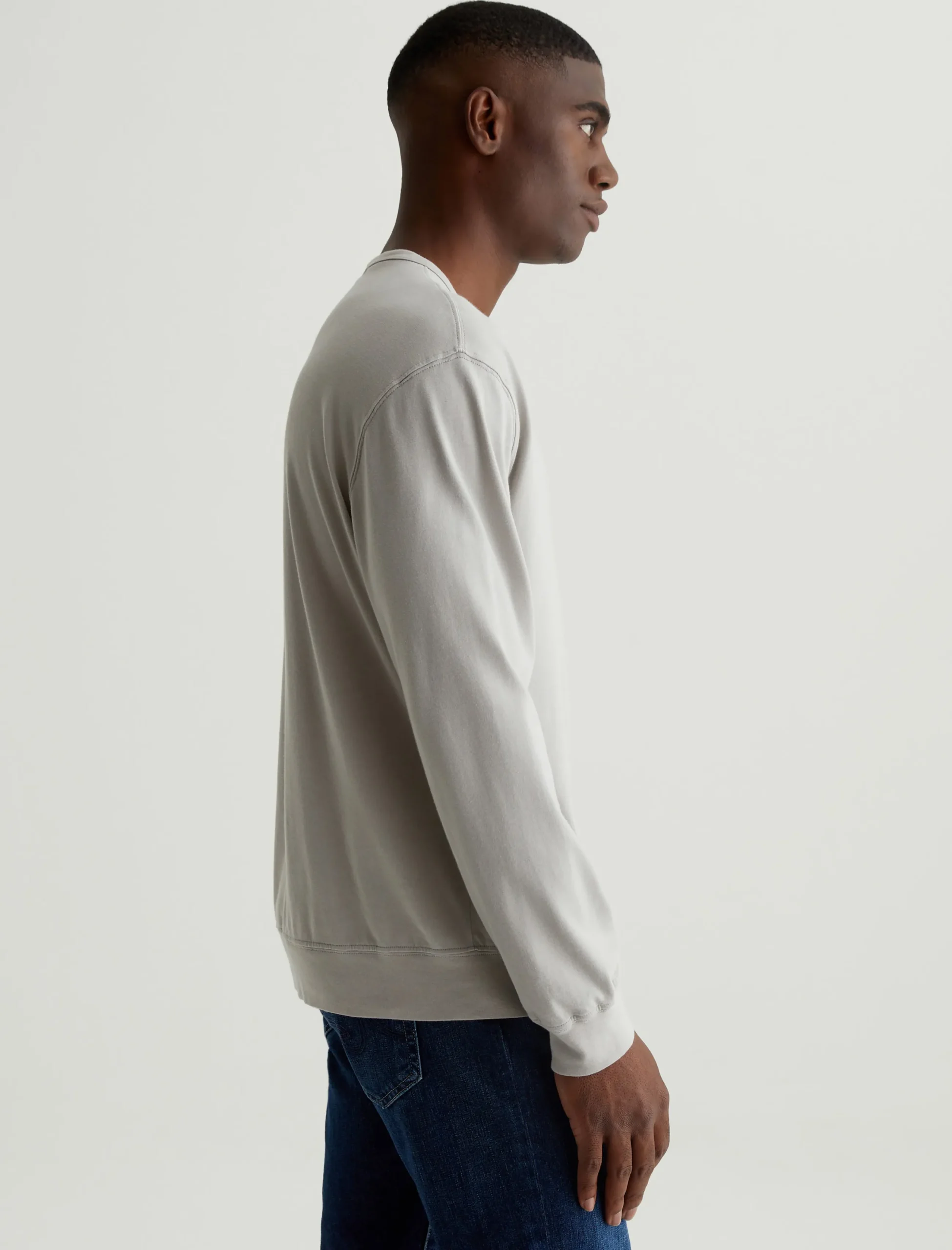 The Wesley Pullover in grey is a new silhouette added to our Basic Essentials collection.Borrowing details from a traditional sweatshirt such as rib binding, cuffs, and bottom hem allowed us to create a lightweight pullover that feels classic, modern, and uniform. Our Jersey Knit offers a luxurious comfort that is unrivaled—knitted with both S-twist and Z-twist yarn to sustain longevity and stability, preventing unnecessary twisting and torquing. During the production process, the S-twist yarn is spun counter-clockwise creating a right-handed twill. The Z-twist yarn works in opposition, spinning clockwise for a left-handed twill. This opposition—when working together—yields a softer, more durable fabrication and gives strength to the yarn making it more difficult to pull apart. Designed in 100% Cotton.