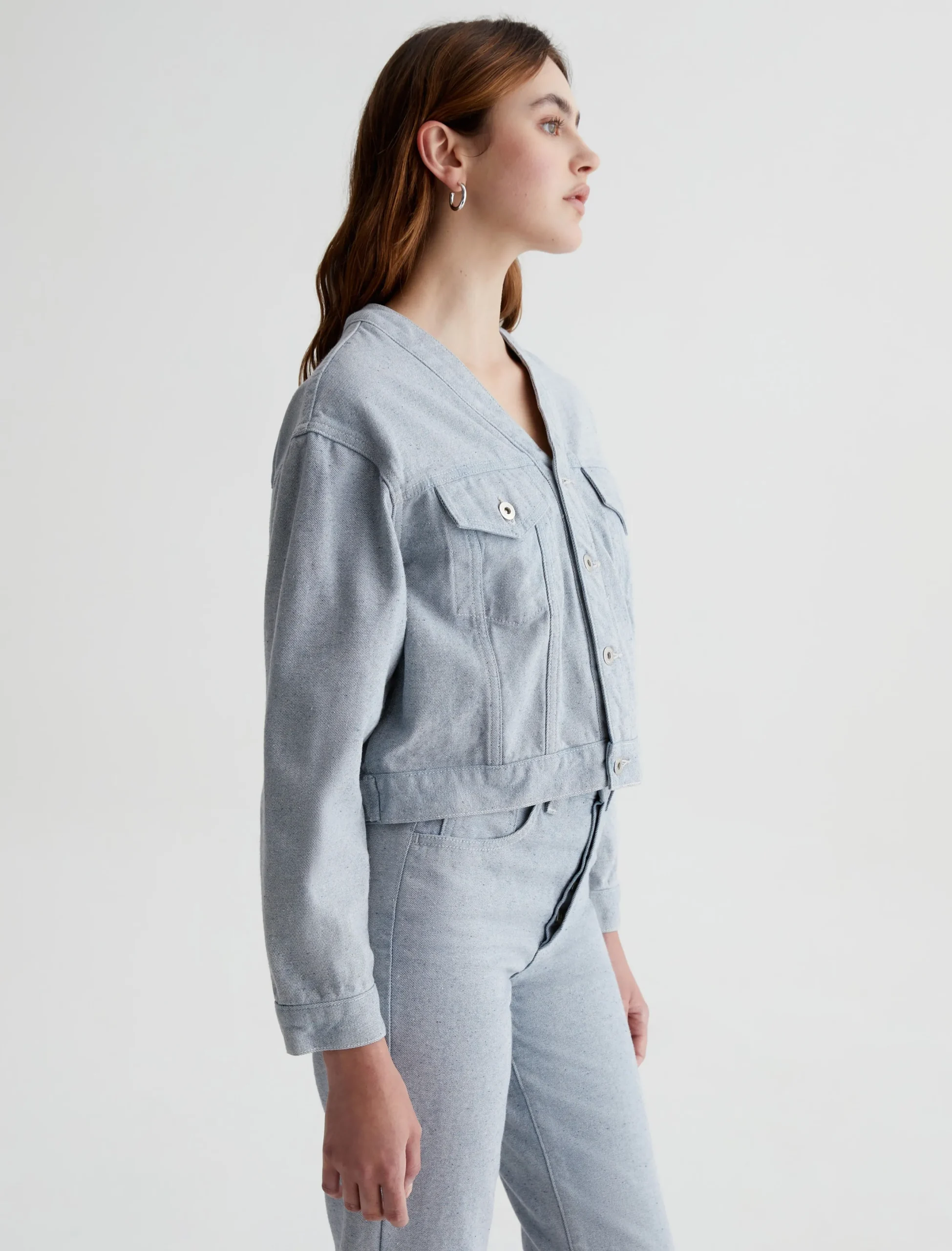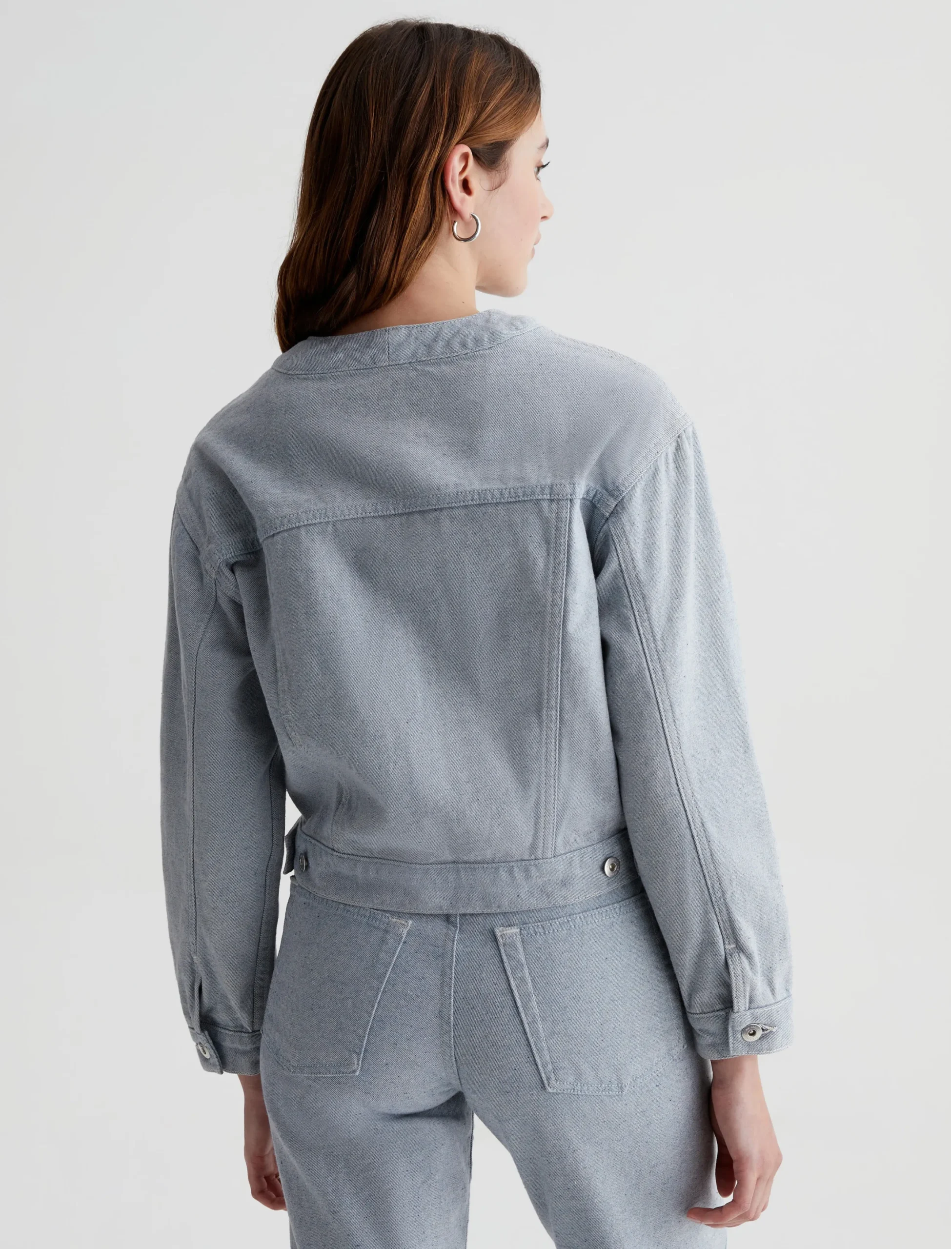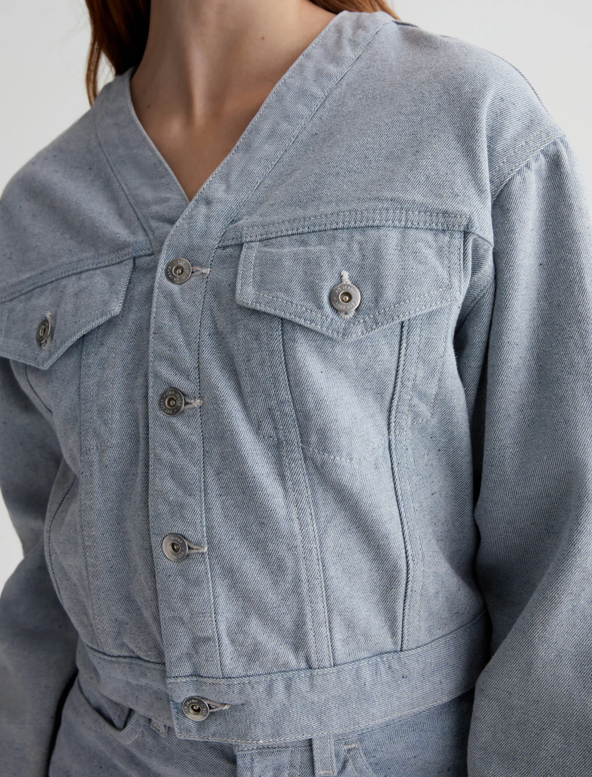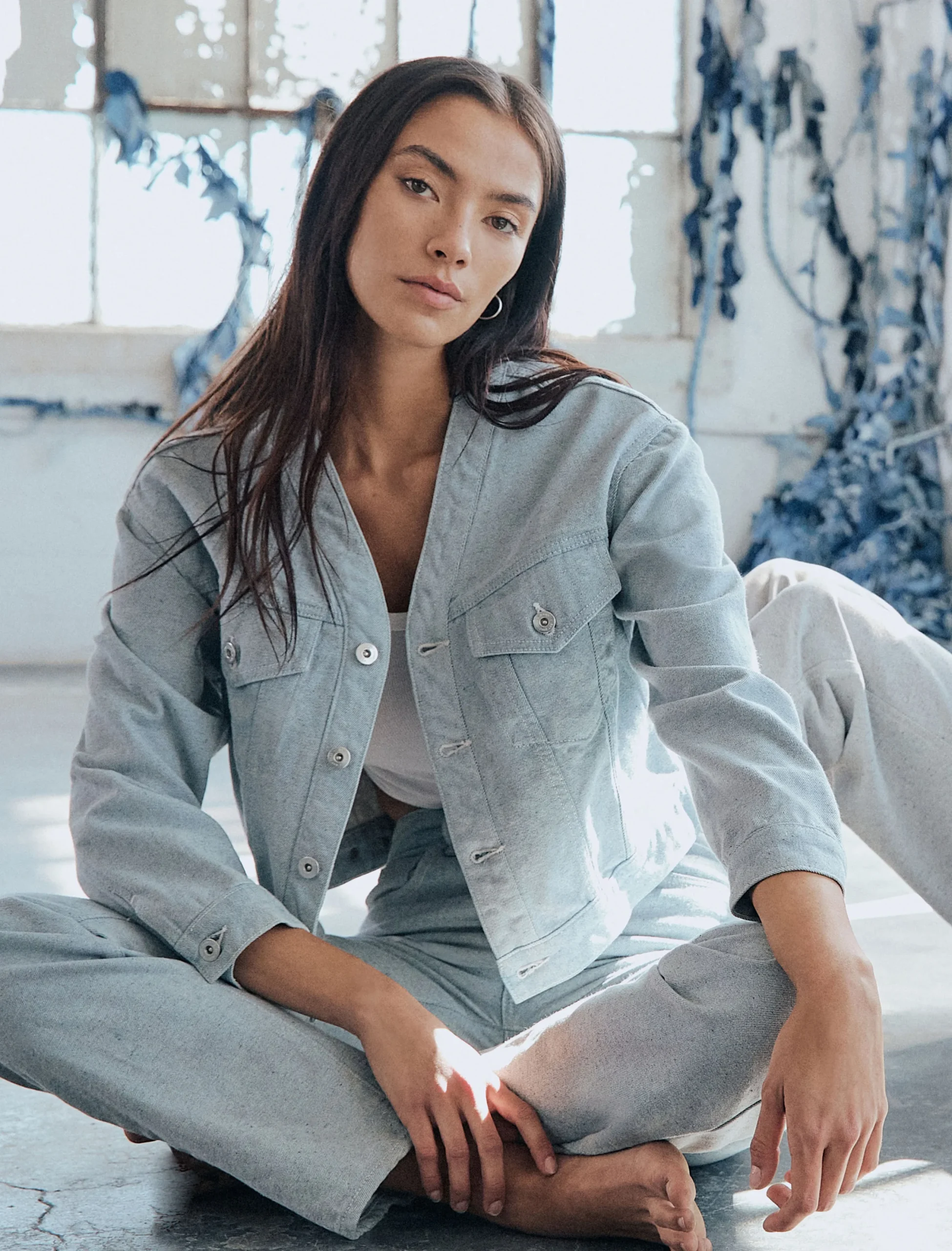 The Alanna Jacket is a cropped and collarless take on the classic denim trucker. Part of our Circular Denim initiative from the Jean of Tomorrow™ collection, it’s done in 10.6 oz. Revive Indigo Twill made with recycled cotton. The light blue color has gently speckled look. The Jean of Tomorrow™ is the most sustainable jean ever made.