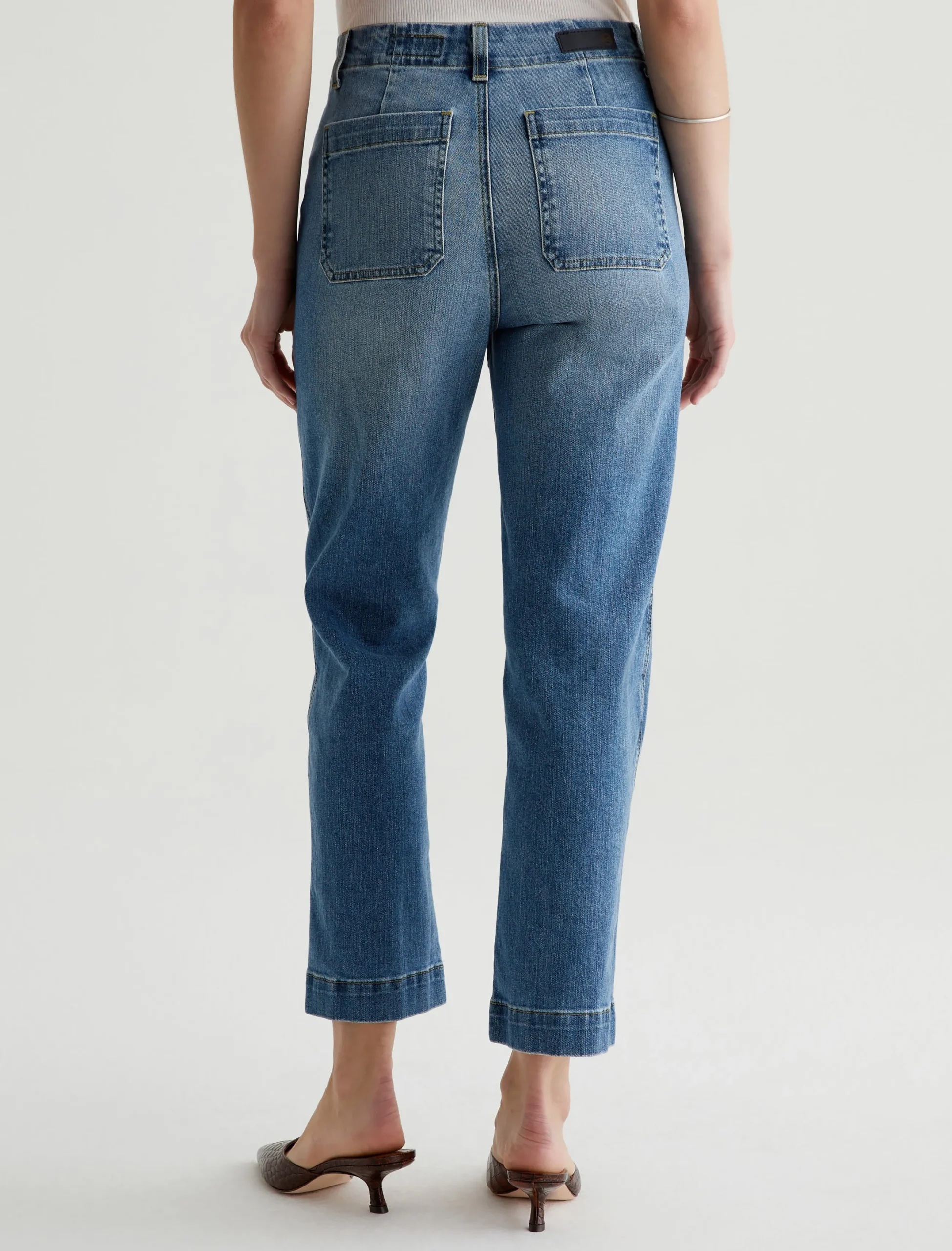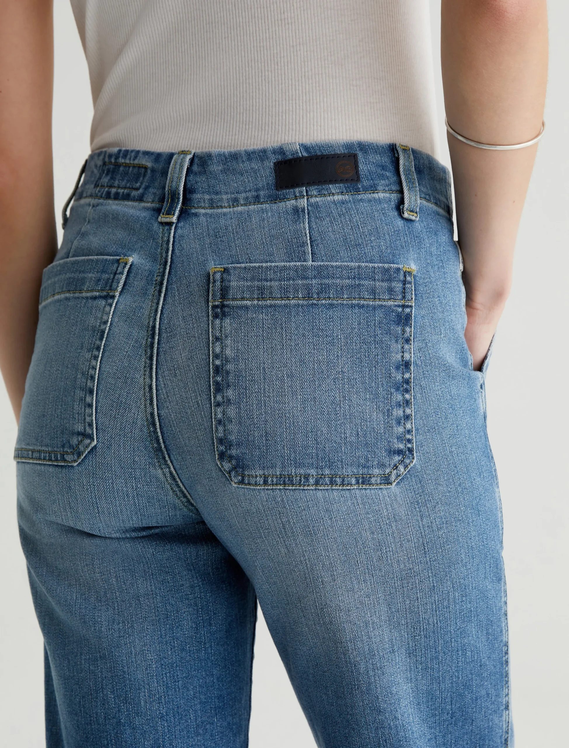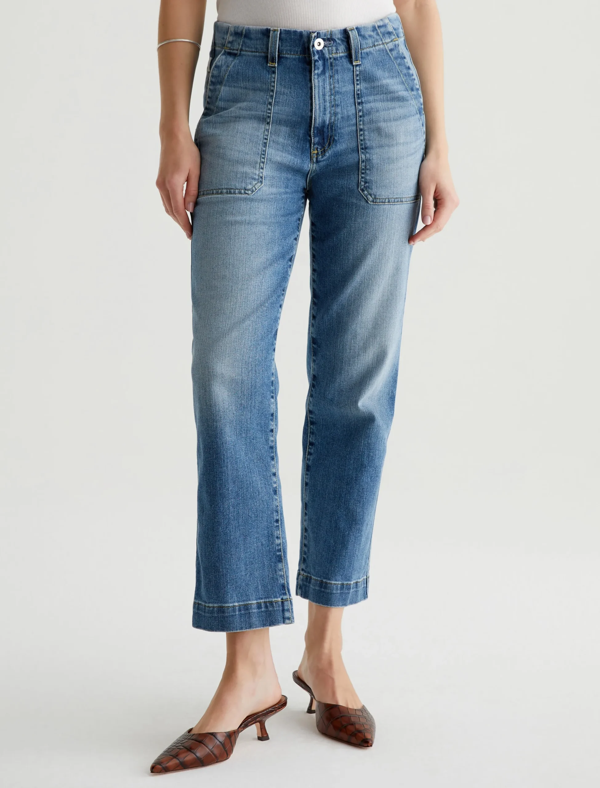 Analeigh is a high-rise straight crop with workwear-inspired pockets and wide hems. These cropped jeans for women are designed in 11 oz. Lead Denim featuring comfort stretch and a light, faded wash.