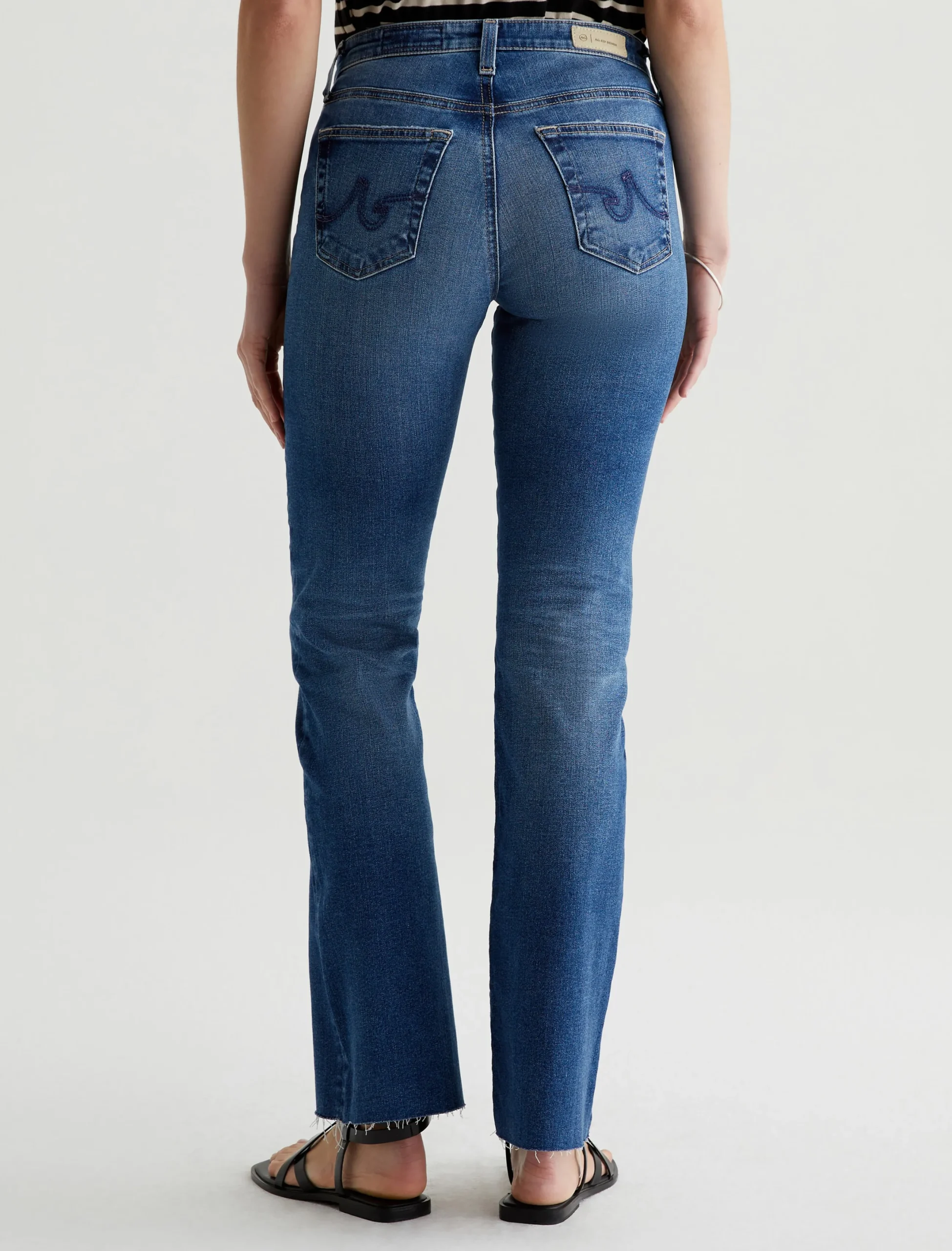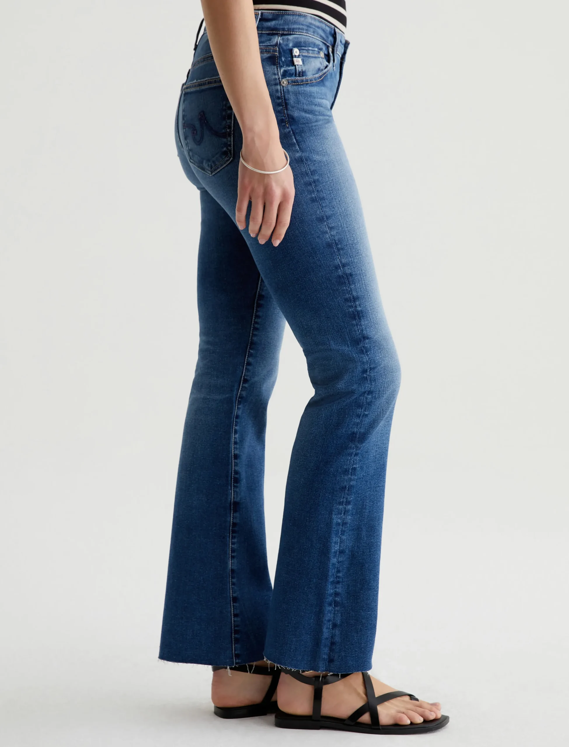 The Angel low-rise bootcut jeans have a subtly flared silhouette with raw hems. Cut from 10 oz. Empower Denim, this pair has shape-hugging stretch and premium recovery. It comes in a dark blue wash featuring a 14-year AG-ed™ fade complete with whiskering and worn edges. Contrast topstitching finishes the look.