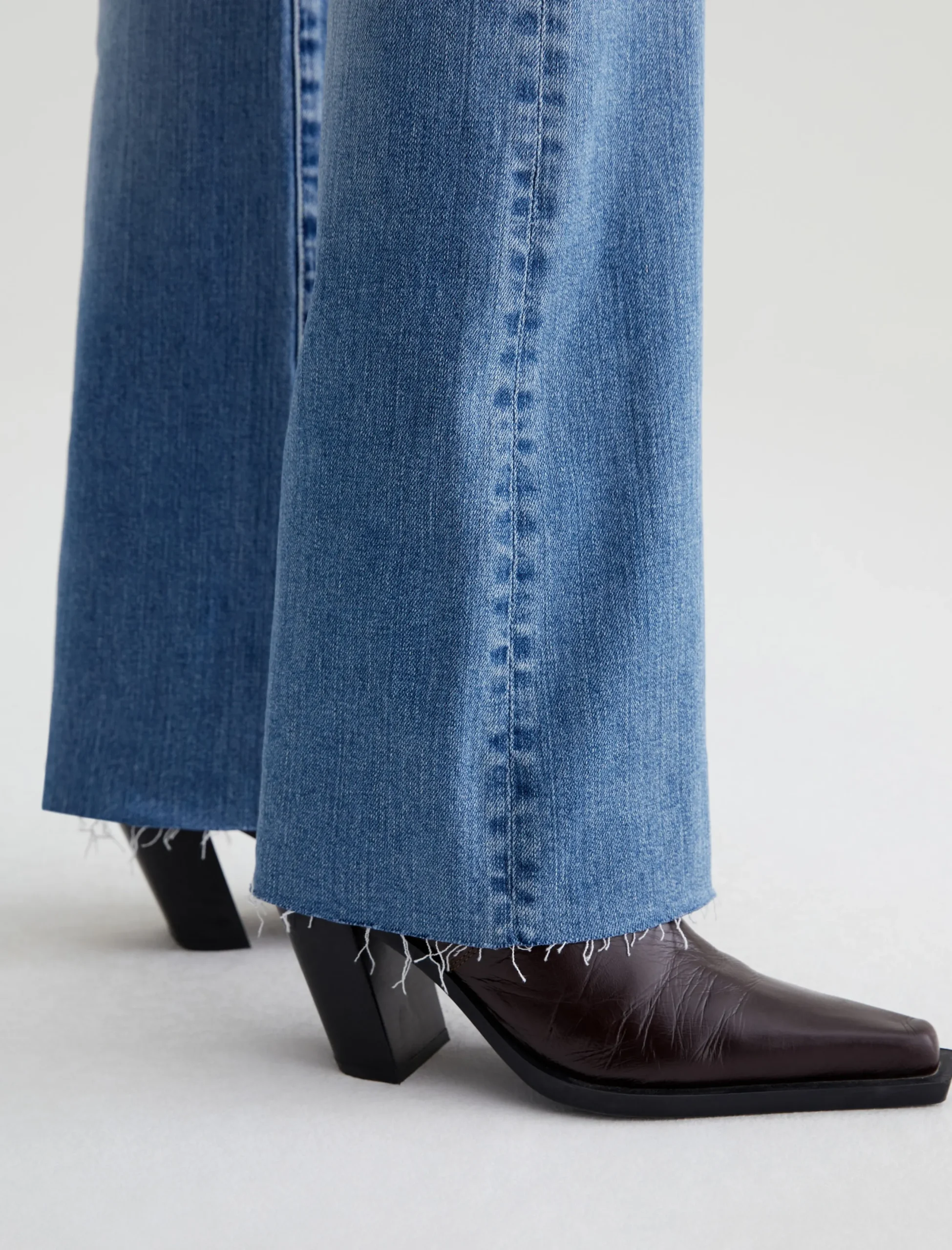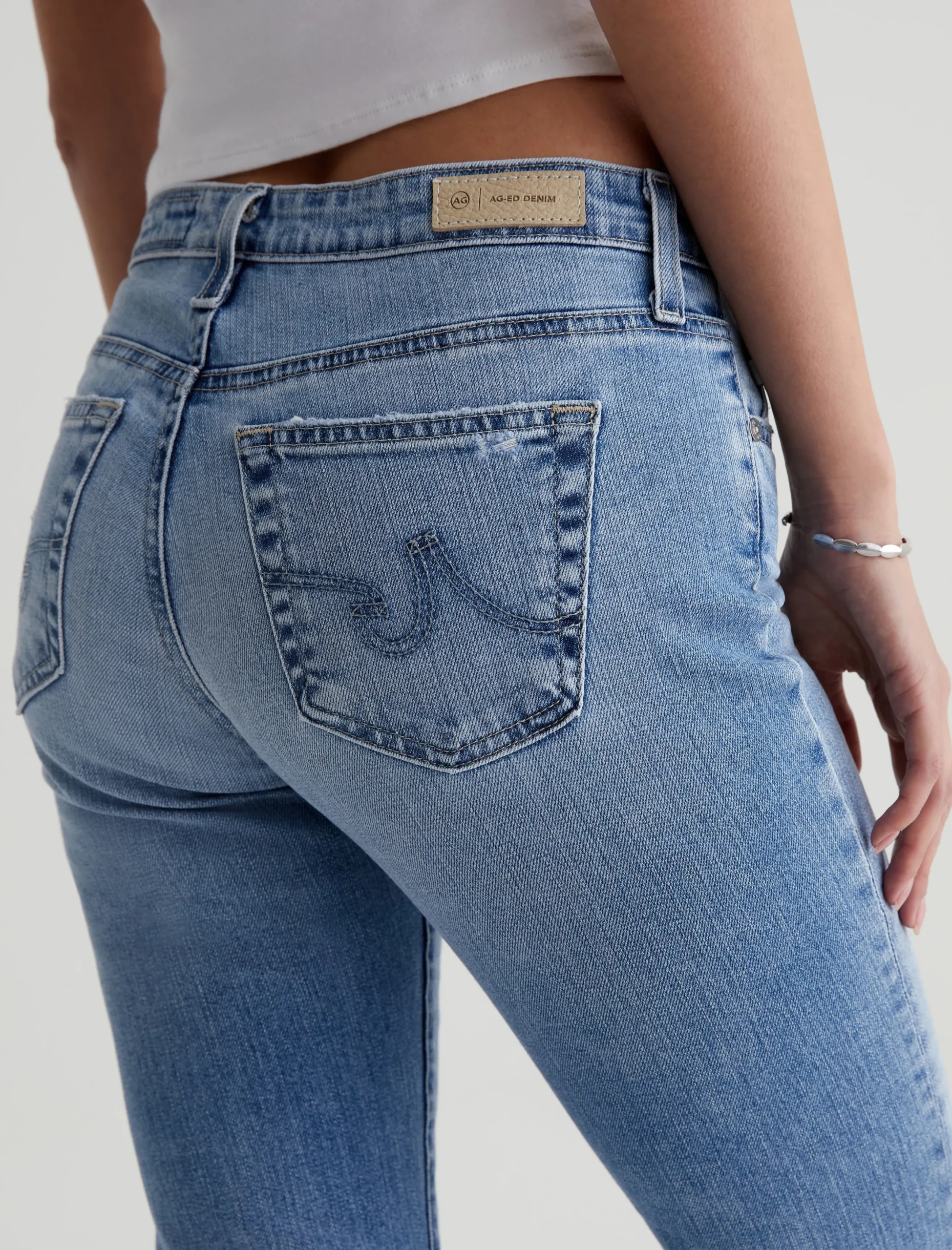 Our Angel Extended low-rise bootcut jeans feature a longer inseam and raw hems. These 5-pocket women’s jeans are designed in 11 oz. Lead Denim with comfort stretch and an AG-ed™ Denim light indigo wash that’s faded to emulate 22 years of wear. Subtle distressing softens the pocket edges.