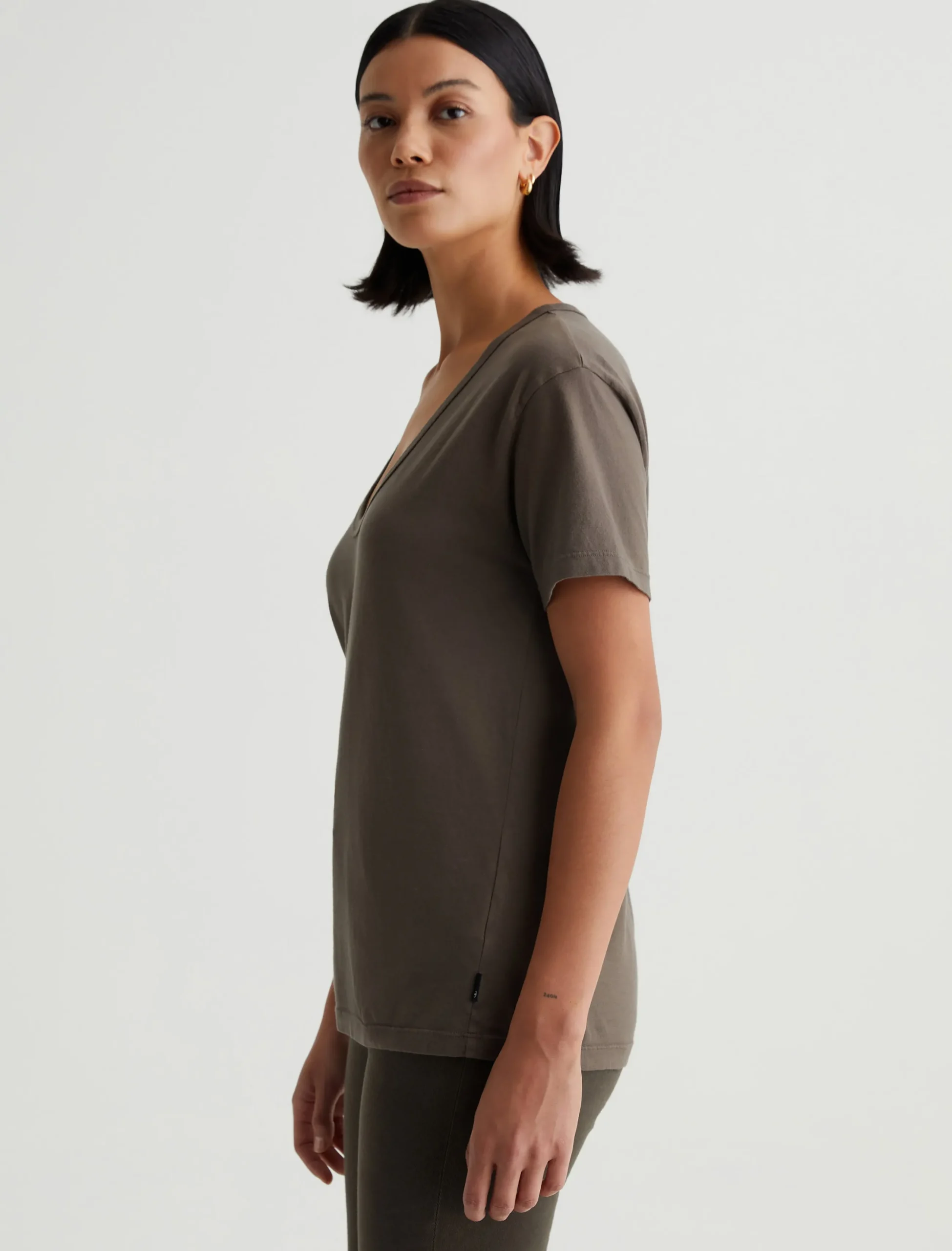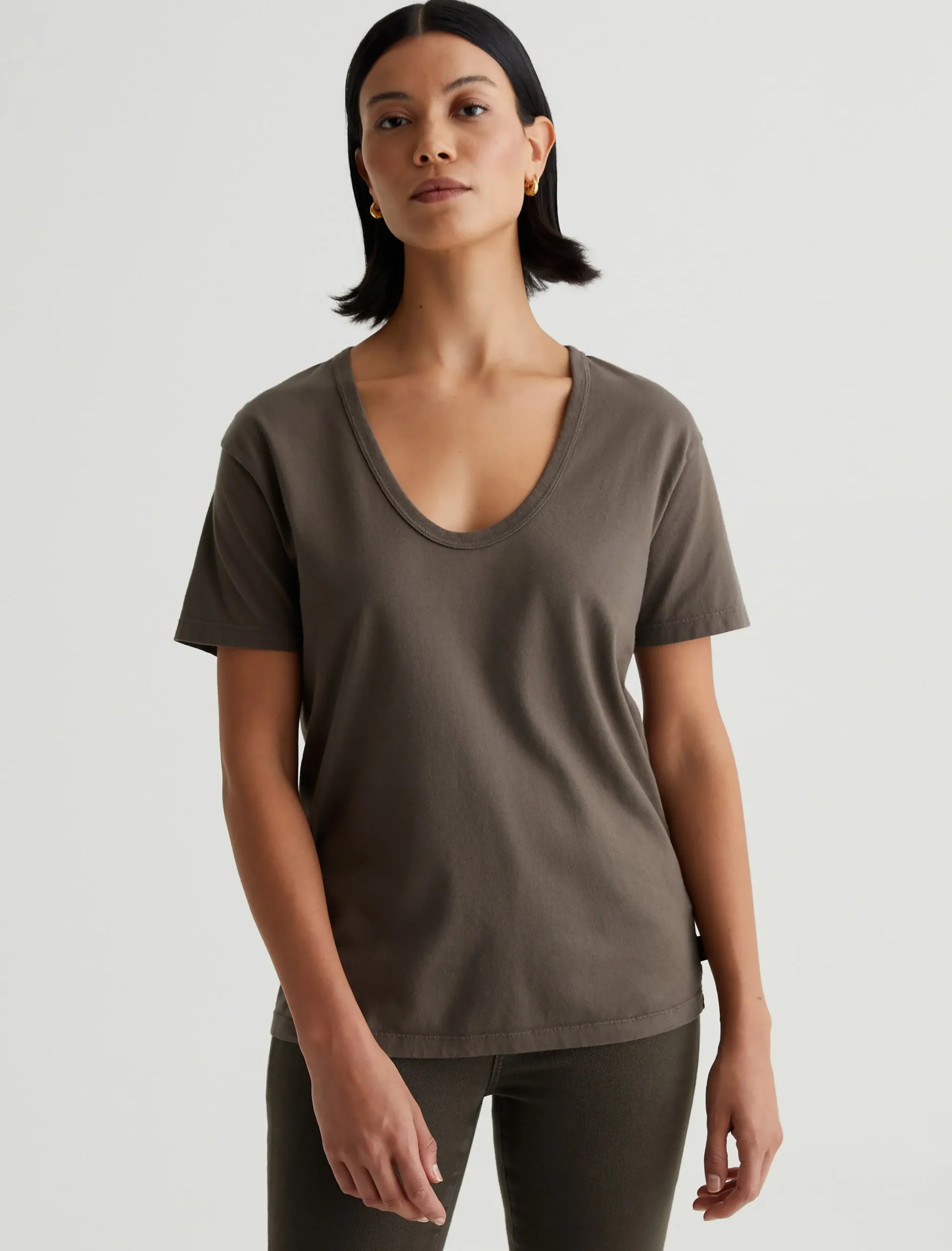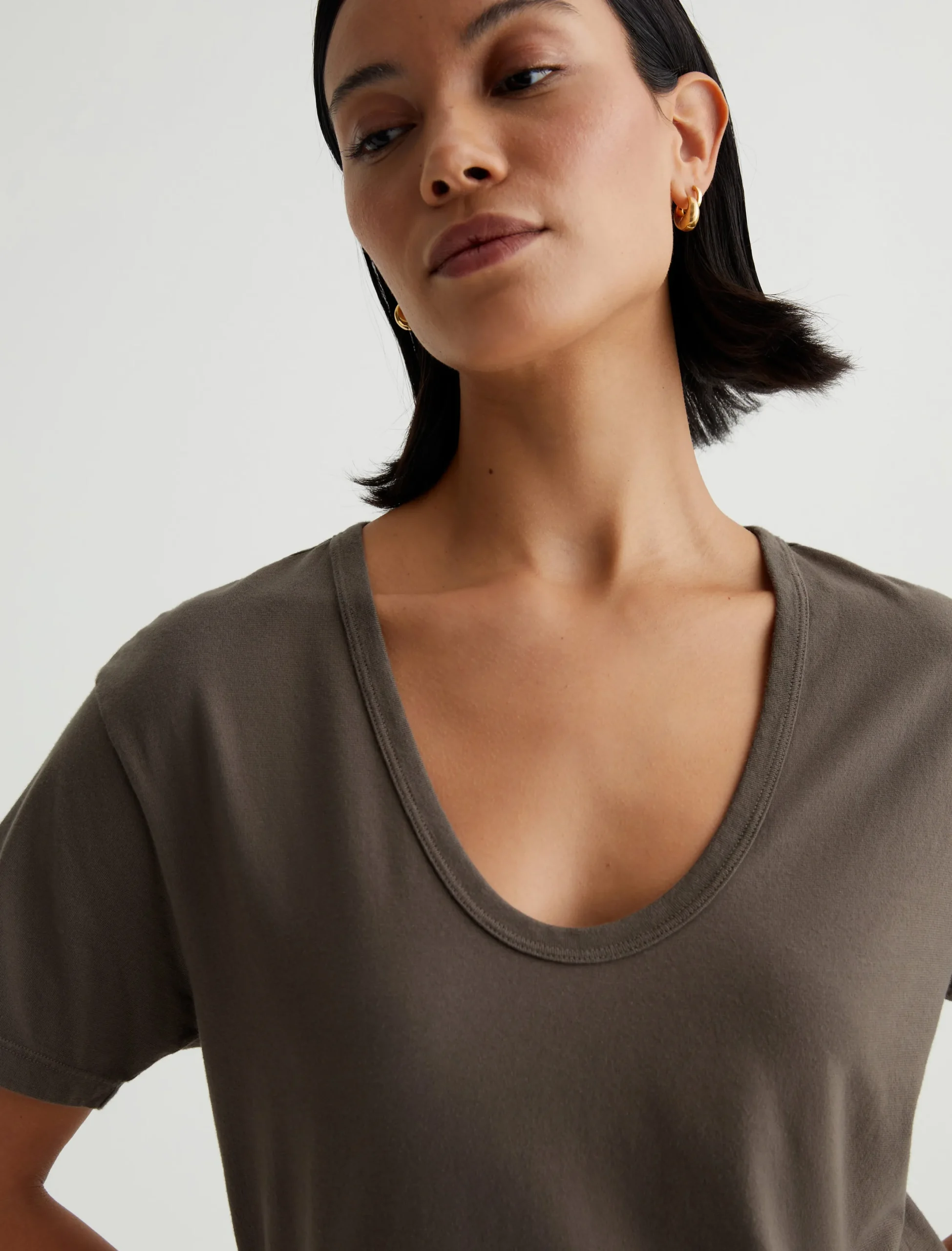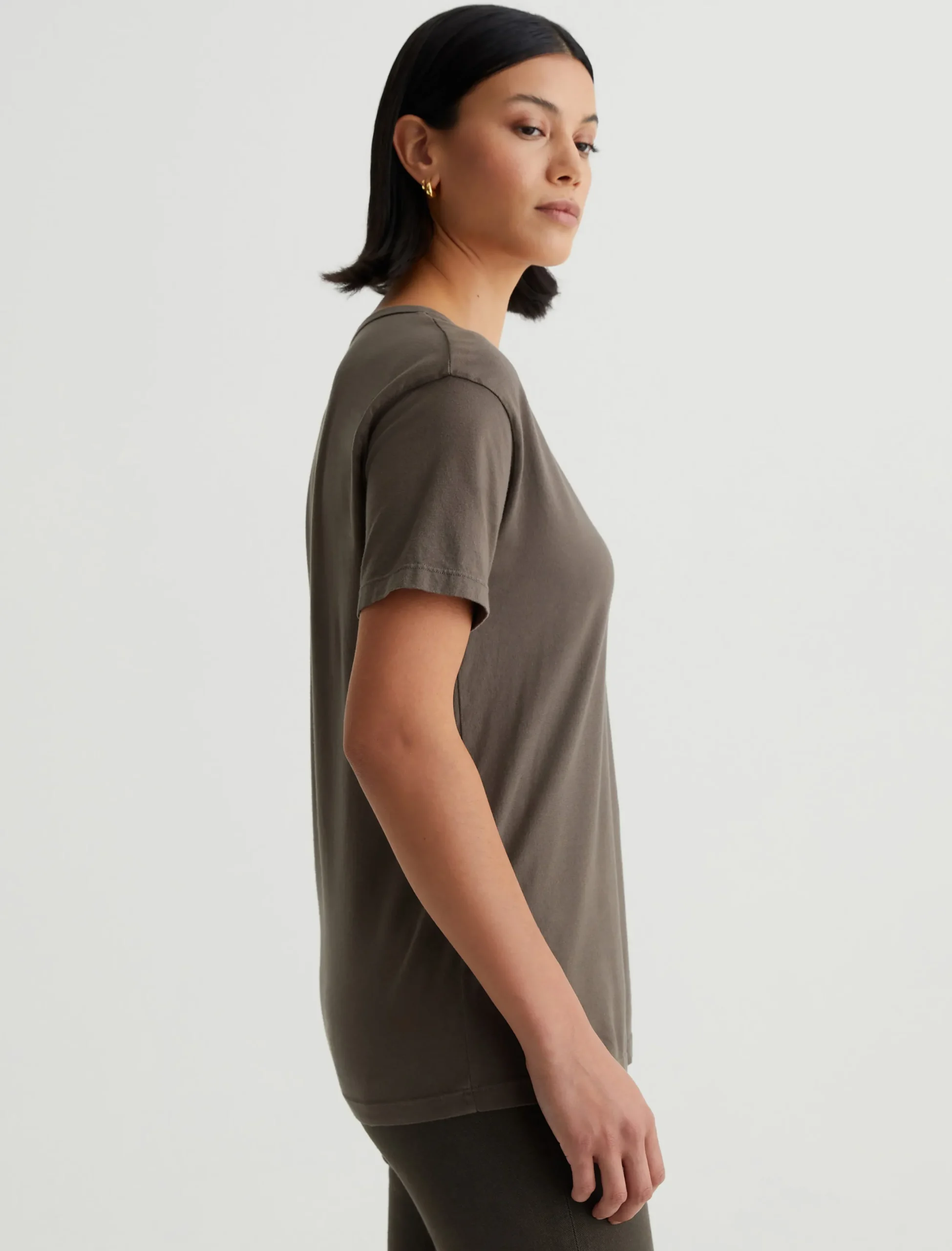 The Aspen tee has a relaxed short-sleeve silhouette defined by a flattering U-shaped neckline. Made from 100% cotton Essential Light Jersey in Stone Brown, it’s got special construction that combines S-twist and Z-twist yarns to keep the shape on point. The result is a soft, durable essential you’ll wear endlessly.