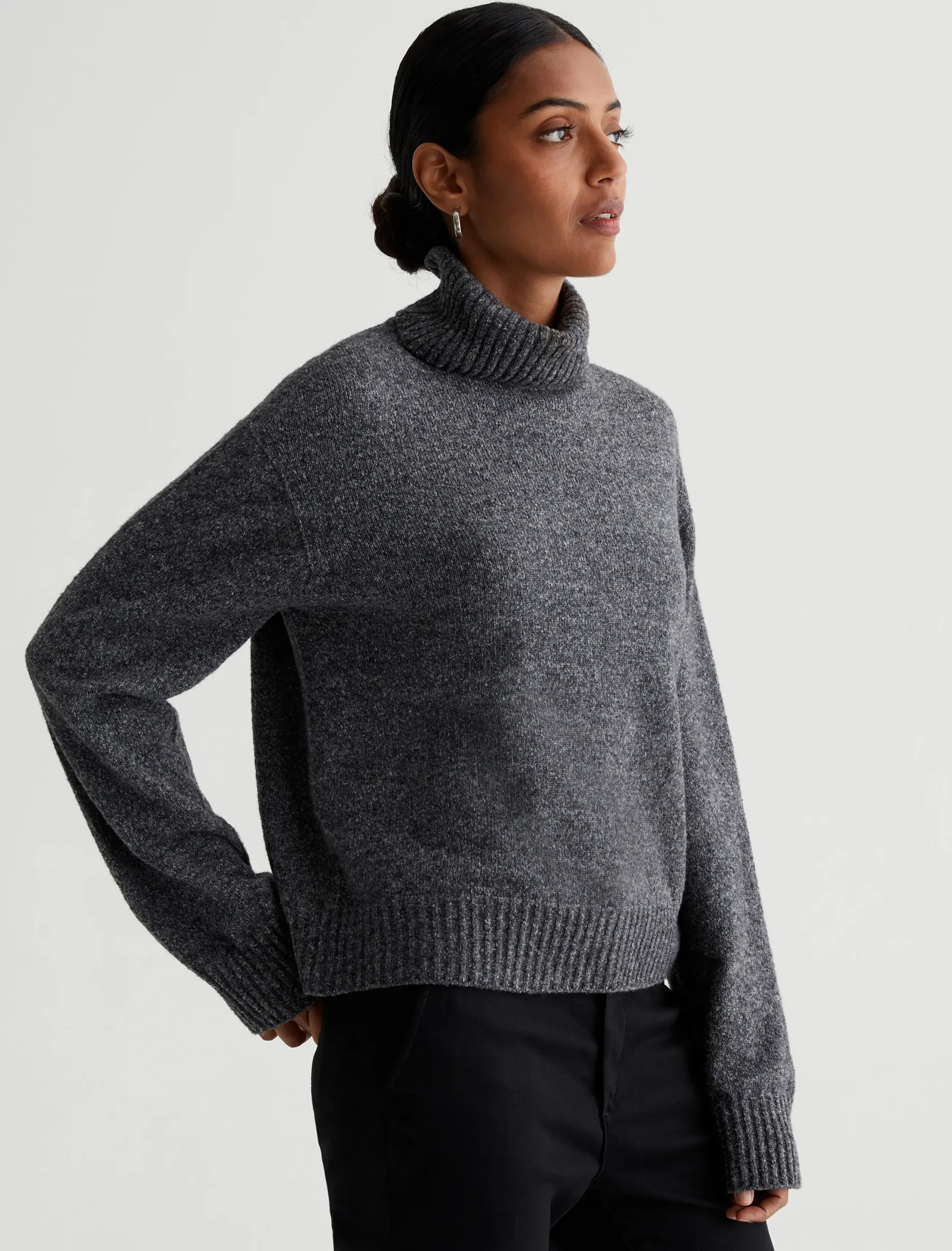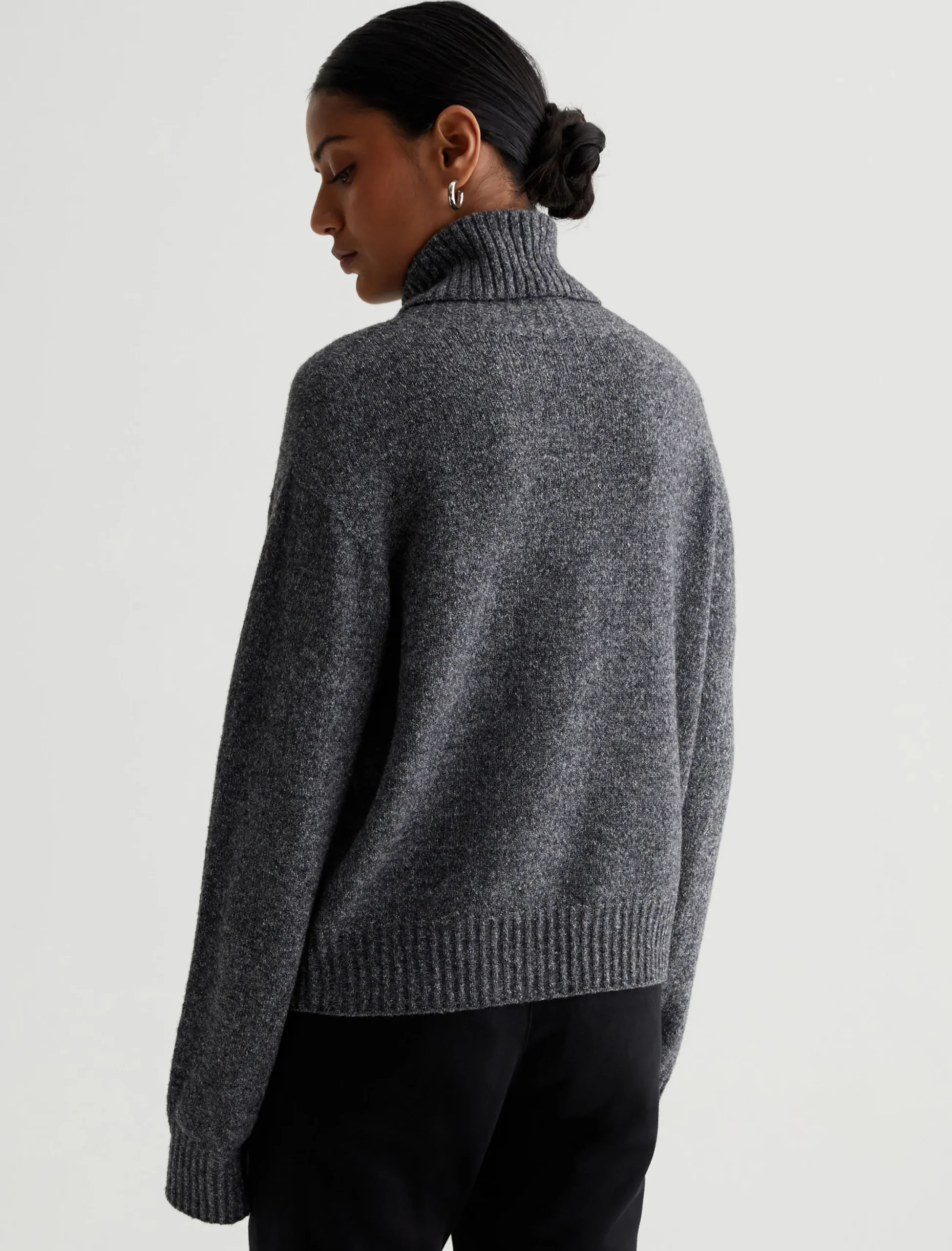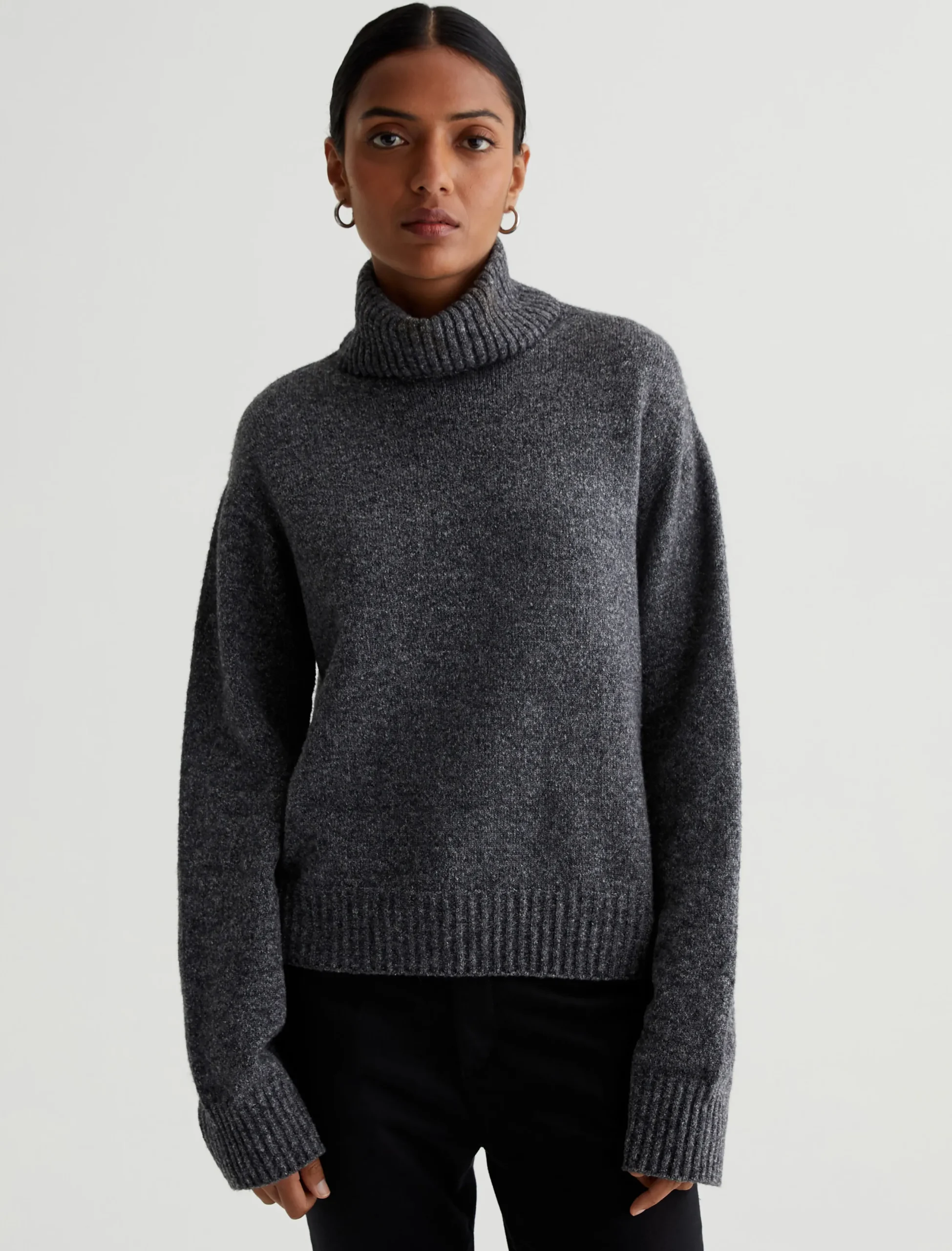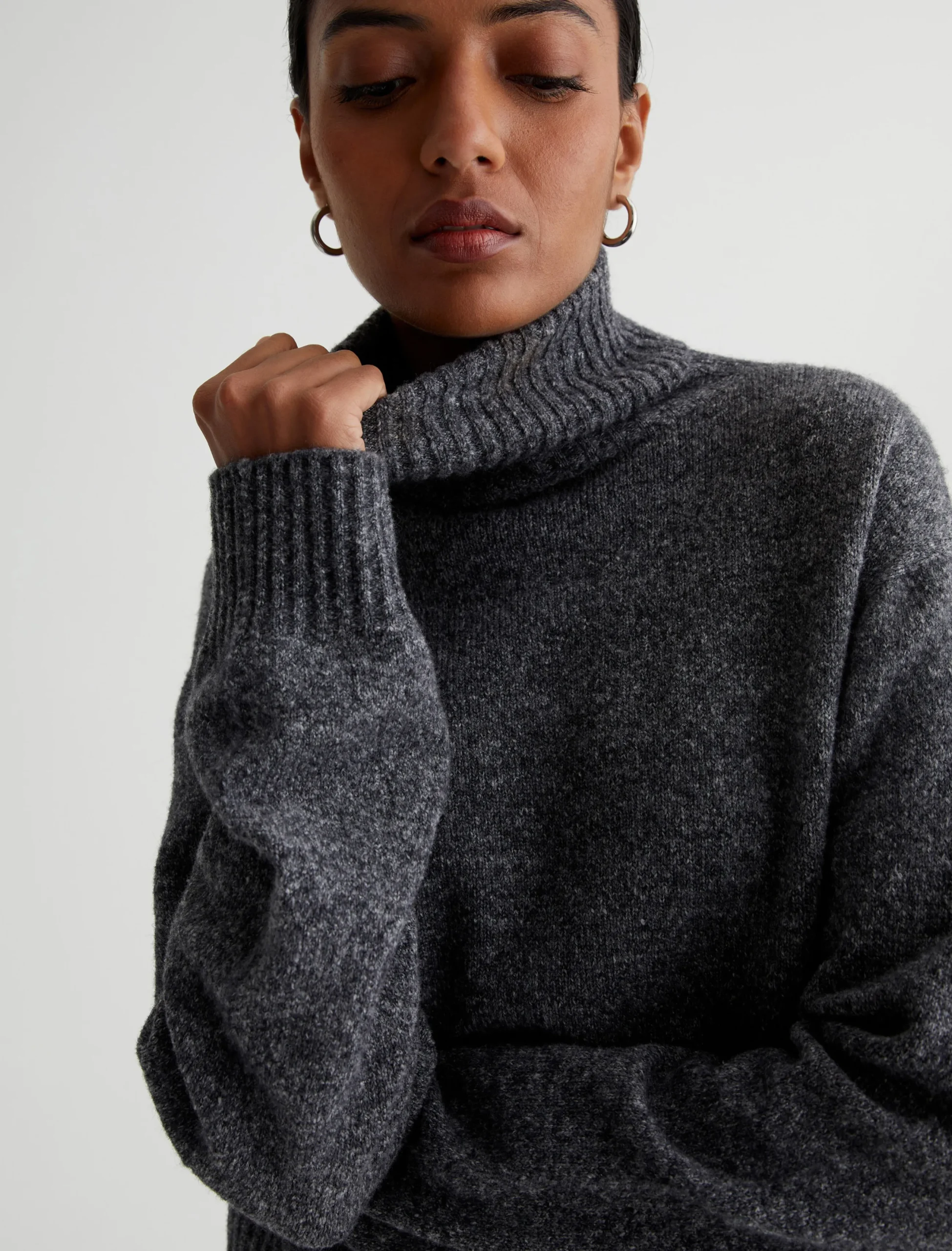 A warm and cozy addition to your knitwear collection, the Bellona is a relaxed turtleneck sweater in a slightly boxy shape. Done here in heathered charcoal, it’s blended with Merino wool and alpaca for a soft, plush feel.