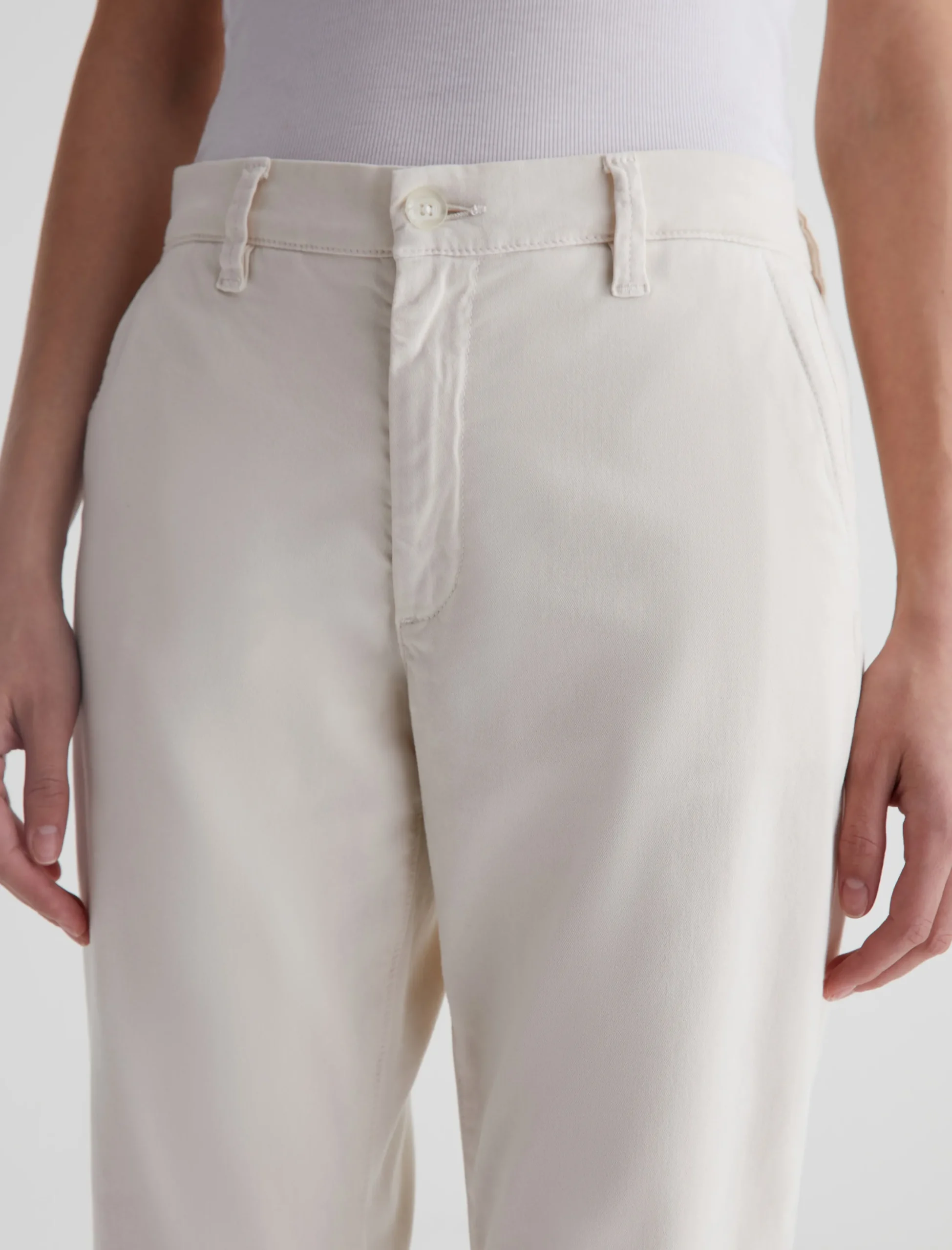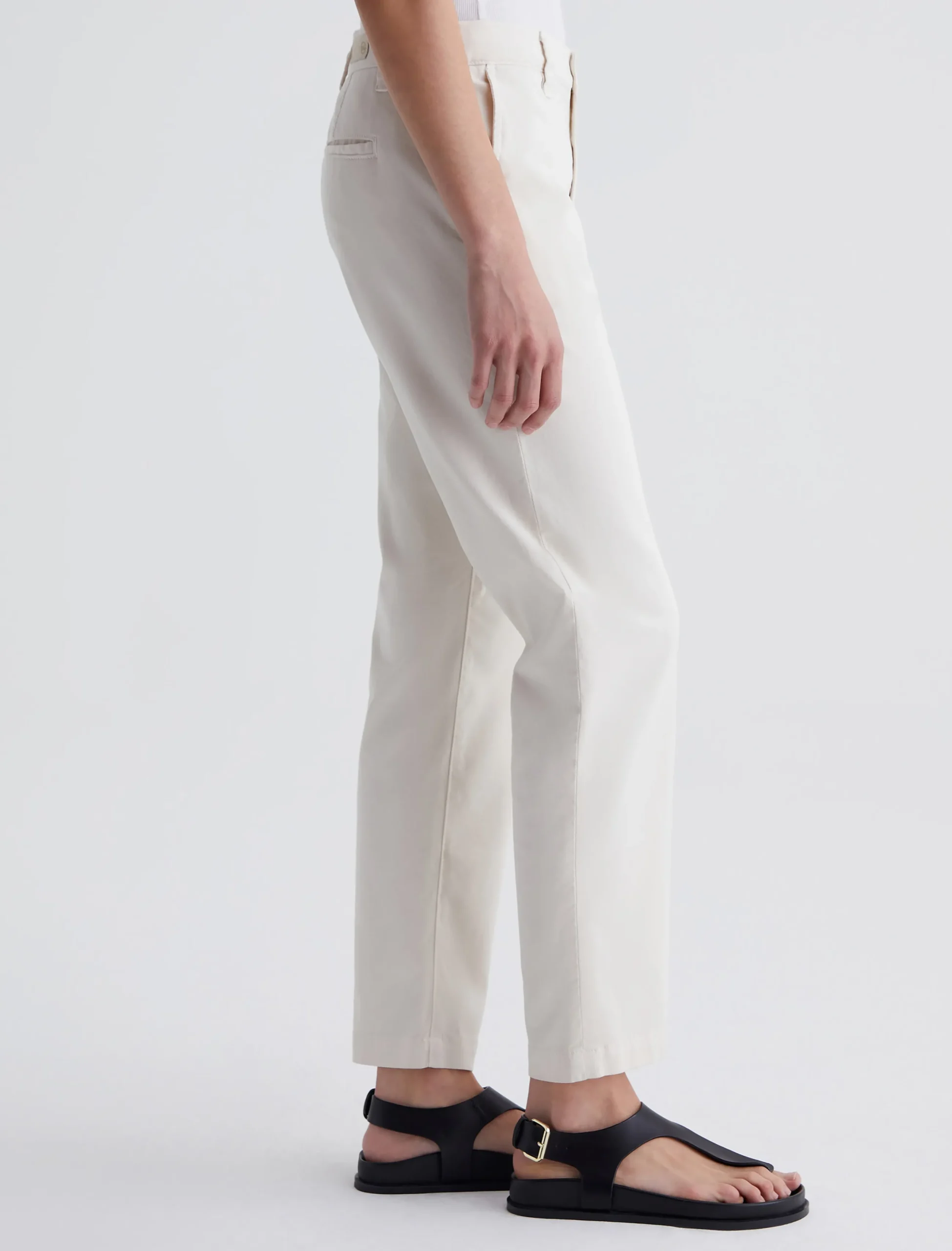 Caden is a tailored trouser crafted from 7.5 oz. Sumptuous Stretch Broken Twill in off-white. These women’s pants have a relaxed fit at the hips and a gently tapered shape through the legs, finishing in a cropped length that lands above the ankles. Detailed with slant front pockets and welt back pockets.