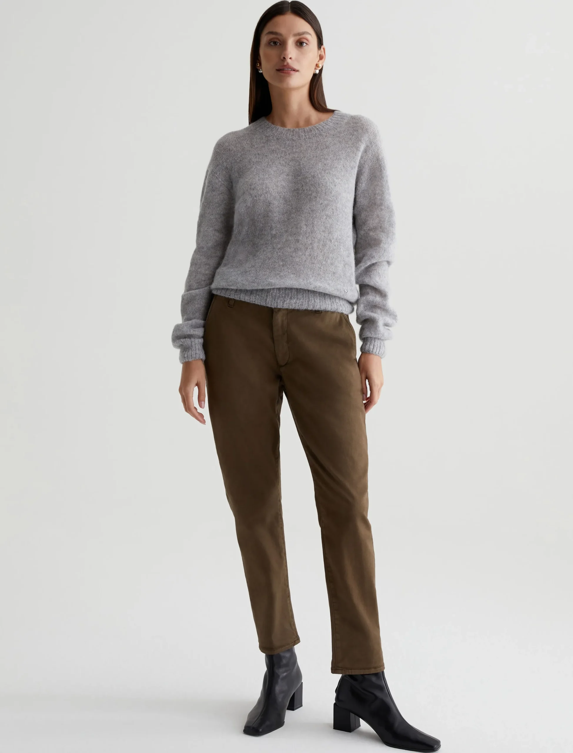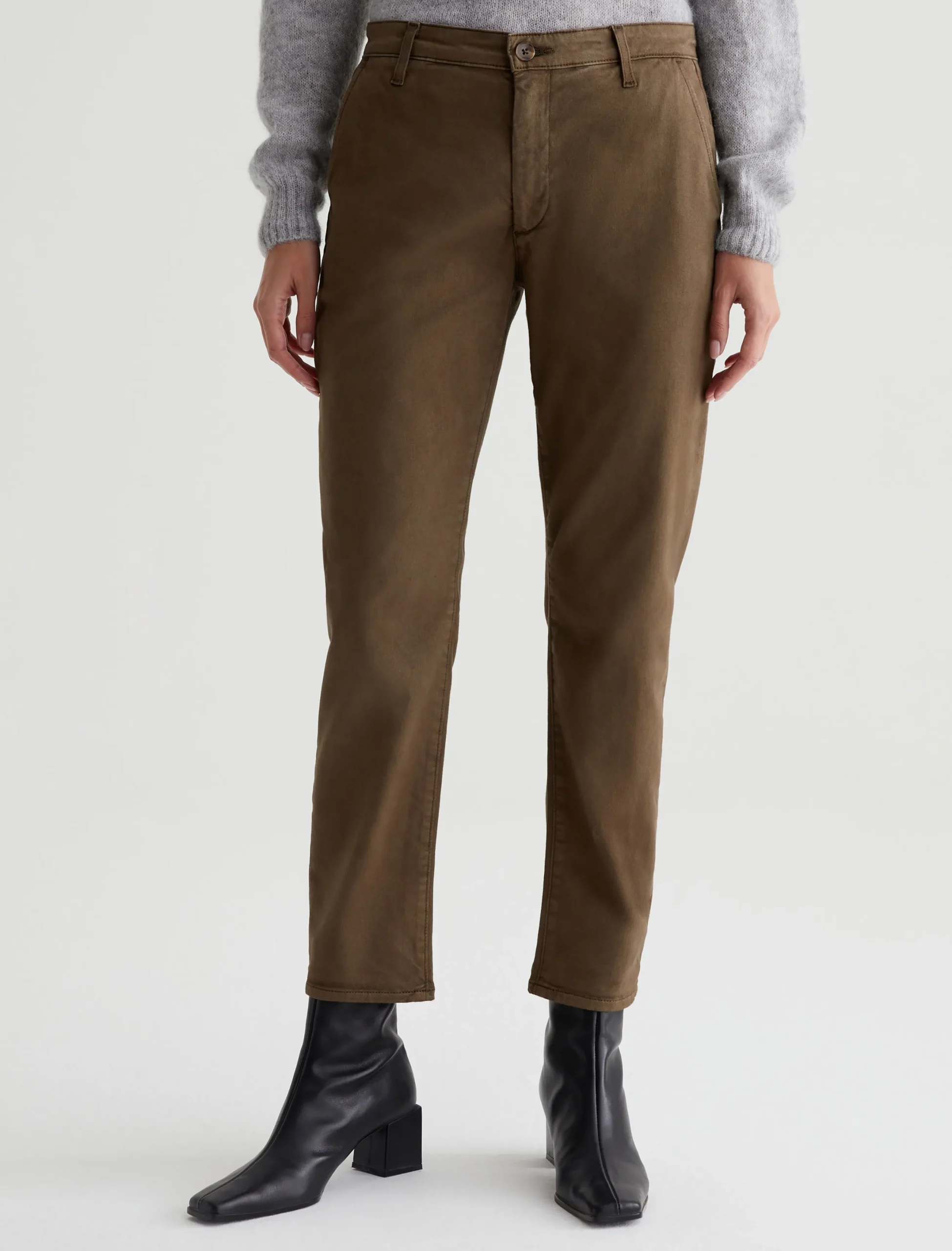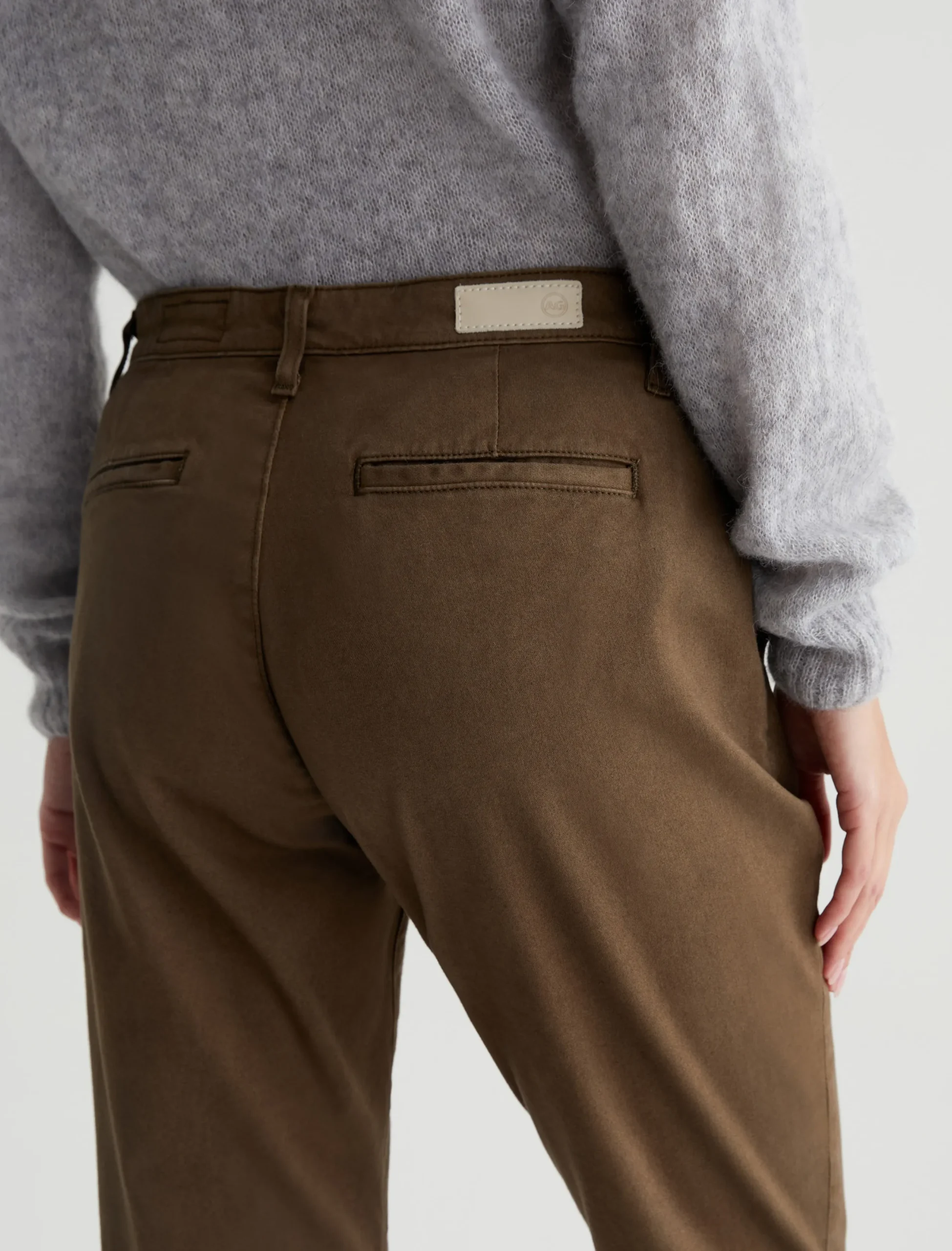 Caden is a tailored trouser crafted from 7.5 oz. Sumptuous Stretch Broken Twill in a sulfur-dyed brown shade. These women’s pants have a relaxed fit at the hips and a gently tapered shape through the legs, finishing in a cropped length that lands above the ankles. Detailed with slant front pockets and welt back pockets.