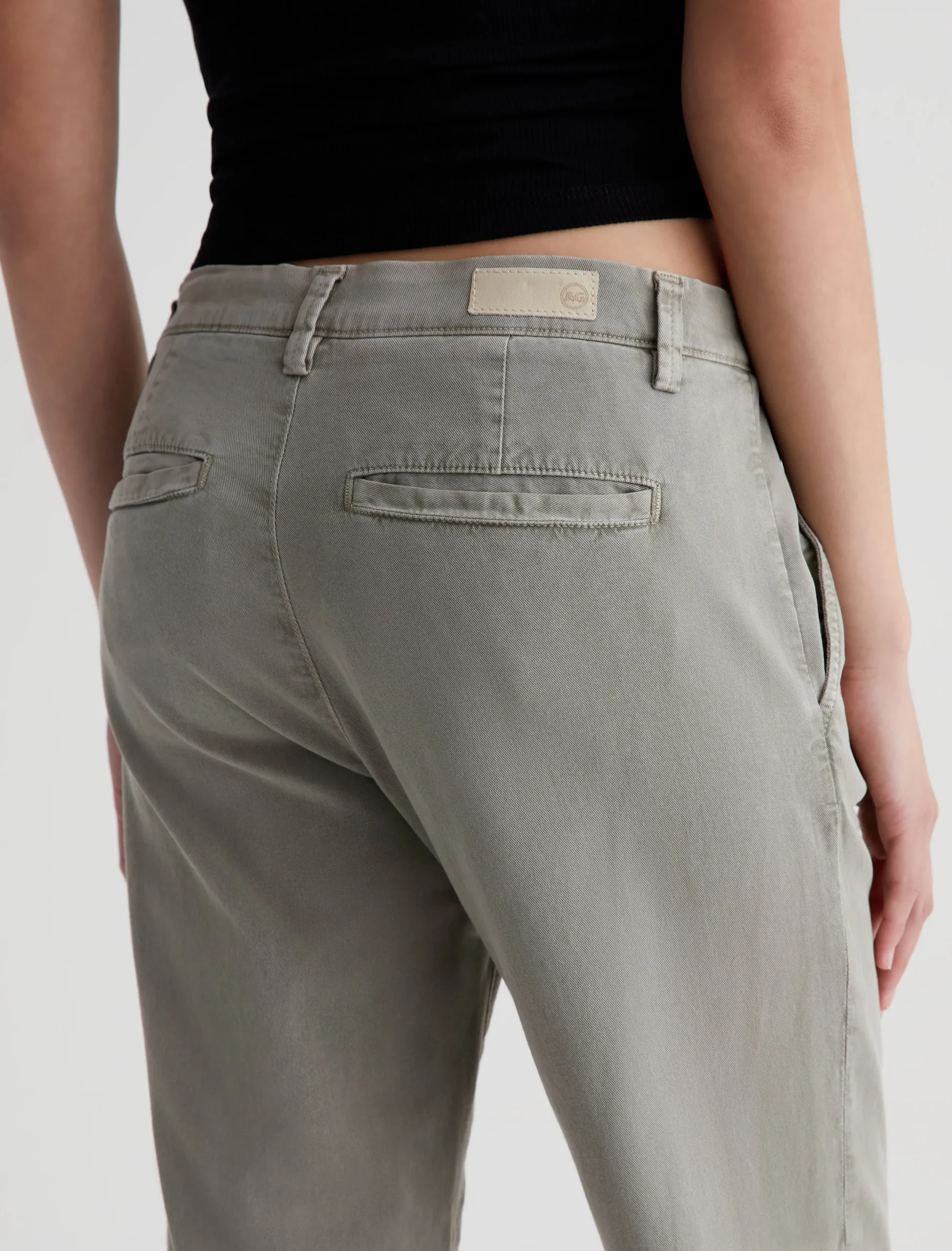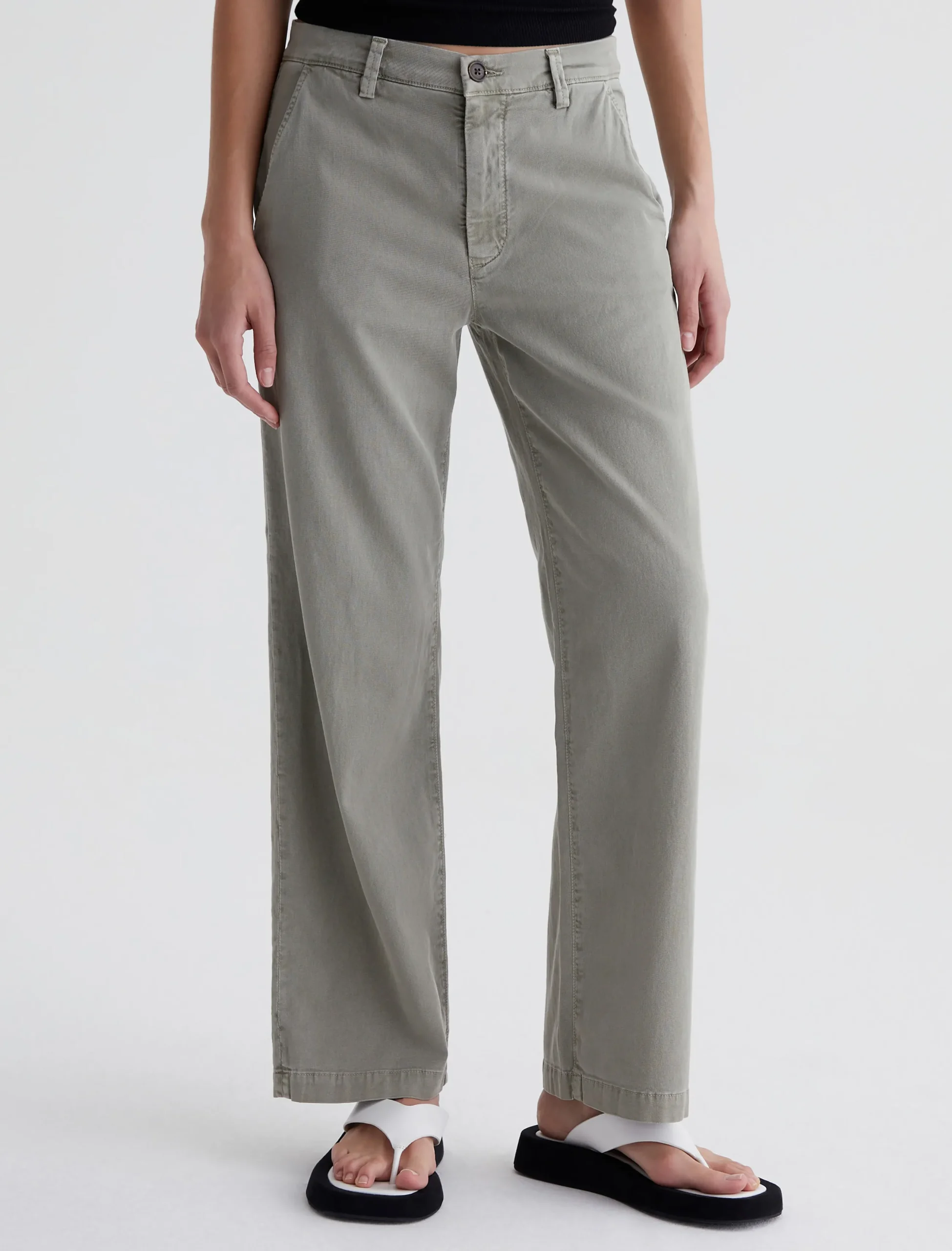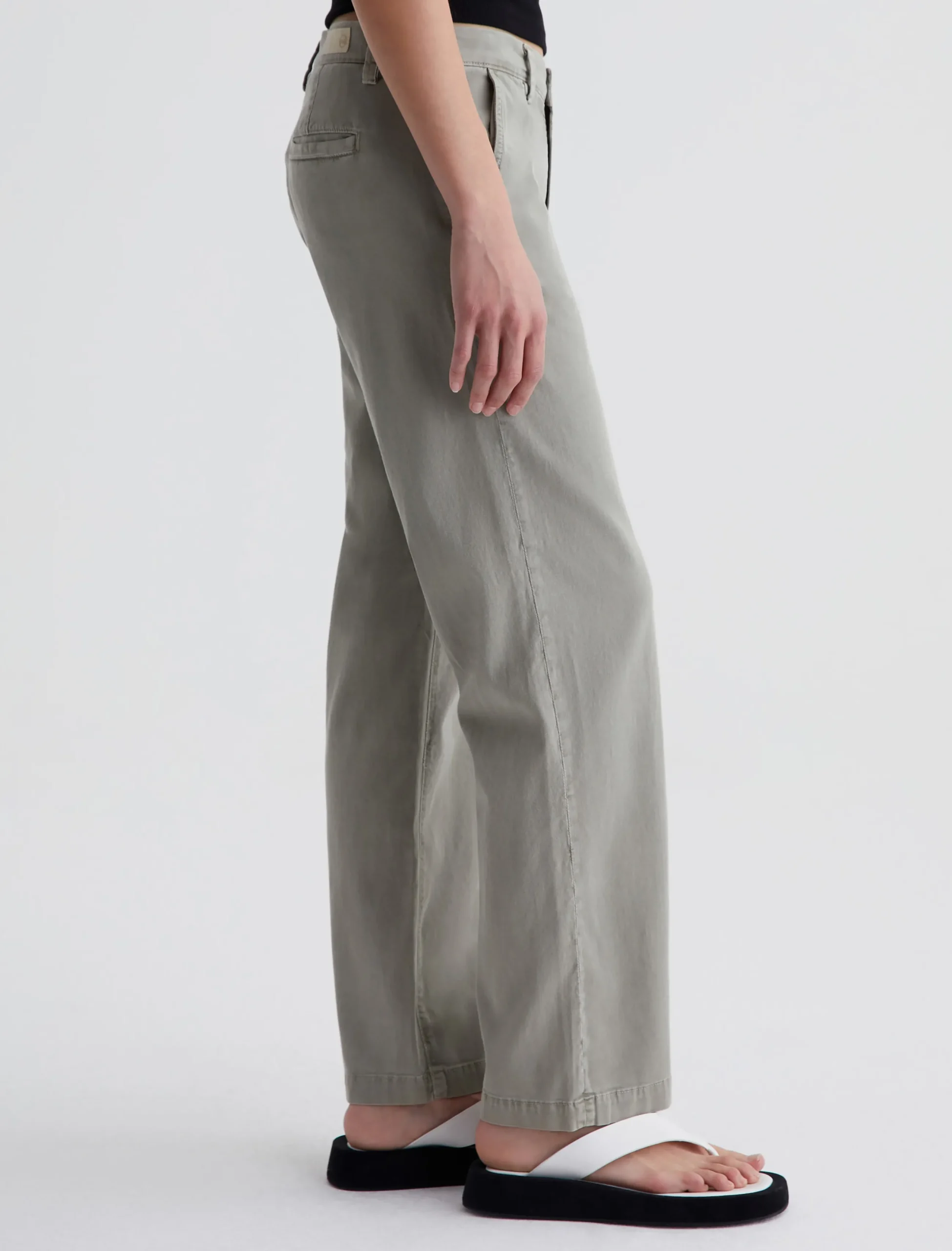 The Caden Straight updates our best-selling tailored trouser with a straight-leg silhouette. This pair features comfortable 6.2 oz. Stretch Cotton Tencel Twill, a luxuriously soft and lightweight fabric that’s been sulfur-dyed for a faded green color. These chino pants for women have a relaxed fit at the hips and loose-fitting legs that land at an ankle-skimming length. Complete with slant front pockets and welt pockets at the back.