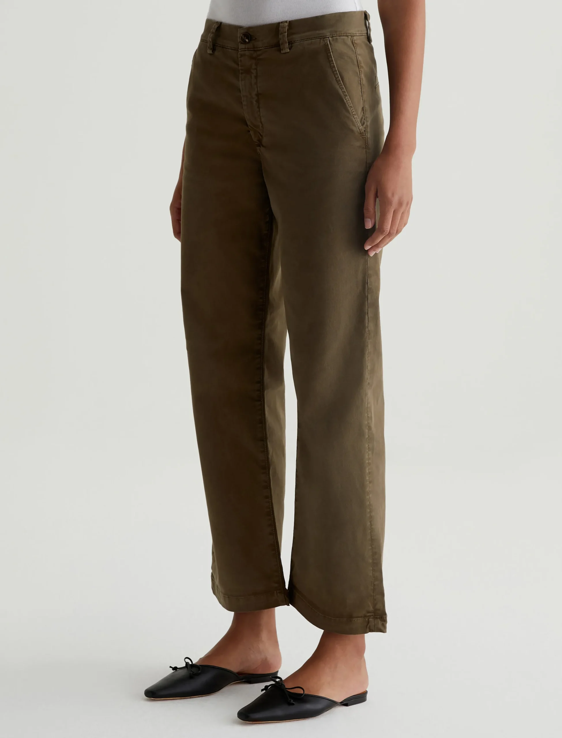 Our best-selling Caden trouser, updated in an easygoing straight-leg silhouette. Cut for a relaxed fit at the hips, these women’s tailored pants are made from 7.9 oz. Sorrento Stretch Twill in a sulfur-dyed shade of light brown. Slant front pockets and welt pockets at the back finish the look.