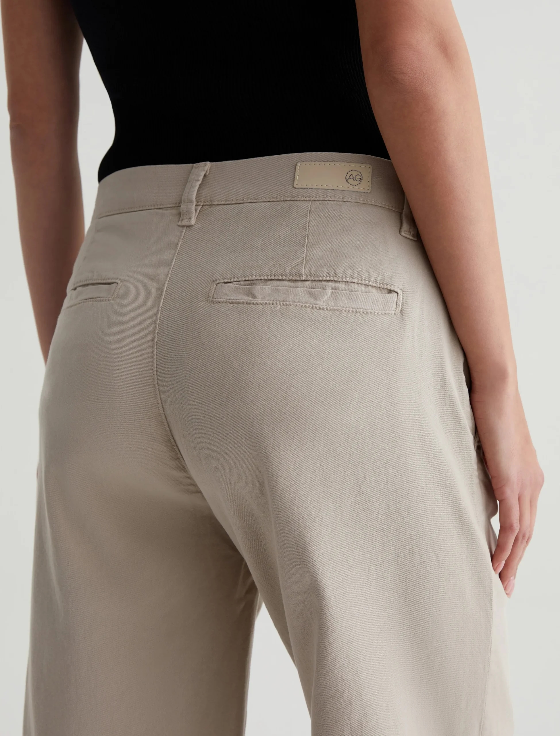 An update on our best-selling women’s trousers, the Caden Wide Leg pants feature a relaxed fit at the hips and a loose, roomy cut through the legs. Soft and lightweight, these wide-leg trousers are crafted from 6.2 oz. Stretch Cotton Tencel Twill in a pale beige shade. Complete with a zip fly with faux-horn button, slant front pockets, and welt back pockets.