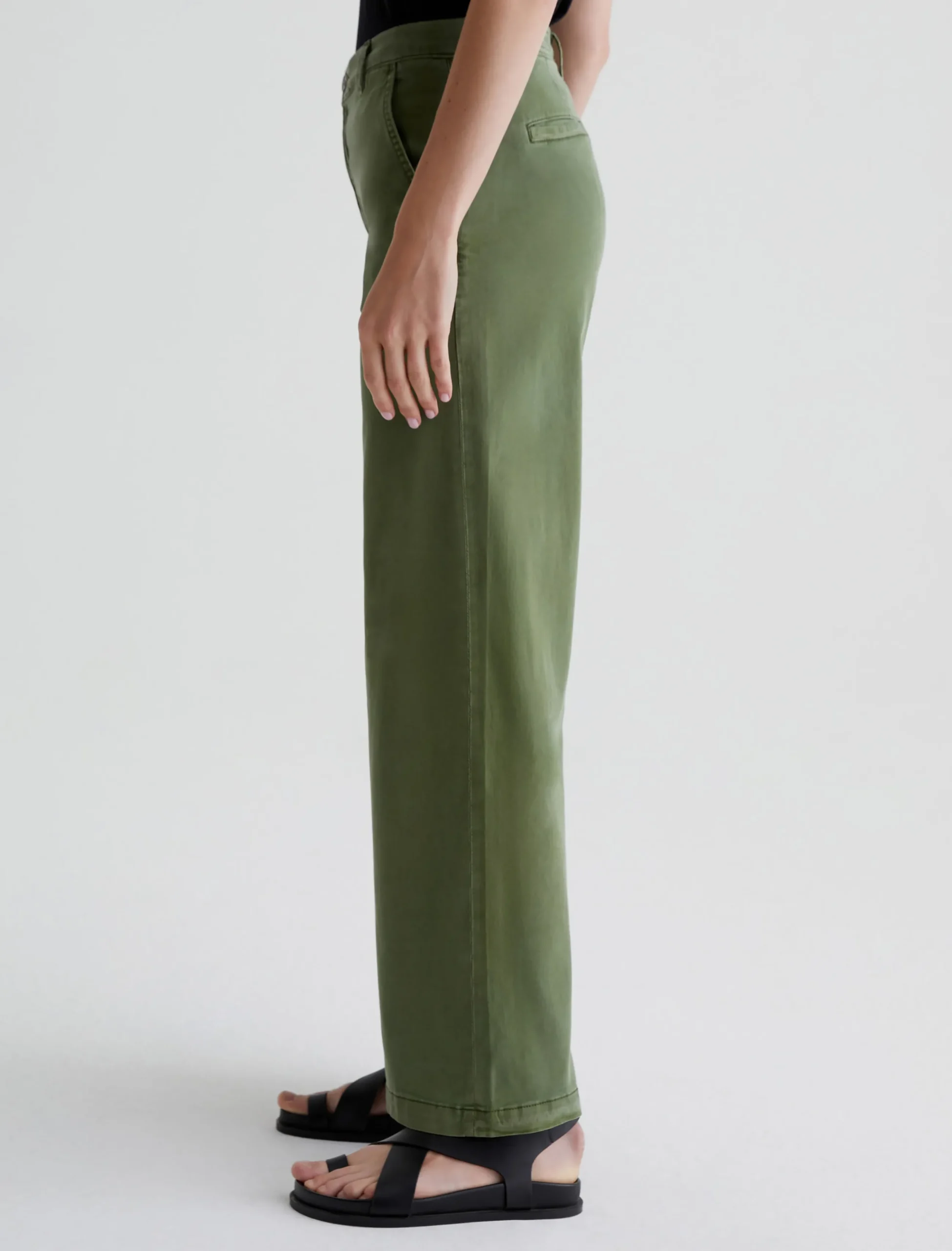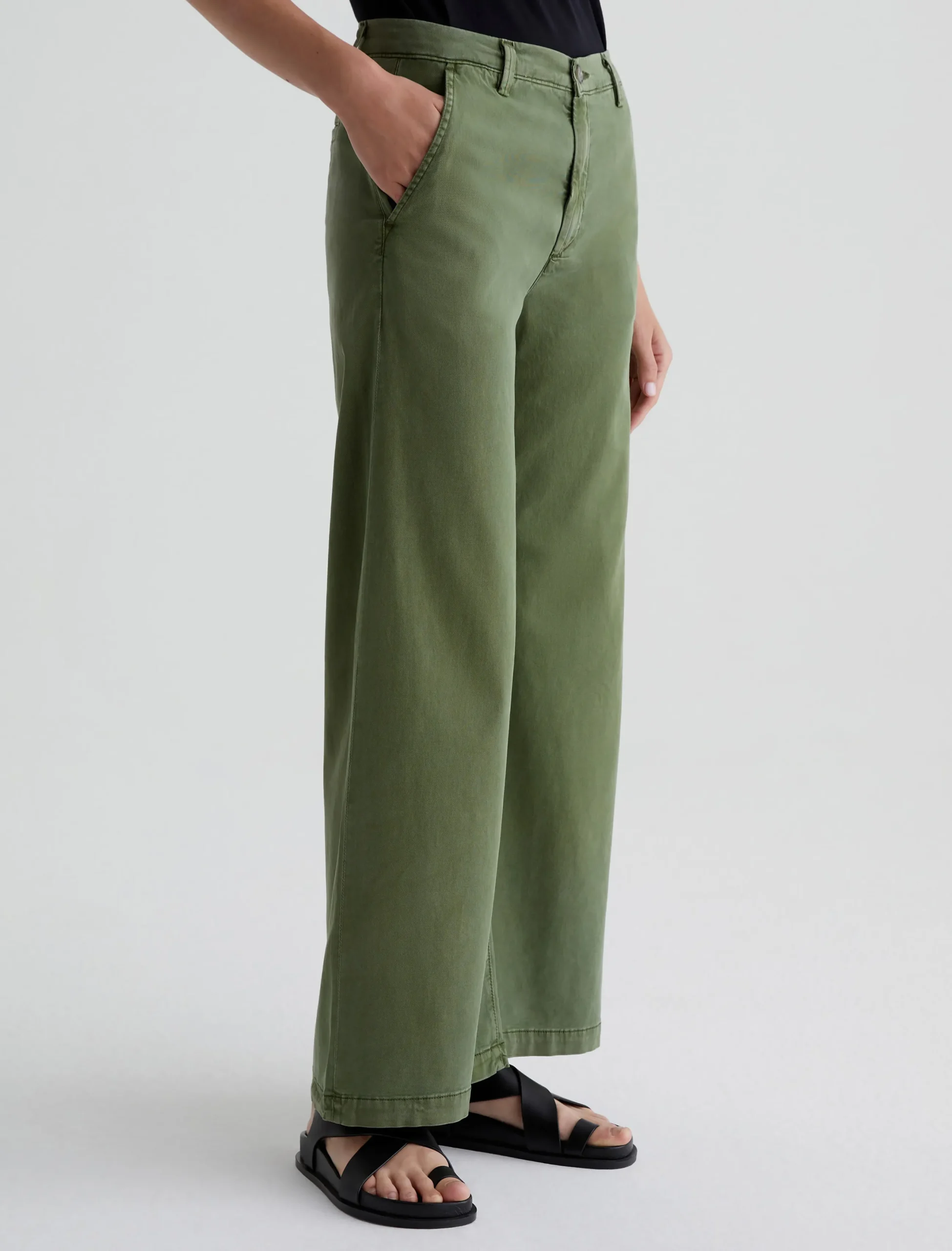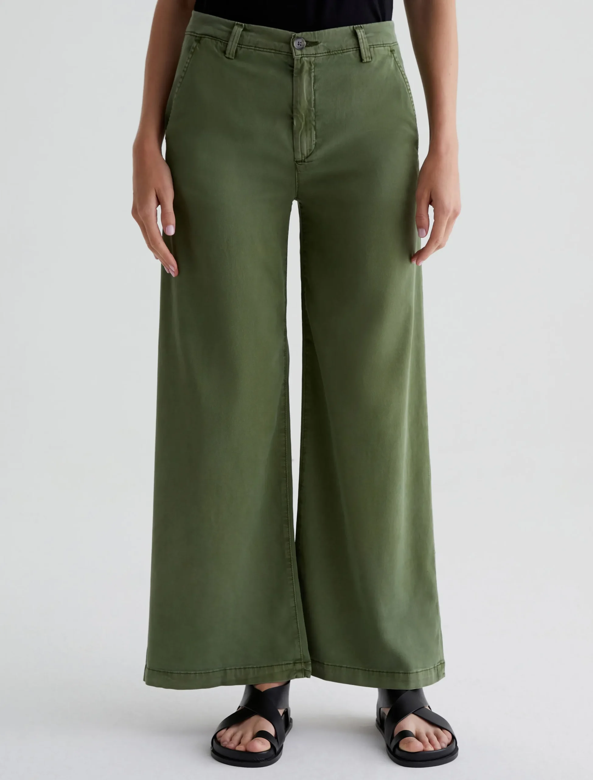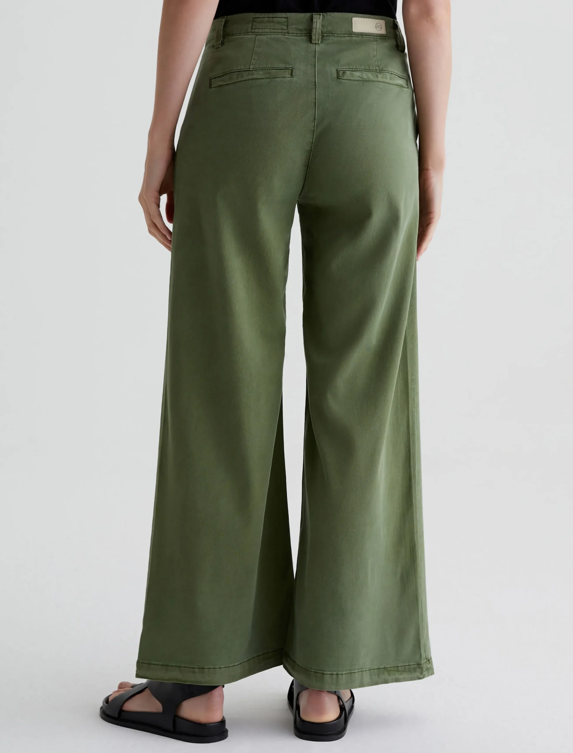 An update on our best-selling women’s trousers, the Caden Wide Leg pants feature a relaxed fit at the hips and a loose, roomy cut through the legs. Soft and lightweight, these wide-leg trousers are crafted from 6.2 oz. Stretch Cotton Tencel Twill in a rich green shade. Complete with a zip fly with faux-horn button, slant front pockets, and welt back pockets.