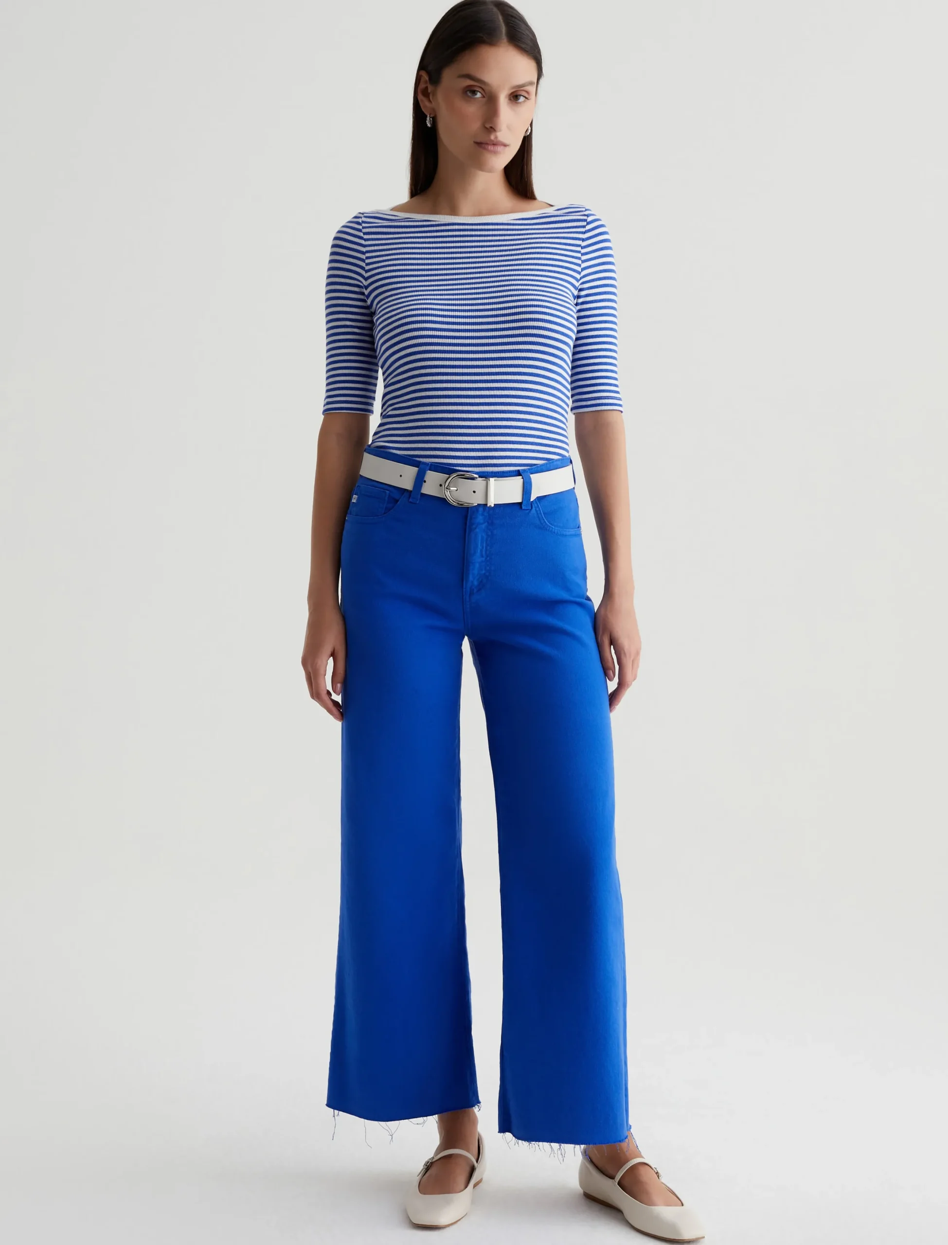 A nod to classic French styling, the Connie Top has a slim fit with an elegant boat neck and sleeves that land just above the elbow. It’s soft and comfortable in a striped cotton-blend rib knit accented by white binding at the neckline.