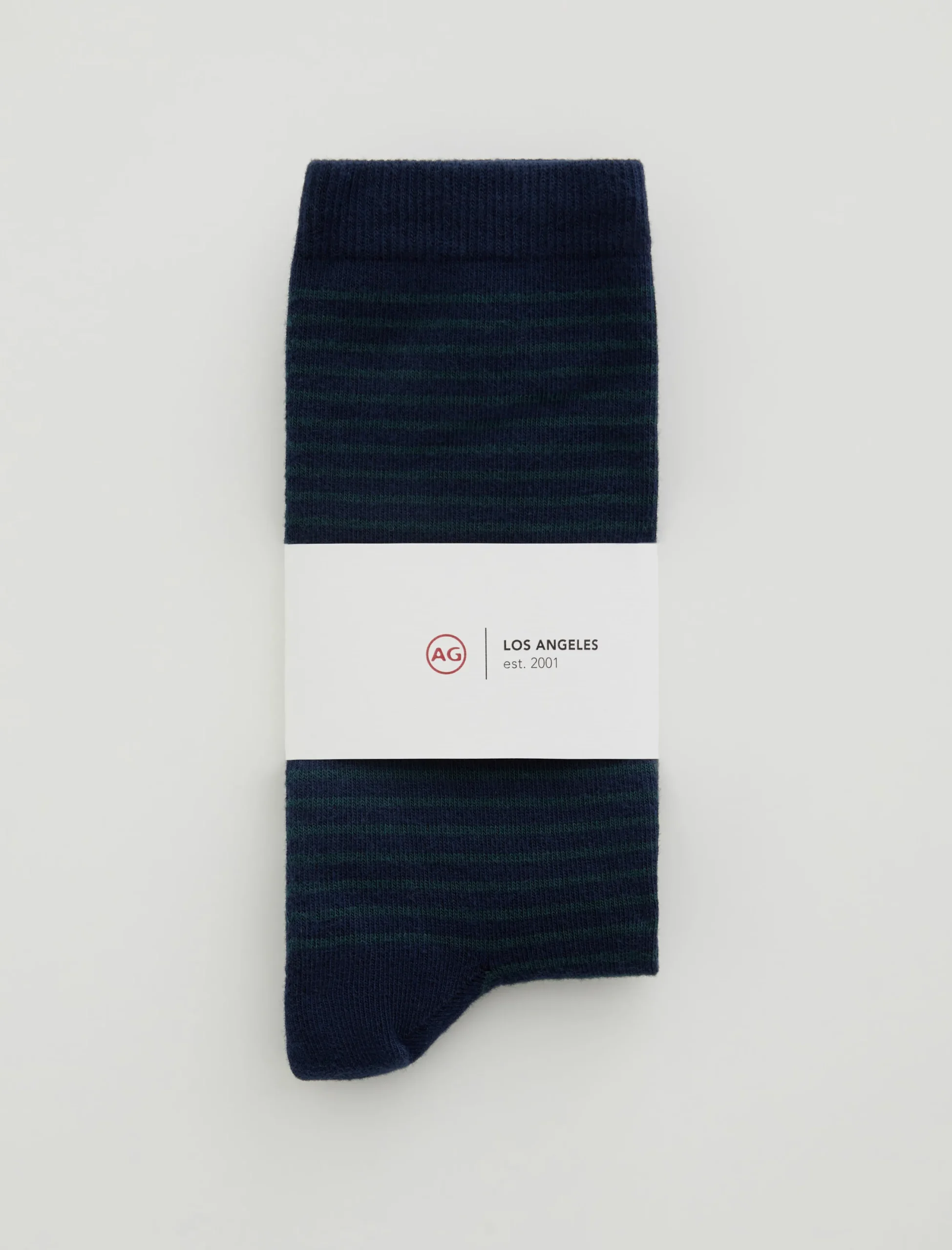 This sock is our classic crew sock. Featuring a stripe pattern, this pair has been knitted from a comfortable cotton blend and ribbed through the ankles.