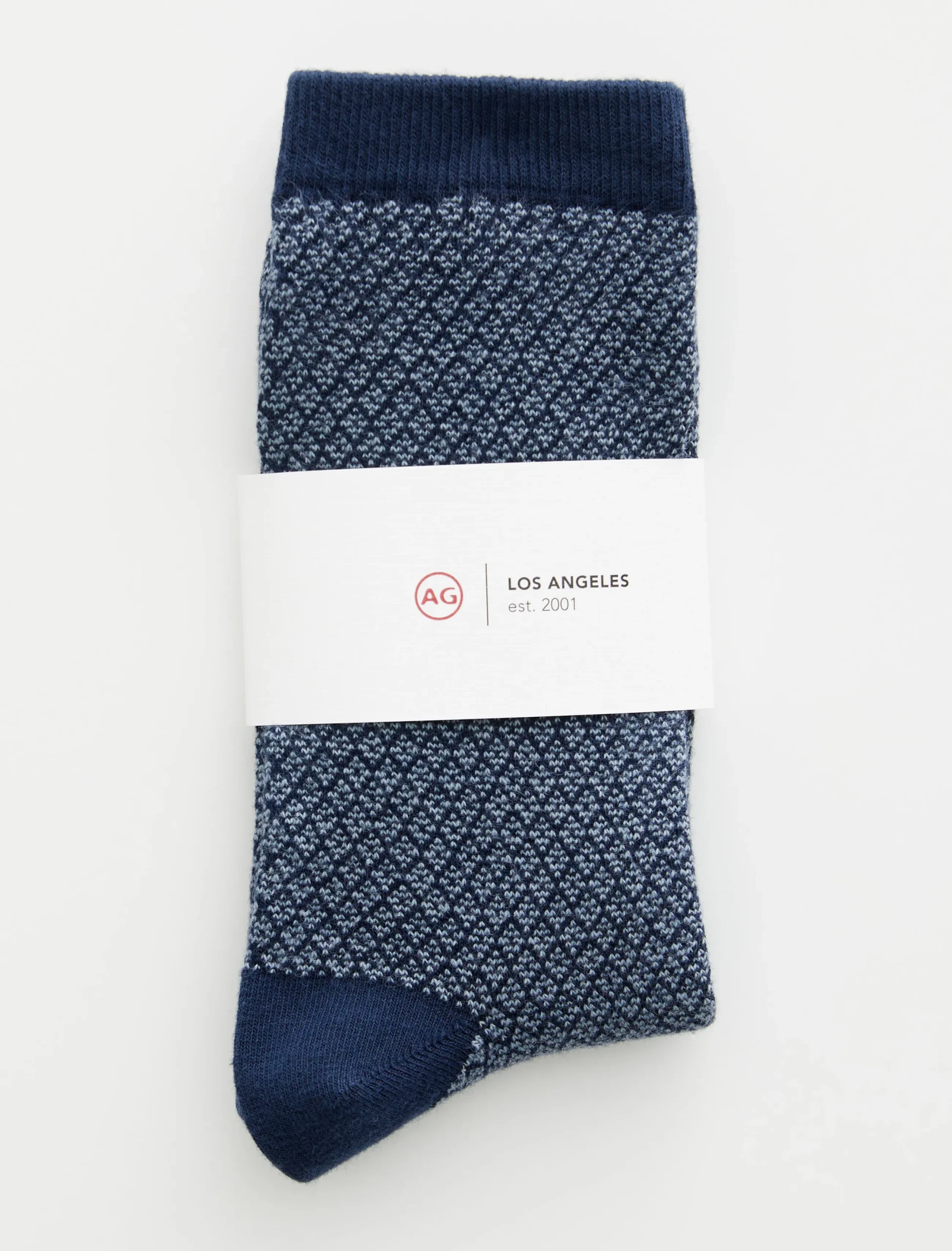 This sock is our classic crew sock. Featuring a diamond pattern, this pair has been knitted from a comfortable cotton blend and ribbed through the ankles.