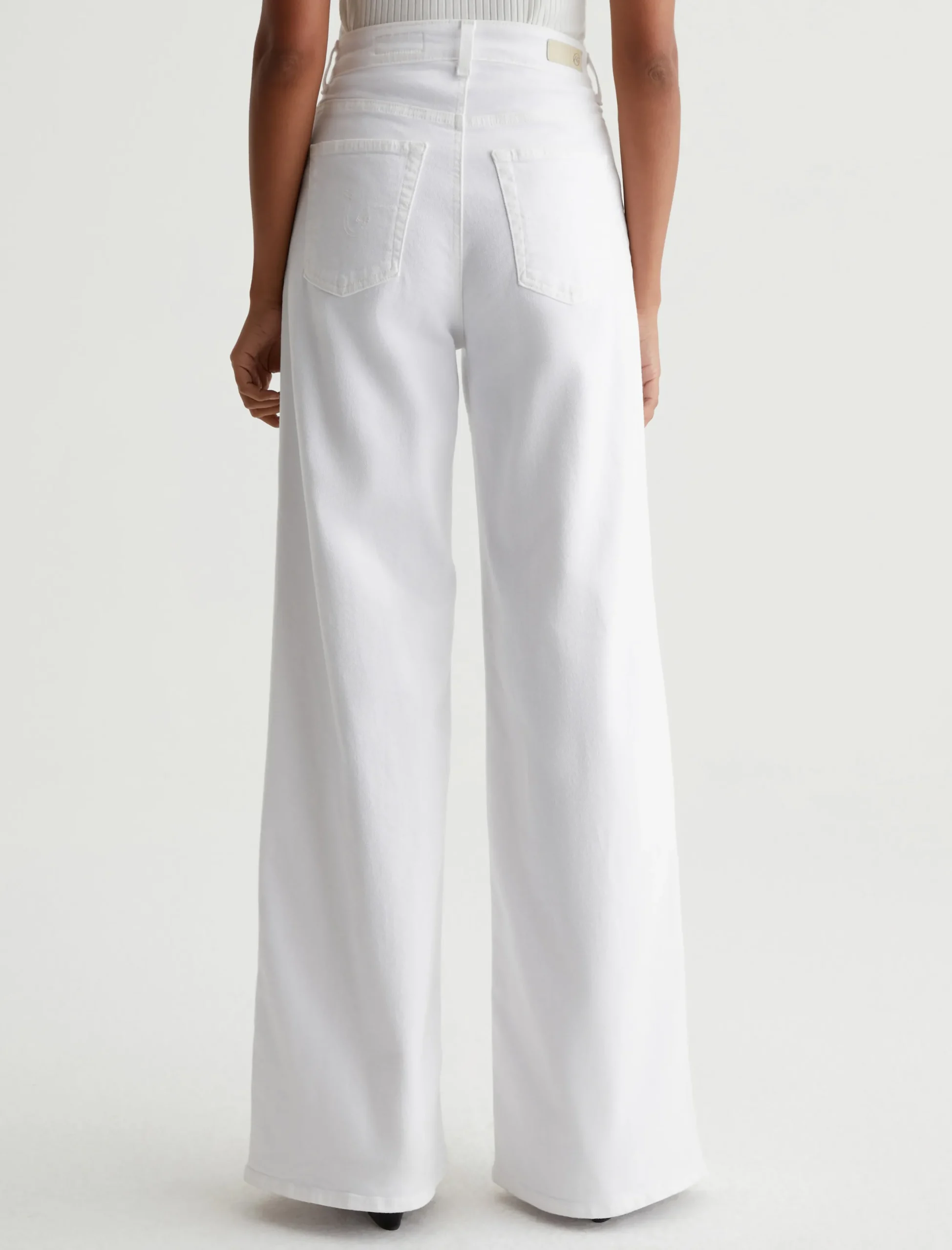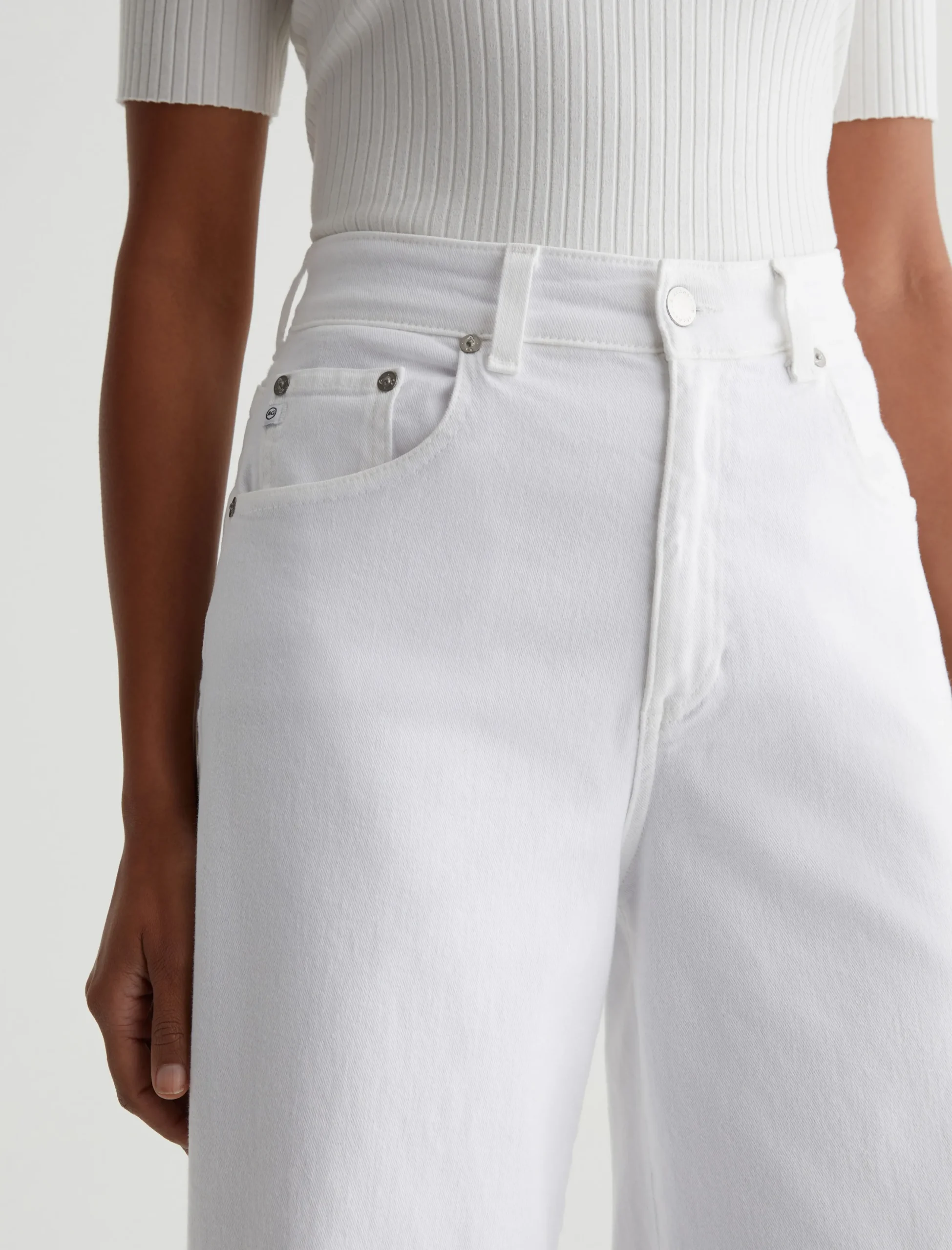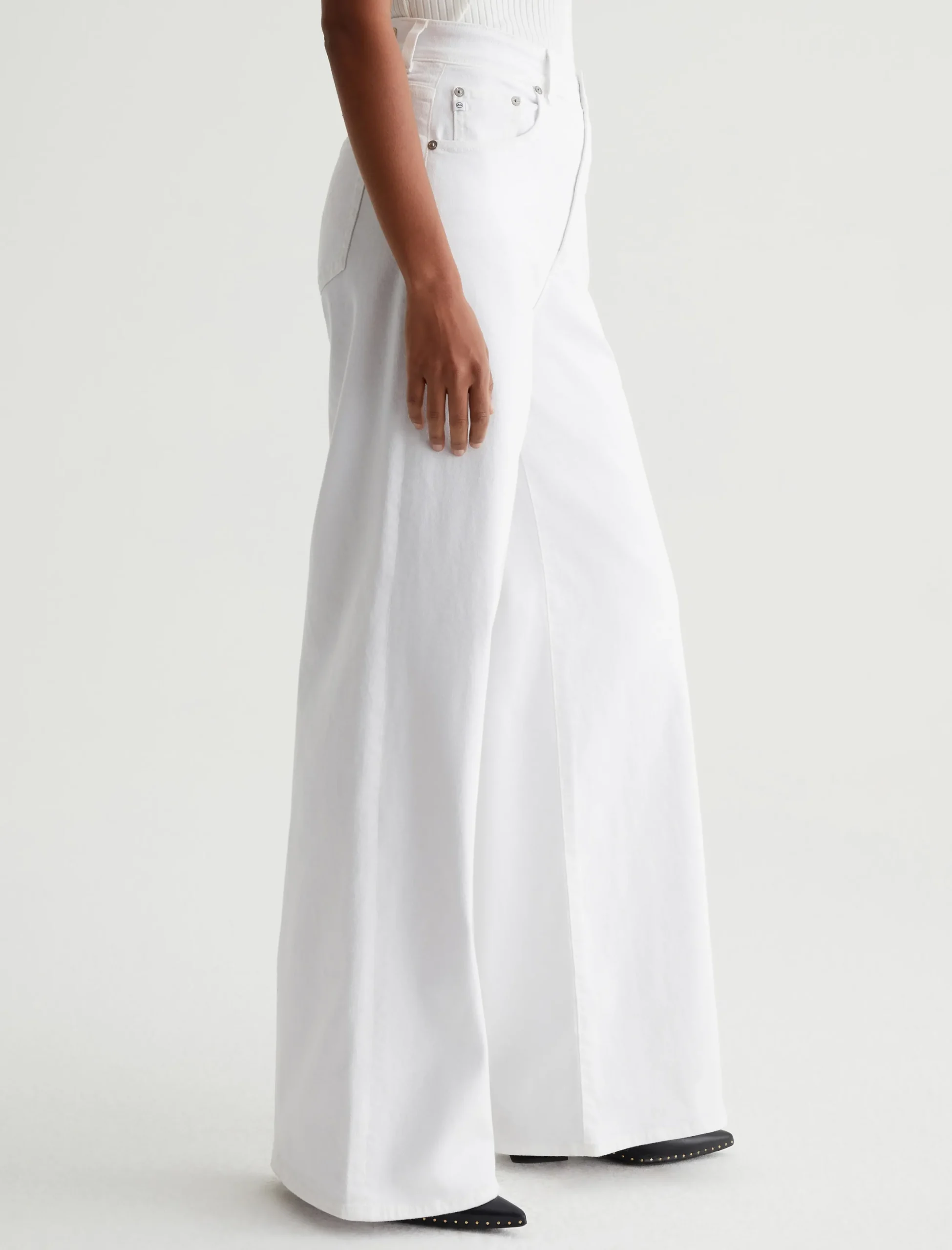 Deven is a wide-leg jean with an ultra-high rise and a floor-length inseam. Updated here in white, this pair features 9.7 oz. Hyper-Soft Stretch Denim, an exclusive AG Cloud Soft Denim™ fabric. It’s got special left-hand twill construction that allows the yarns to gently relax and untwist for a luxe, supple feel.
