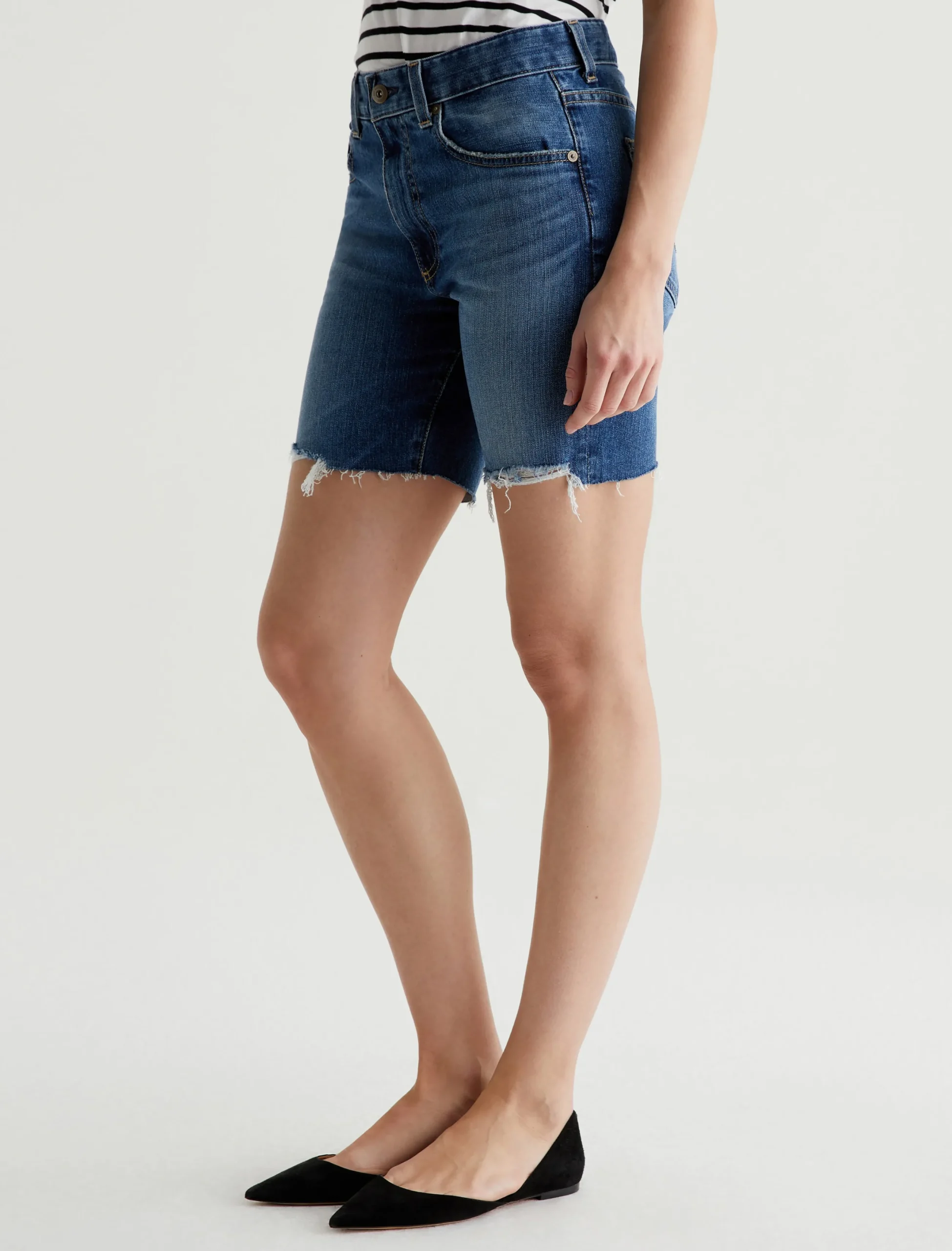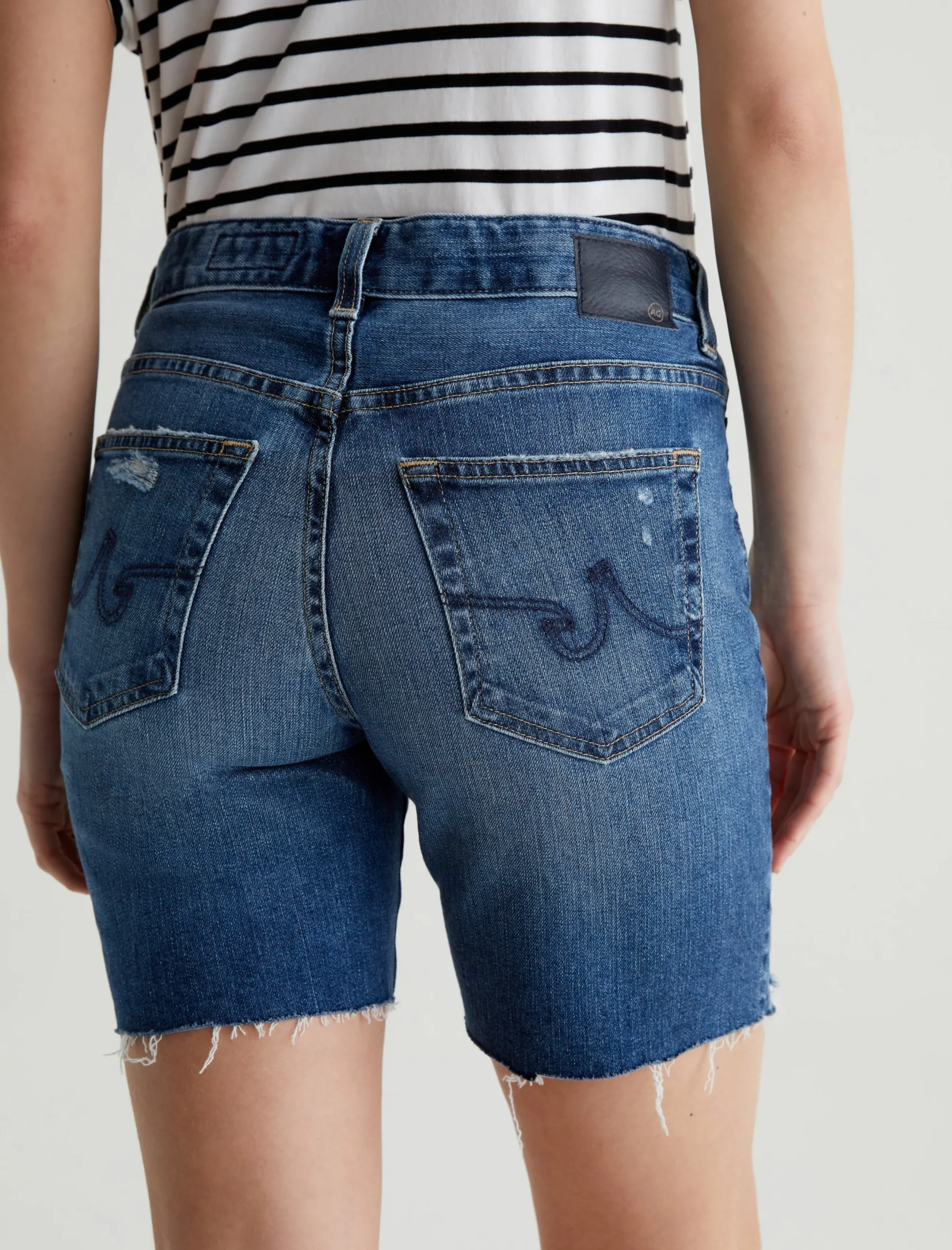 The Ex-Boyfriend Short is a mid-rise bermuda style with raw, slightly shredded hems. Designed for a slightly slouchy fit, these five-pocket shorts are crafted from 11 oz. Lead Denim that’s blended with stretch and washed to a faded medium indigo. Distressed pocket edges add an authentic lived-in finish.