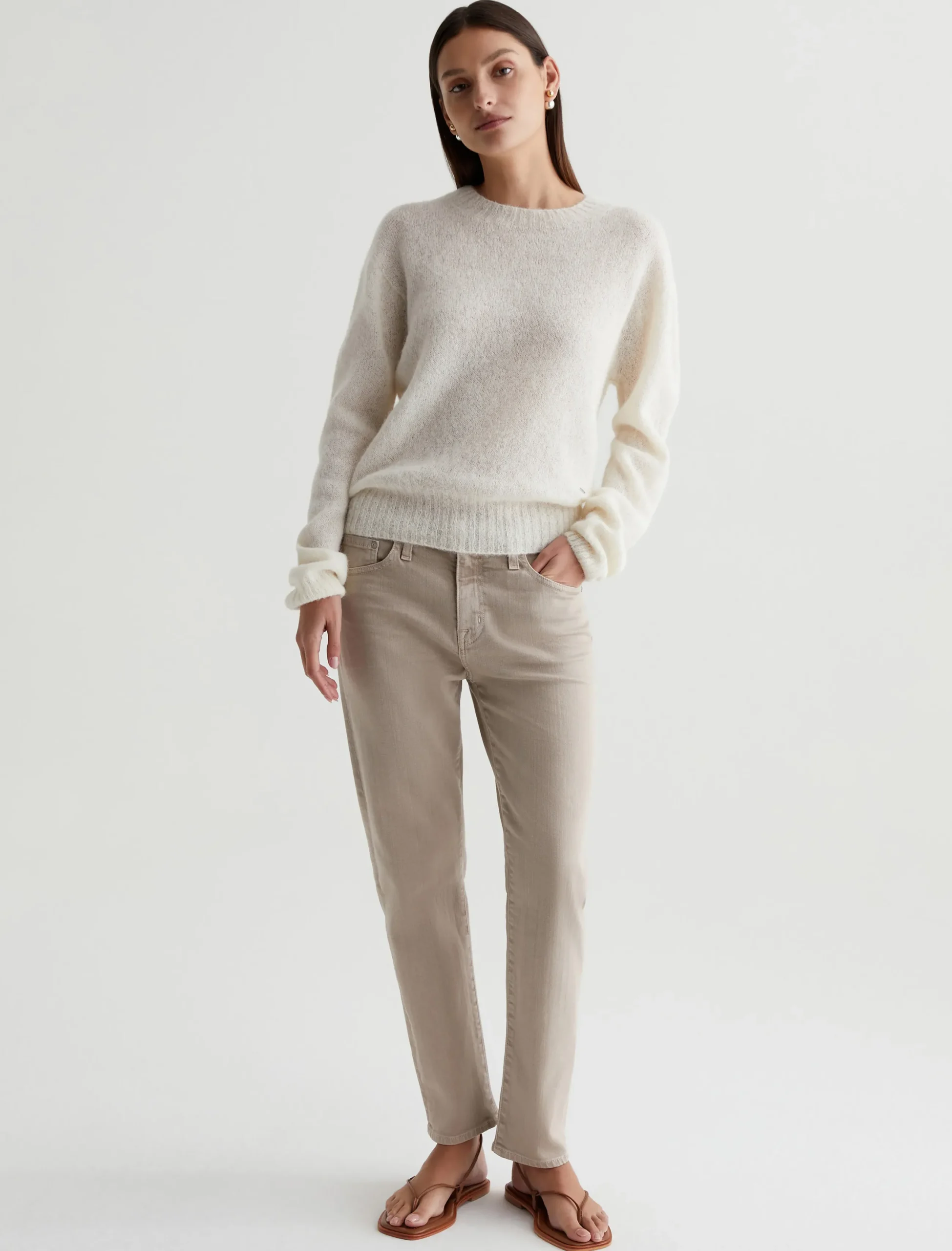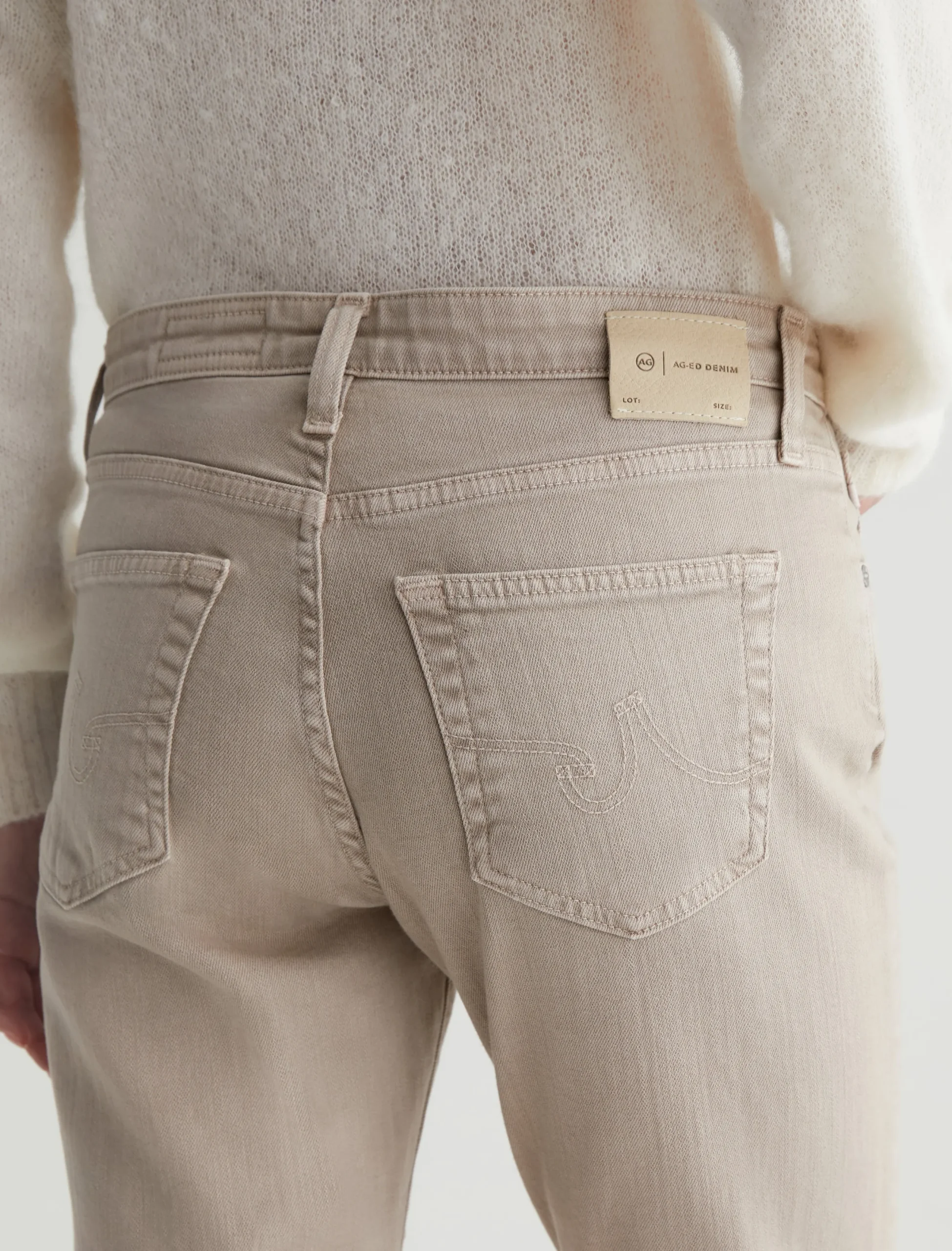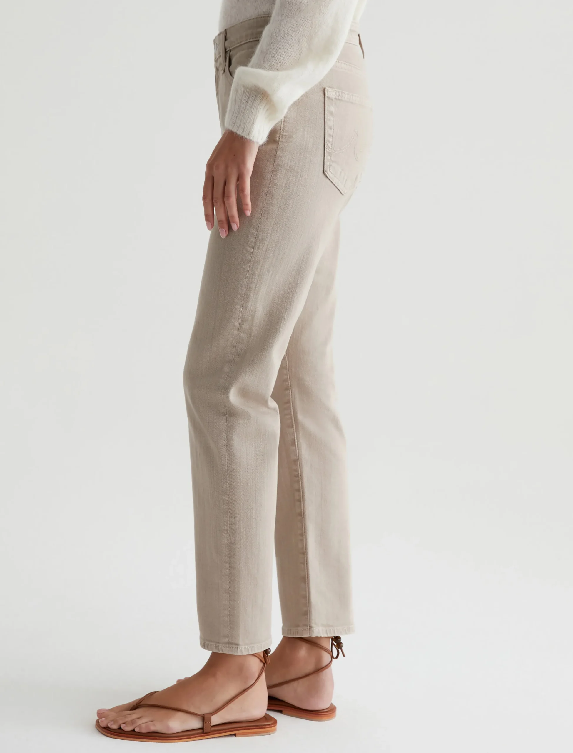 The Ex-Boyfriend Slim jeans for women feature an AG-ed™ khaki wash with a 5-year fade. This style has a mid-rise waist and a relaxed fit from hip to the knee before slightly tapering at the leg opening. These five-pocket boyfriend jeans are designed in 10 oz. Dover Stretch Denim for premium comfort.