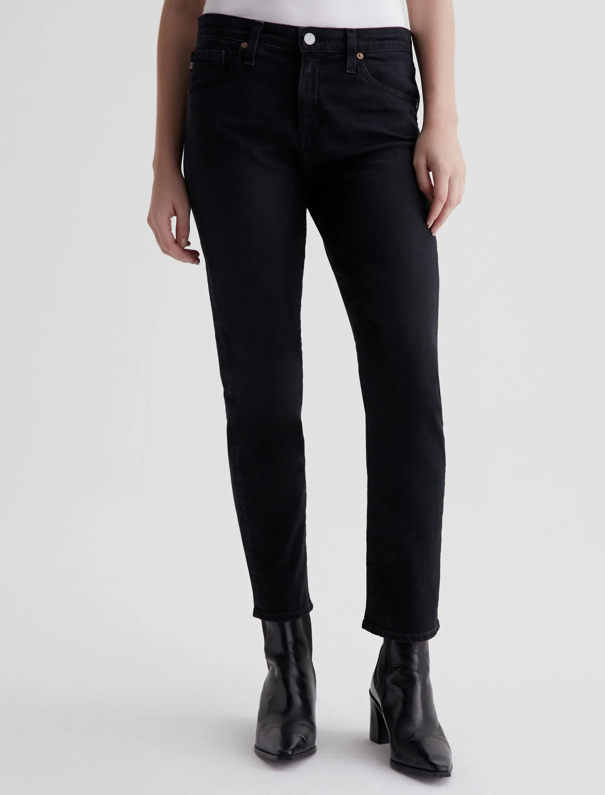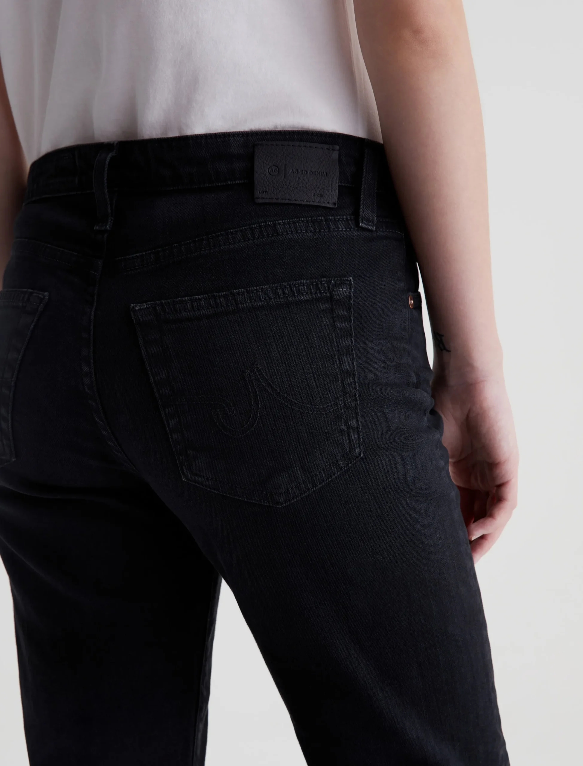 The Ex-Boyfriend Slim Jean for women features an AG-ed™ black wash with a subtle fade. This style has a mid-rise waist and a relaxed fit from hip to the knee before slightly tapering at the leg opening. These five-pocket boyfriend jeans are designed in 10 oz. Dover Stretch Denim for premium comfort.