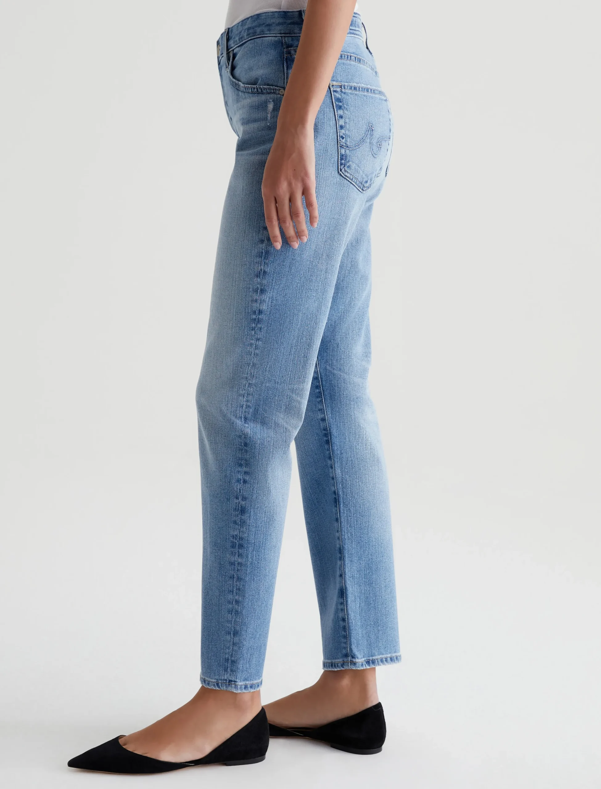 Our Ex-Boyfriend Slim jean for women features an authentic 22-year AG-ed™ wash that’s been faded to mimic the authentic worn-in character of vintage jeans. Cut with a flattering mid-rise waist, this five-pocket pair fits slouchy and relaxed from hip to knee before slightly tapering at the leg openings for a slim finish. These women’s boyfriend jeans are designed in 11 oz. comfort-stretch Lead Denim.