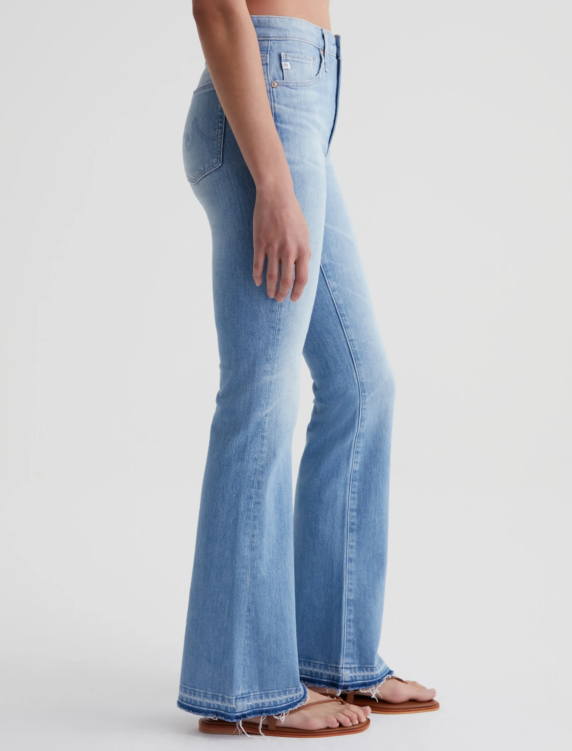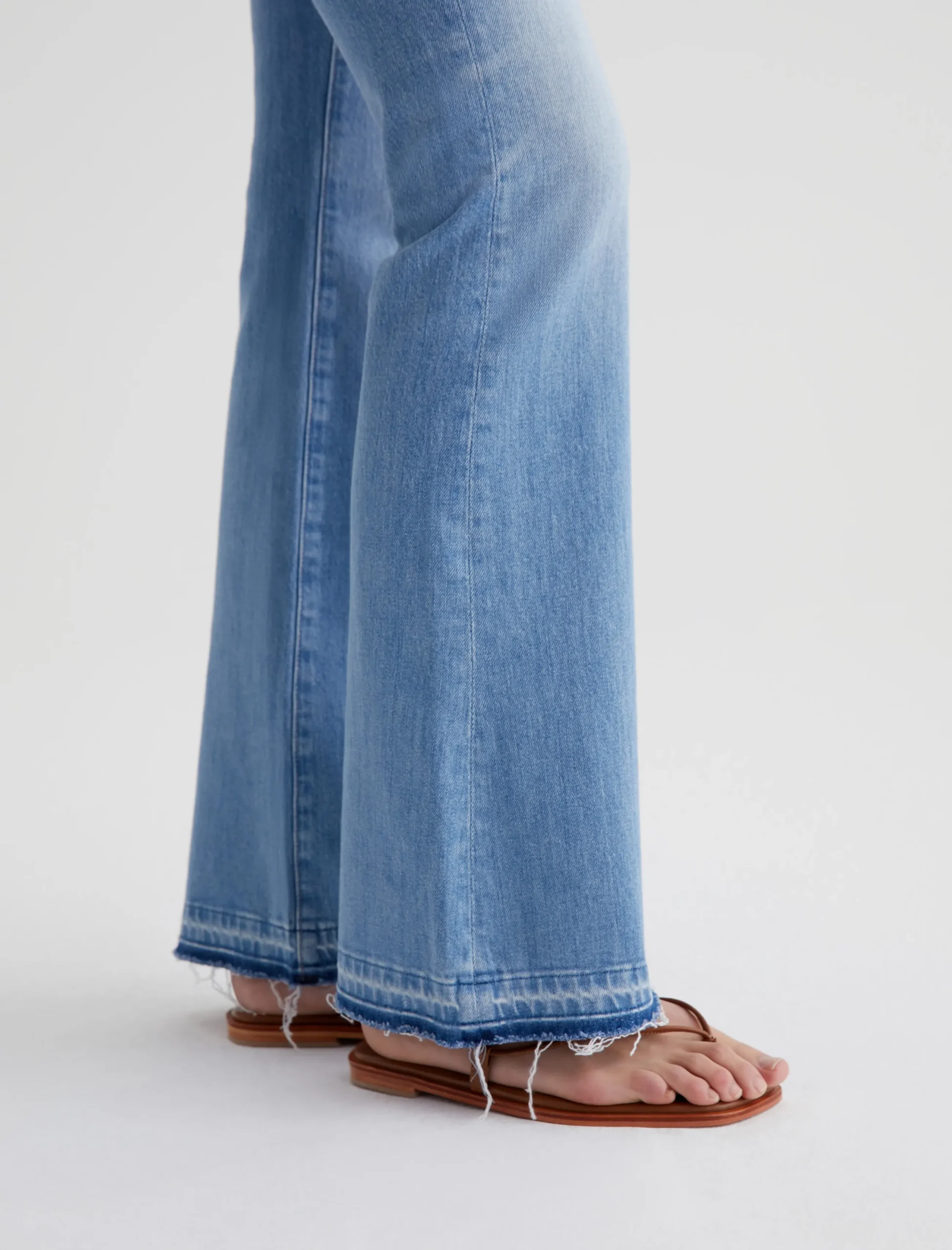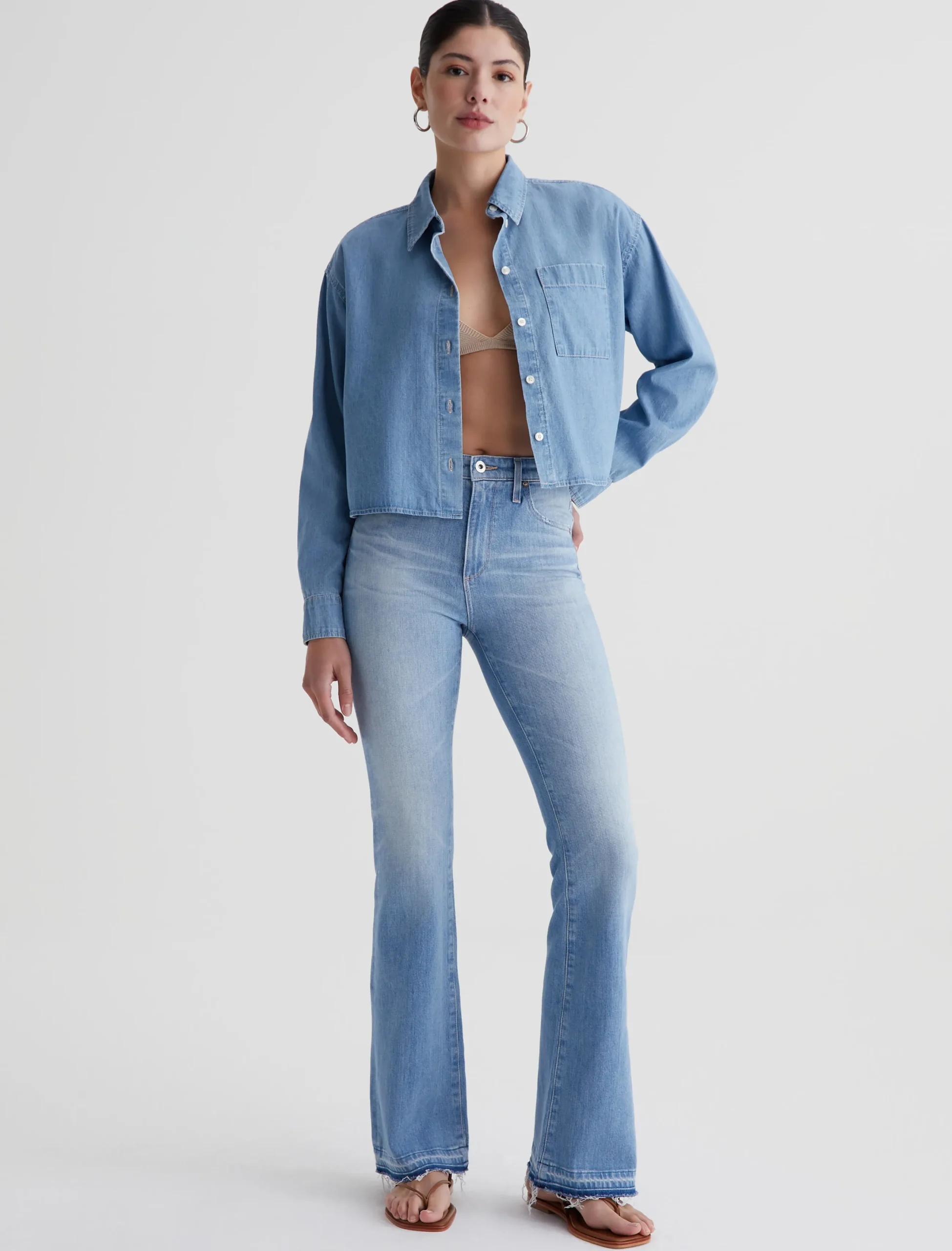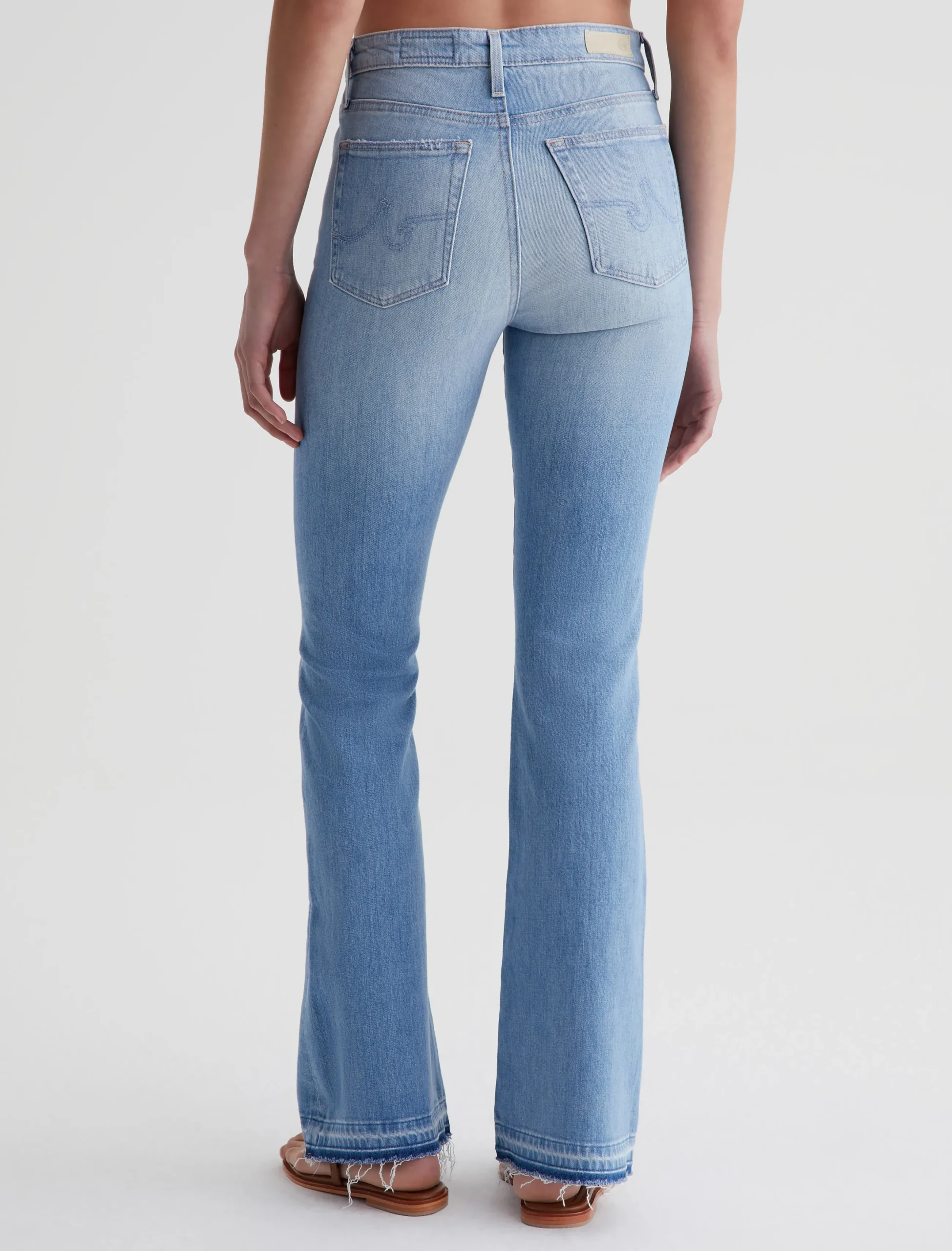 The Farrah Boot is our mid-rise bootcut jean updated by a light, faded wash and let-down hems. Crafted from stretch-blend 11 oz. Journey Denim, these women’s jeans sit right at the natural waist and have a skinny fit through the legs before opening into a subtly flared shape. Complete with worn pocket edges.