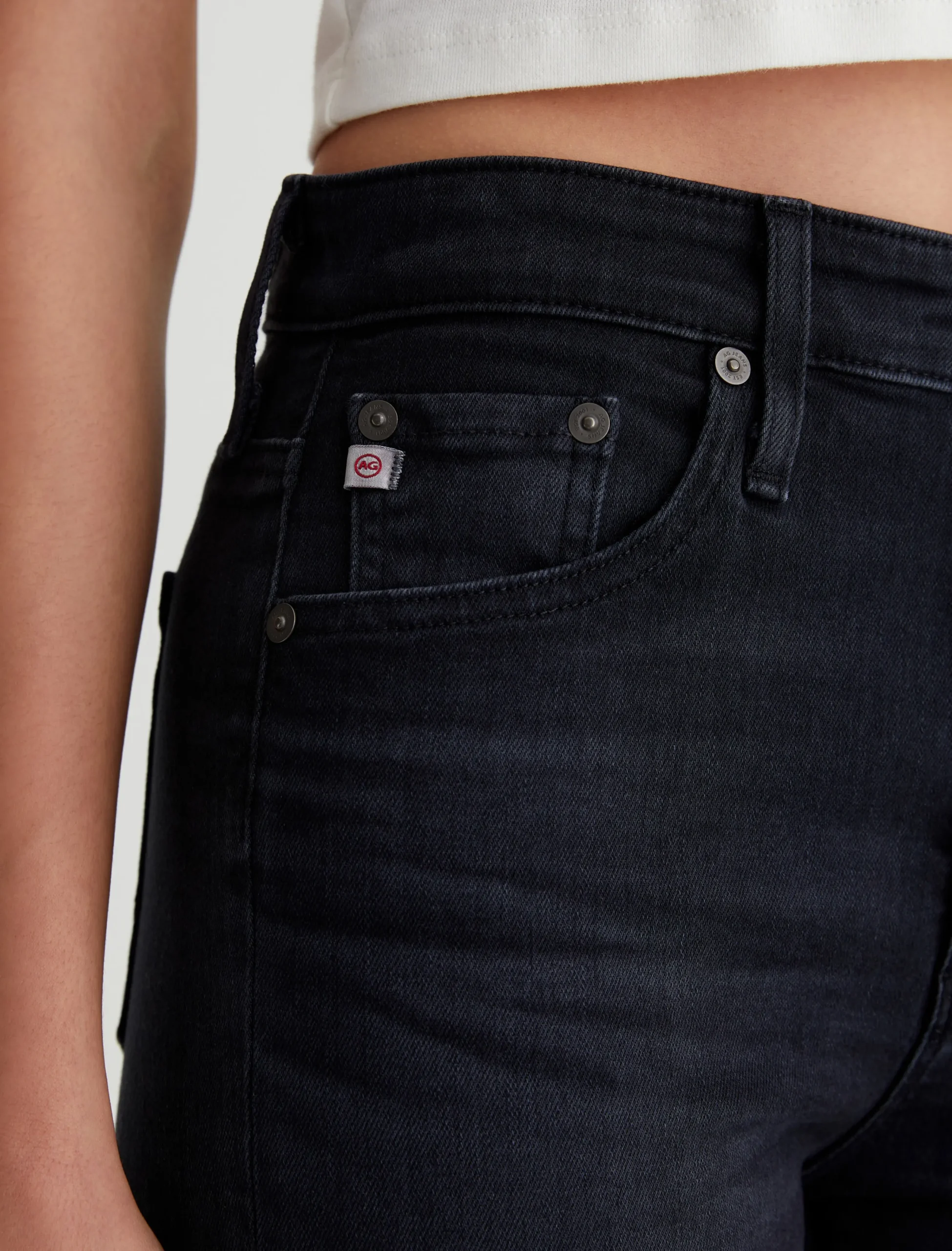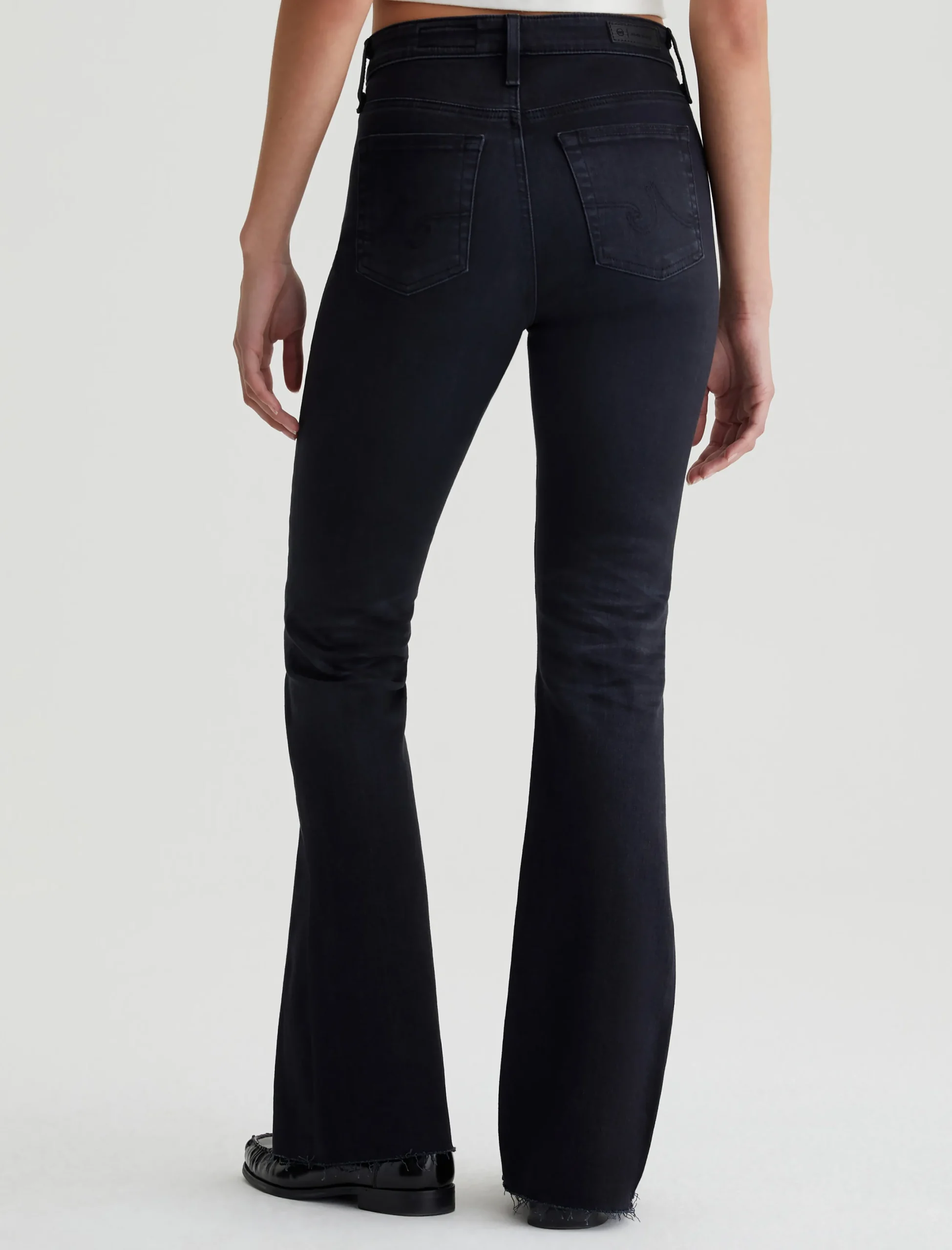 The Farrah Boot is a mid-rise bootcut jean with an AG-ed™ black wash and raw hems. Crafted from 10 oz. Ashen Stretch Denim, it’s faded and whiskered to emulate 4 years of natural wear. The pair sits right at the natural waist and has a skinny fit through the legs before opening into a subtly flared shape.