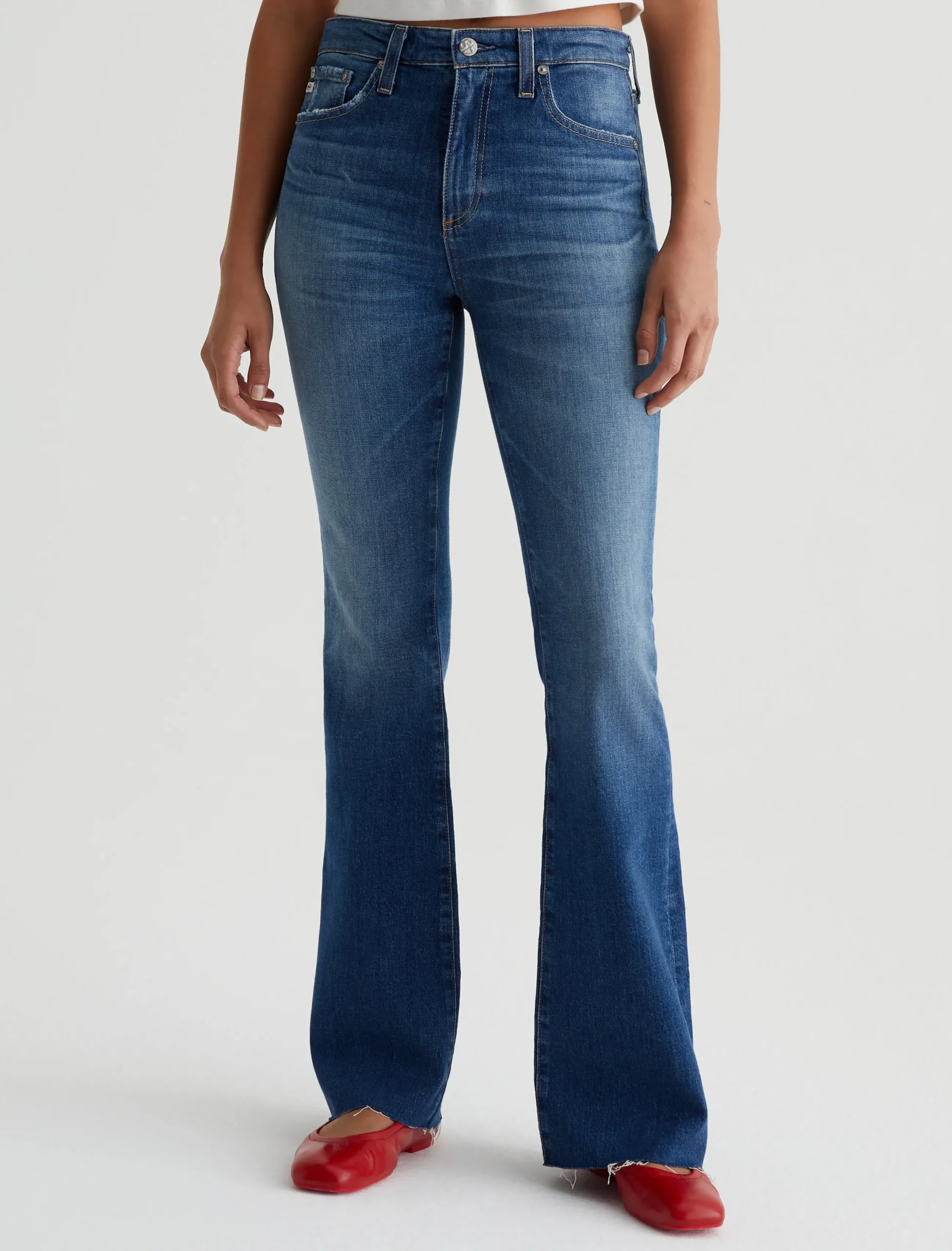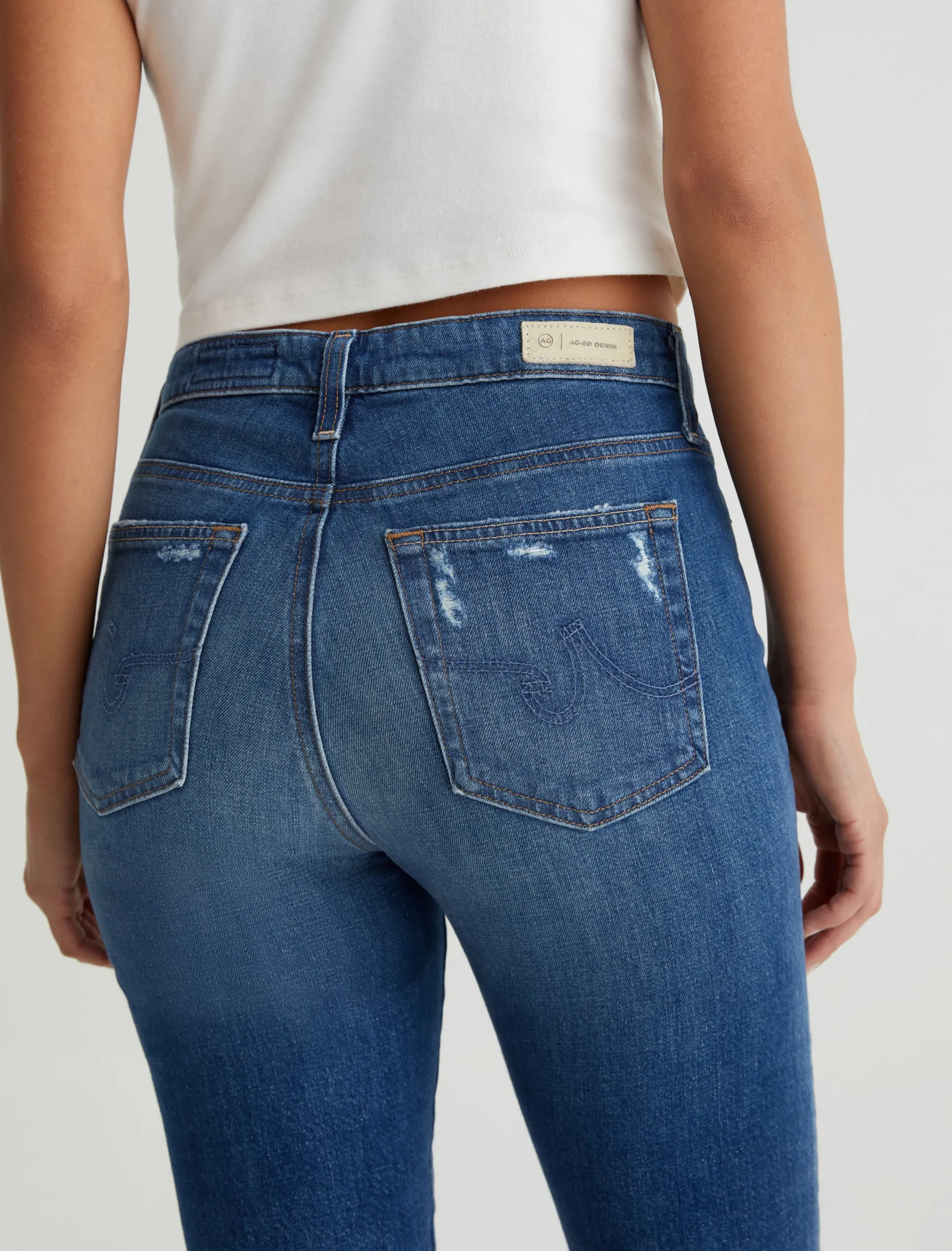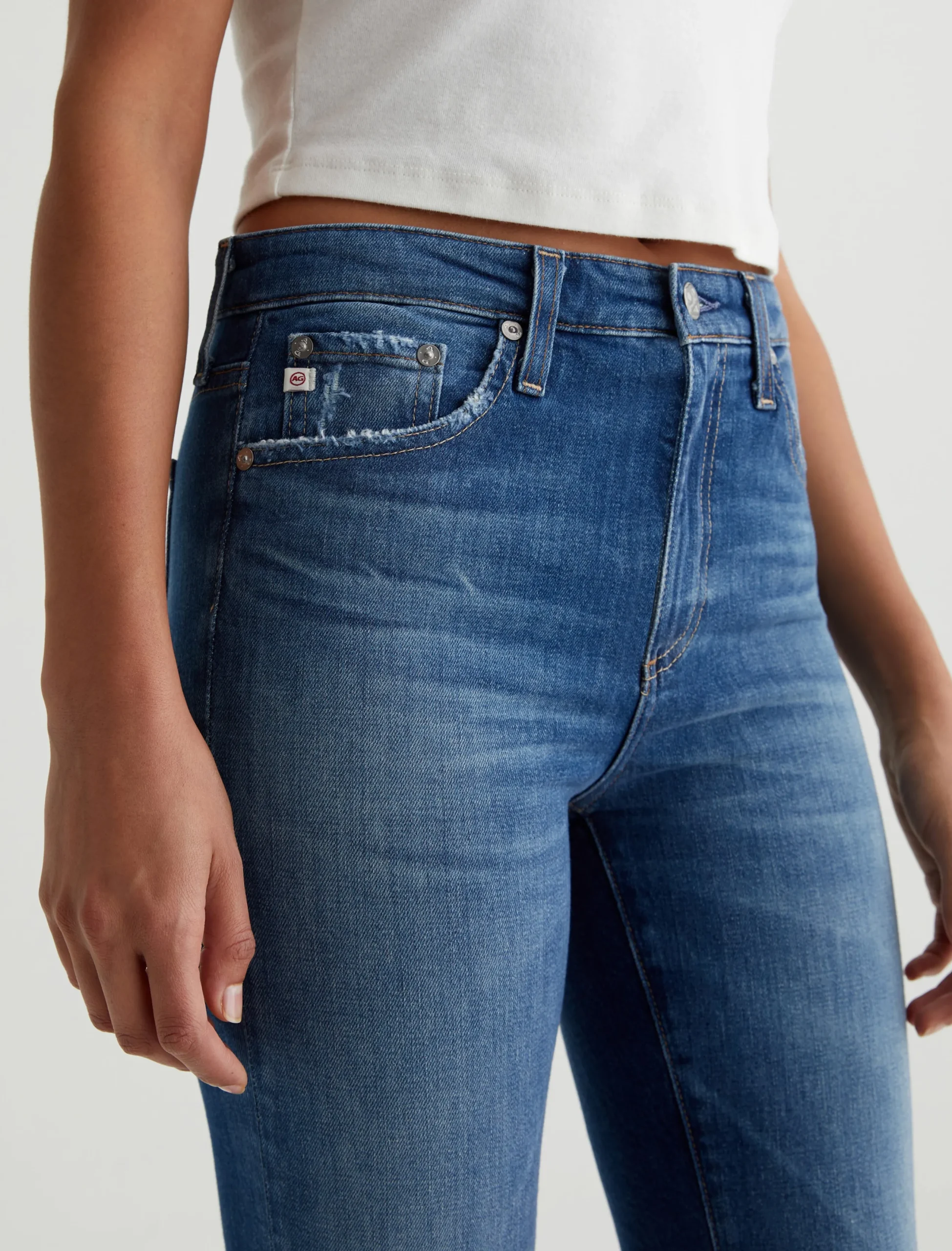 The Farrah Boot is our mid-rise bootcut jean in a medium indigo wash with a 14-year AG-ed™ Denim finish. It’s faded and whiskered, finished by touches of distressing at the pockets and hems. Crafted from stretch-blend 11 oz. Journey Denim, the pair sits right at the natural waist and has a skinny fit through the legs before opening into a subtly flared shape.