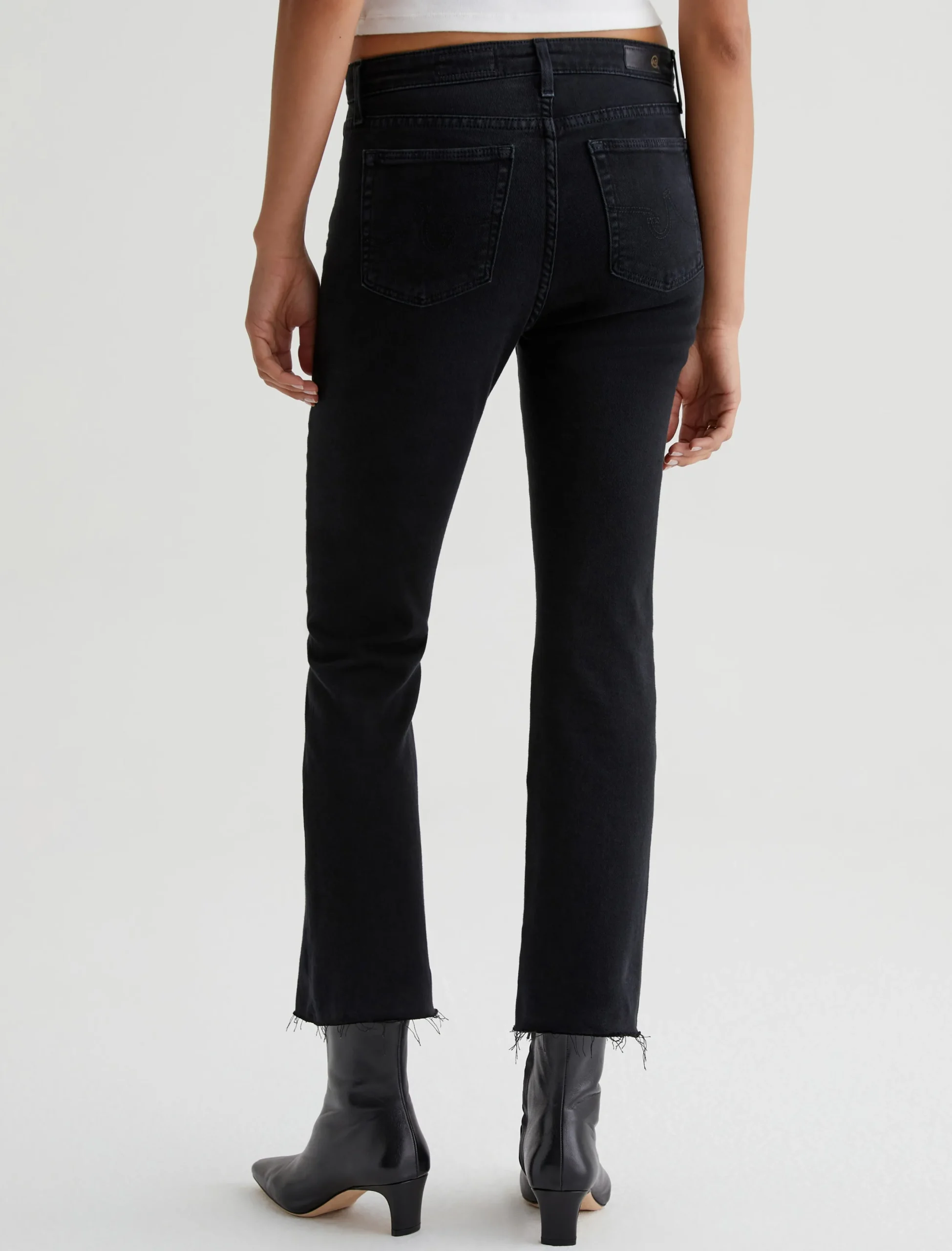 The Farrah Boot Crop jean is a mid-rise cropped bootcut silhouette that’s been sulfur-dyed for a soft black shade. The pair has a skinny fit through the legs before opening into subtly flared raw hems. Made from our exclusive AG Cloud Soft Denim™, these women’s bootcut jeans are designed in 8.7 oz. Hyper Soft Bull Denim, a left-hand twill fabric that allows the yarns to gently relax and untwist for a supple, velvety-soft feel. It’s designed to get even softer as you wear it. Superstretch construction offers added comfort and enhanced recovery.