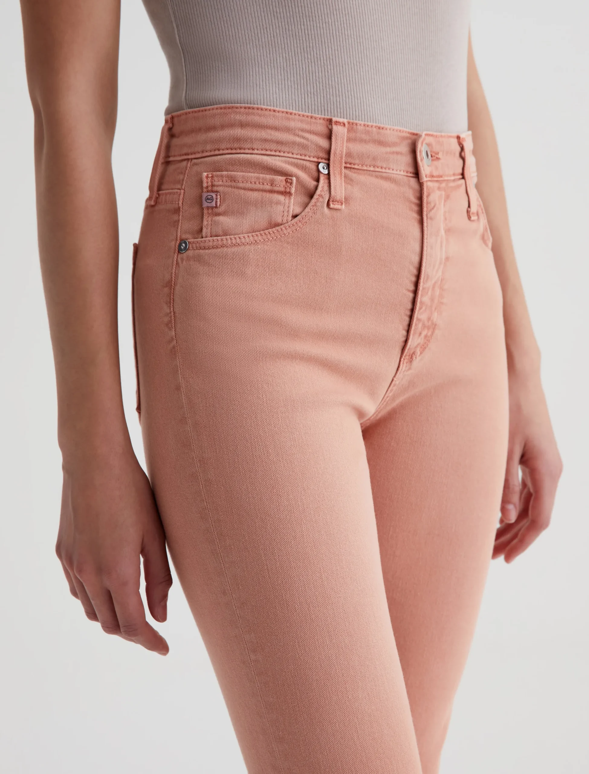 The Farrah Boot Crop jean is a mid-rise cropped bootcut silhouette that’s been sulfur-dyed for a faded peach shade. The pair has a skinny fit through the legs before opening into subtly flared raw hems. Made from our exclusive AG Cloud Soft Denim™, these women’s bootcut jeans are designed in 8.7 oz. Hyper Soft Bull Denim, a left-hand twill fabric that allows the yarns to gently relax and untwist for a supple, velvety feel. It’s designed to get even softer as you wear it. Superstretch construction offers added comfort and enhanced recovery.