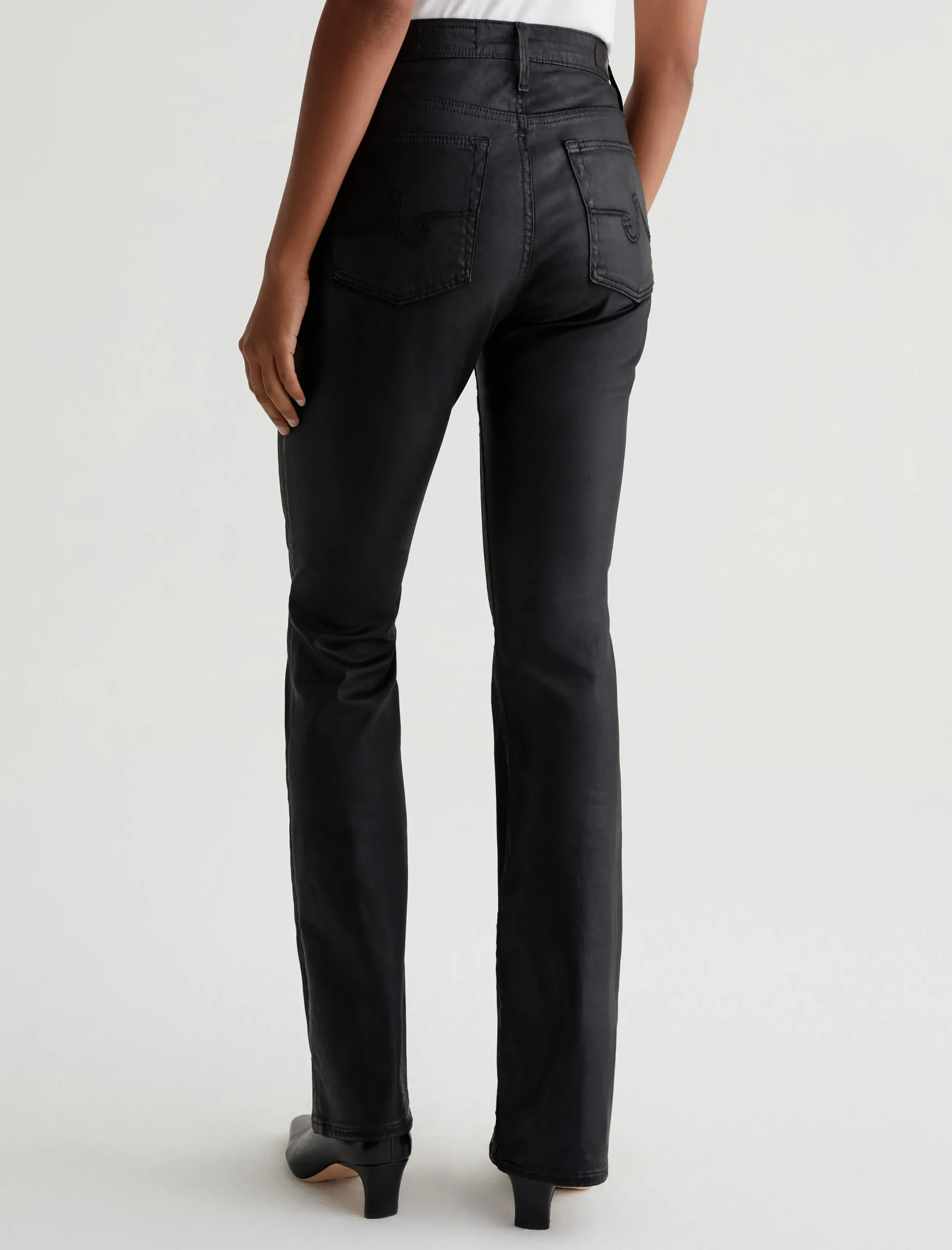 The Farrah Boot features a flattering bootcut silhouette in rich black with a glossed leatherette finish. Made from 7.8 oz. Luscious Super Stretch Sateen, the style has a mid-rise waist and a skinny fit through the legs before opening into subtly flared hems.