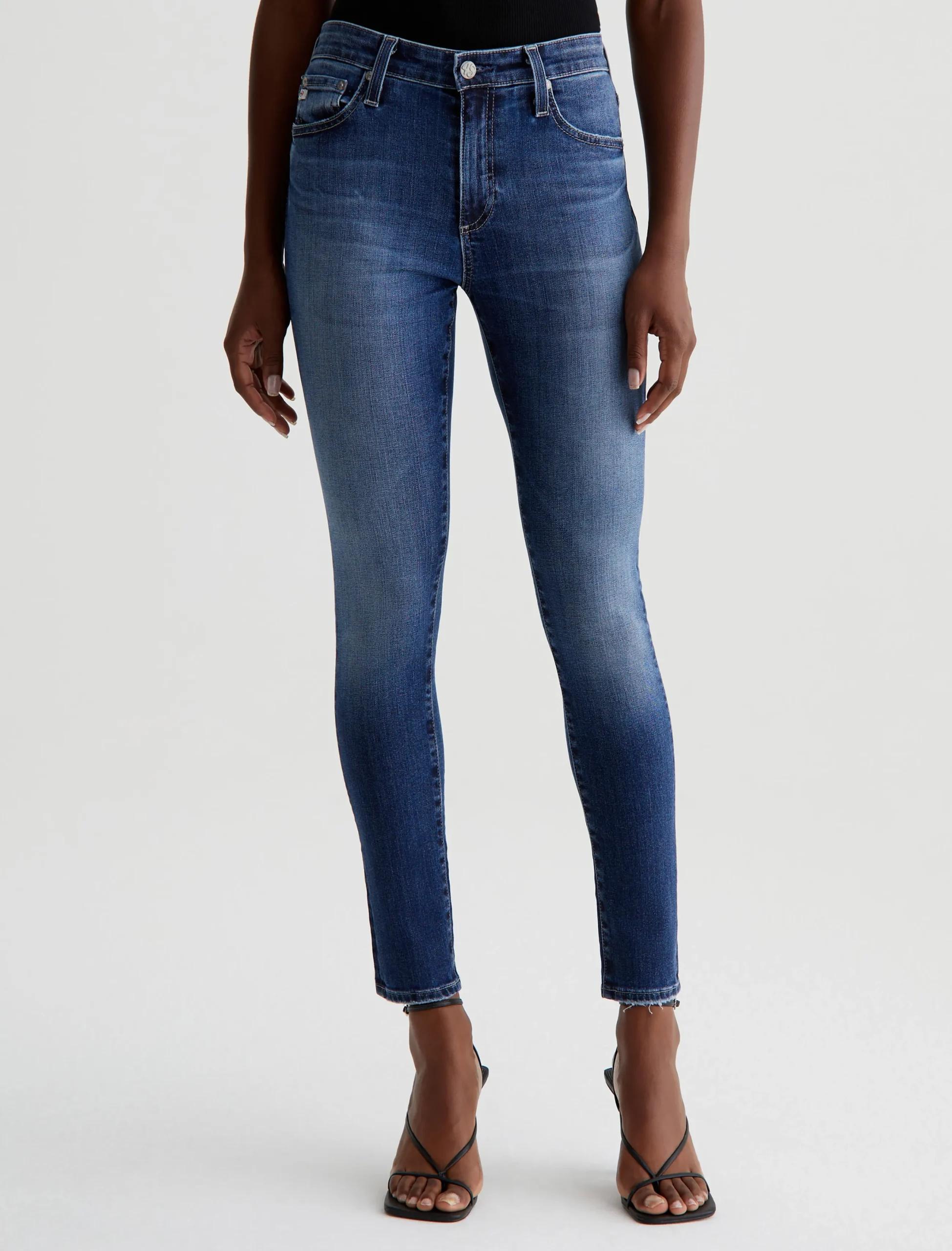 The Farrah Skinny Ankle jeans have a streamlined silhouette in an 11-year dark wash with fading, softened pocket edges, and subtle wear at the hems. Cropped to the ankle, these women’s mid-rise skinny jeans are cut from 10 oz. Rouge Advanced Stretch Denim that hugs the figure and keeps its shape beautifully.