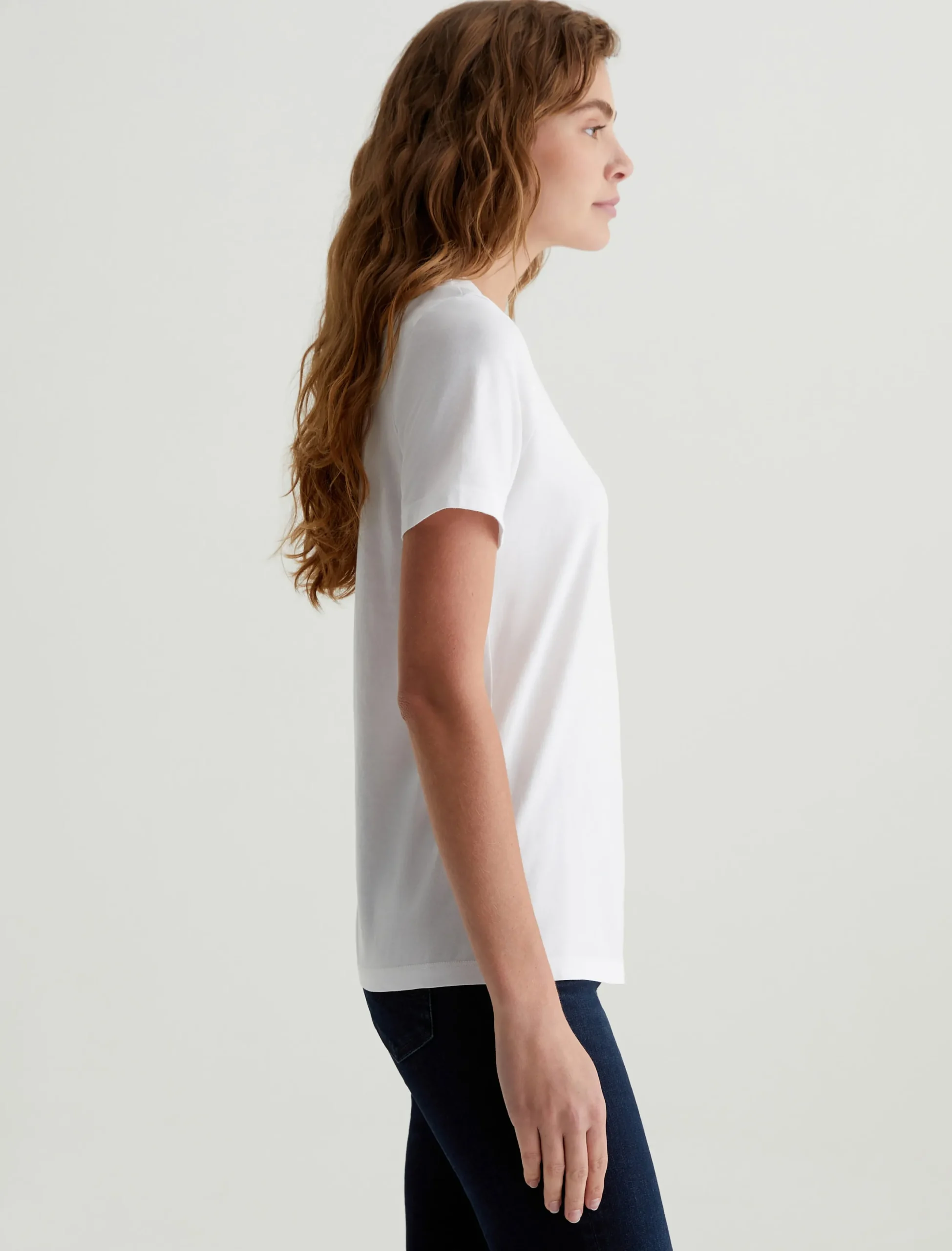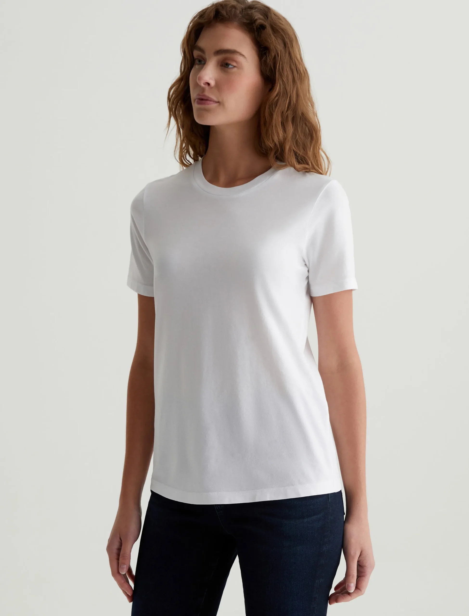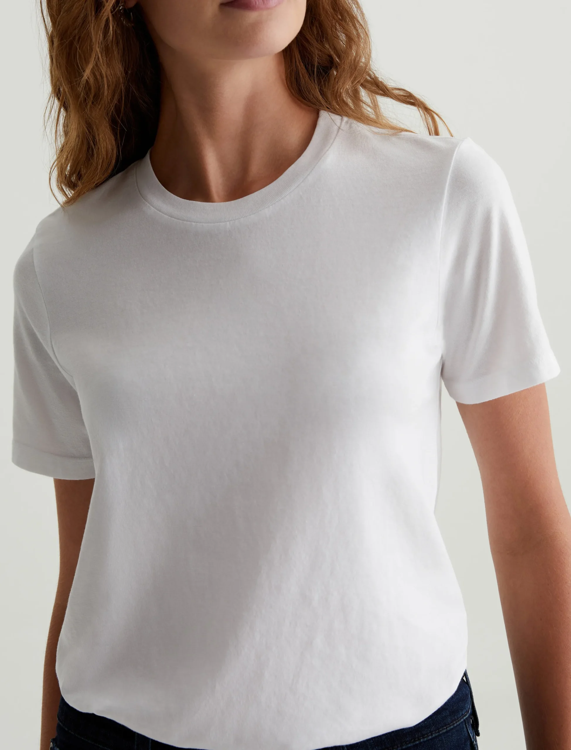 Our Jagger Crew Neck is the perfect short sleeve tee for your assortment of basic essentials. Featuring a clean white hue, this classic crew offers a 1X1 rib neckband. Seasonless, elevated, and luxurious—this fabrication and fit provides unique versatility in styling your everyday look. Our Jersey Knit offers a luxurious comfort that is unrivaled—knitted with both S-twist and Z-twist yarn to sustain longevity and stability, preventing unnecessary twisting and torquing. During the production process, the S-twist yarn is spun counter-clockwise creating a right-handed twill. The Z-twist yarn works in opposition, spinning clockwise for a left-handed twill. This opposition—when working together—yields a softer, more durable fabrication and gives strength to the yarn making it more difficult to pull apart. Designed in 100% Cotton.