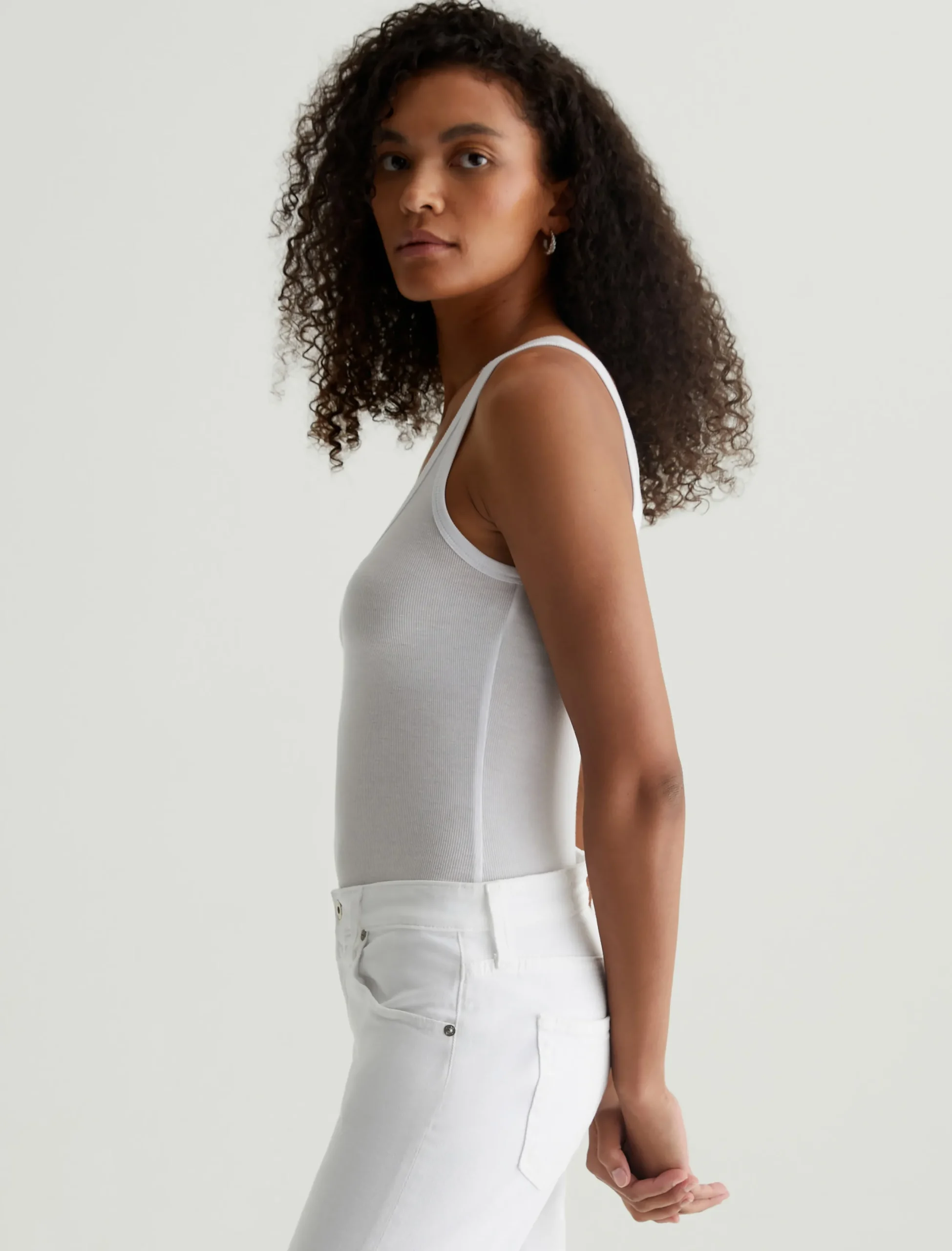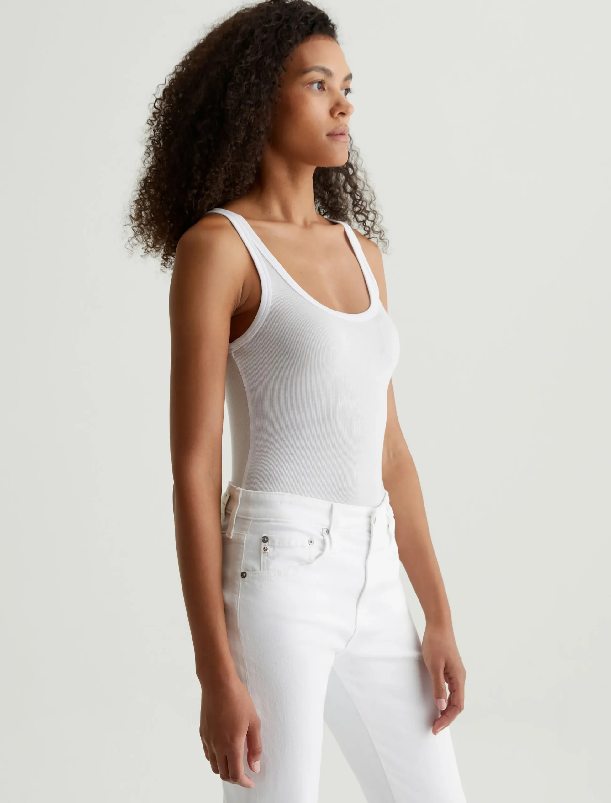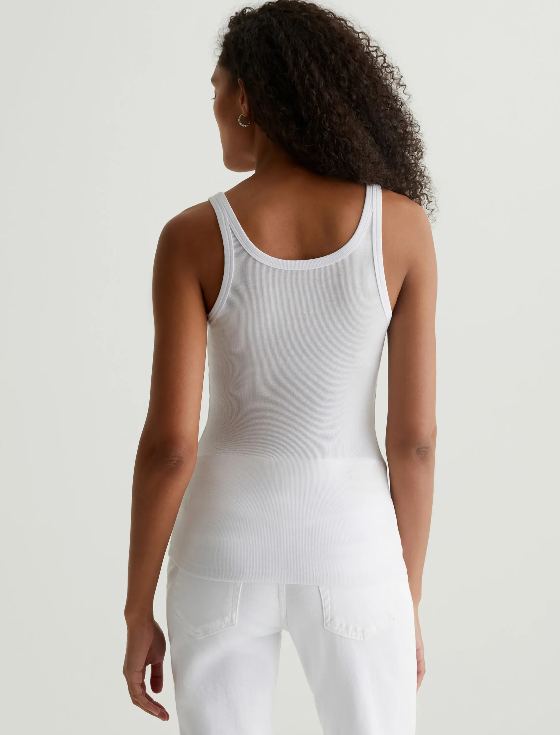 The Jaxon Tank for women features a fitted silhouette with a scoop neckline and slim straps in a racer-inspired shape. An instant go-to in bright white, this women’s tank top has self-binding details for a clean, timeless aesthetic that’s versatile and easy to layer. It’s designed an eco-friendly 2×1 lyocell rib fabrication, offering soft and luxurious wider rib construction.