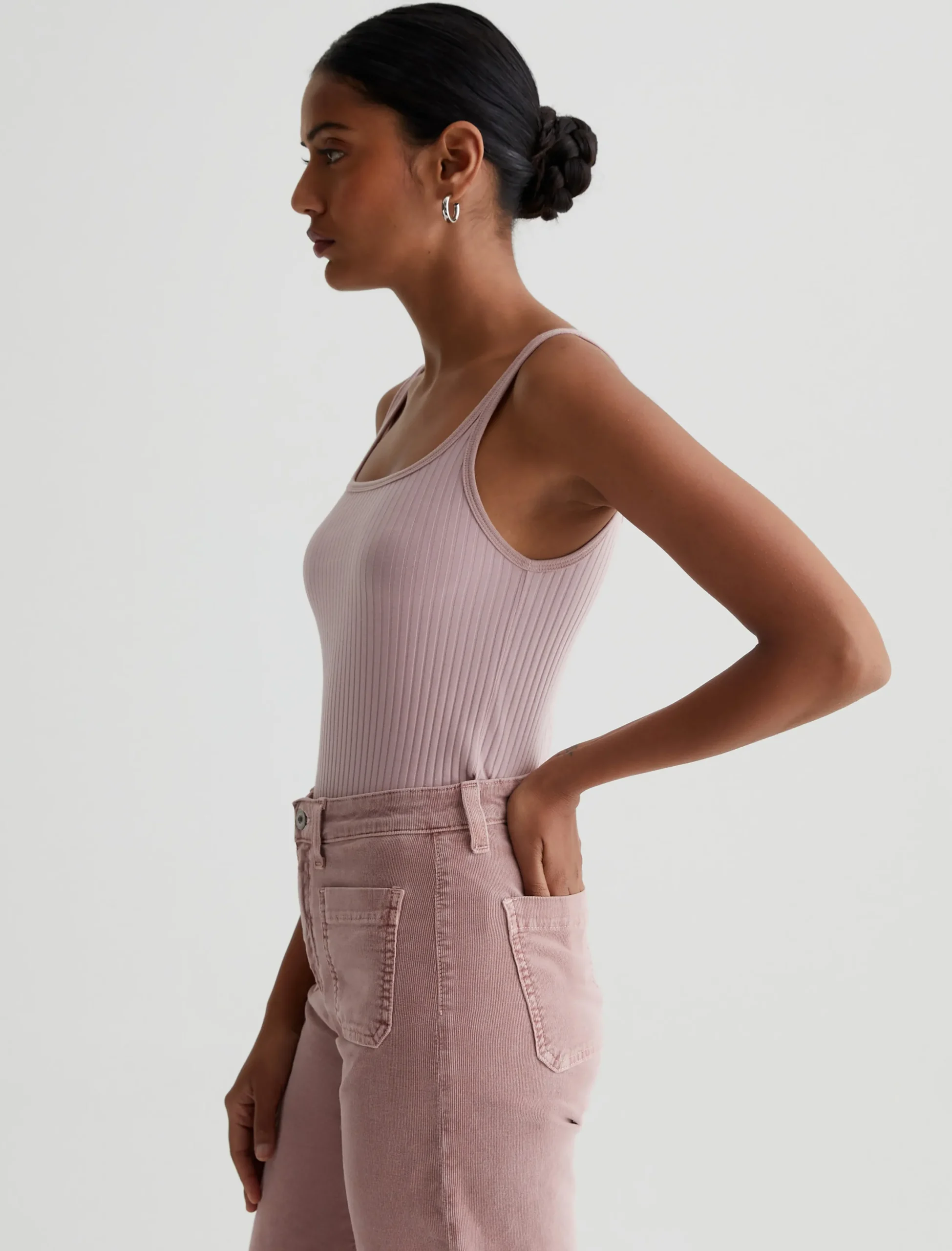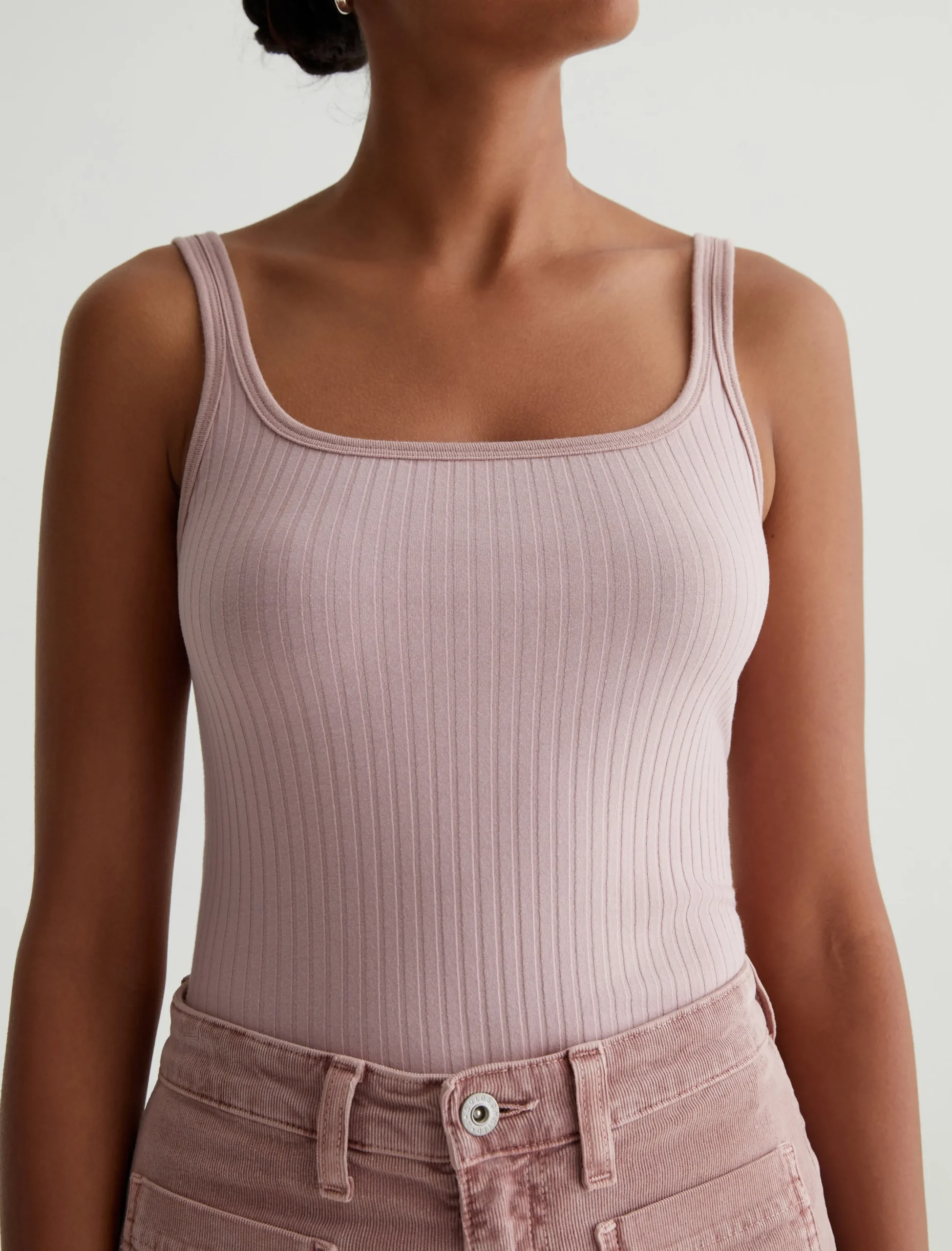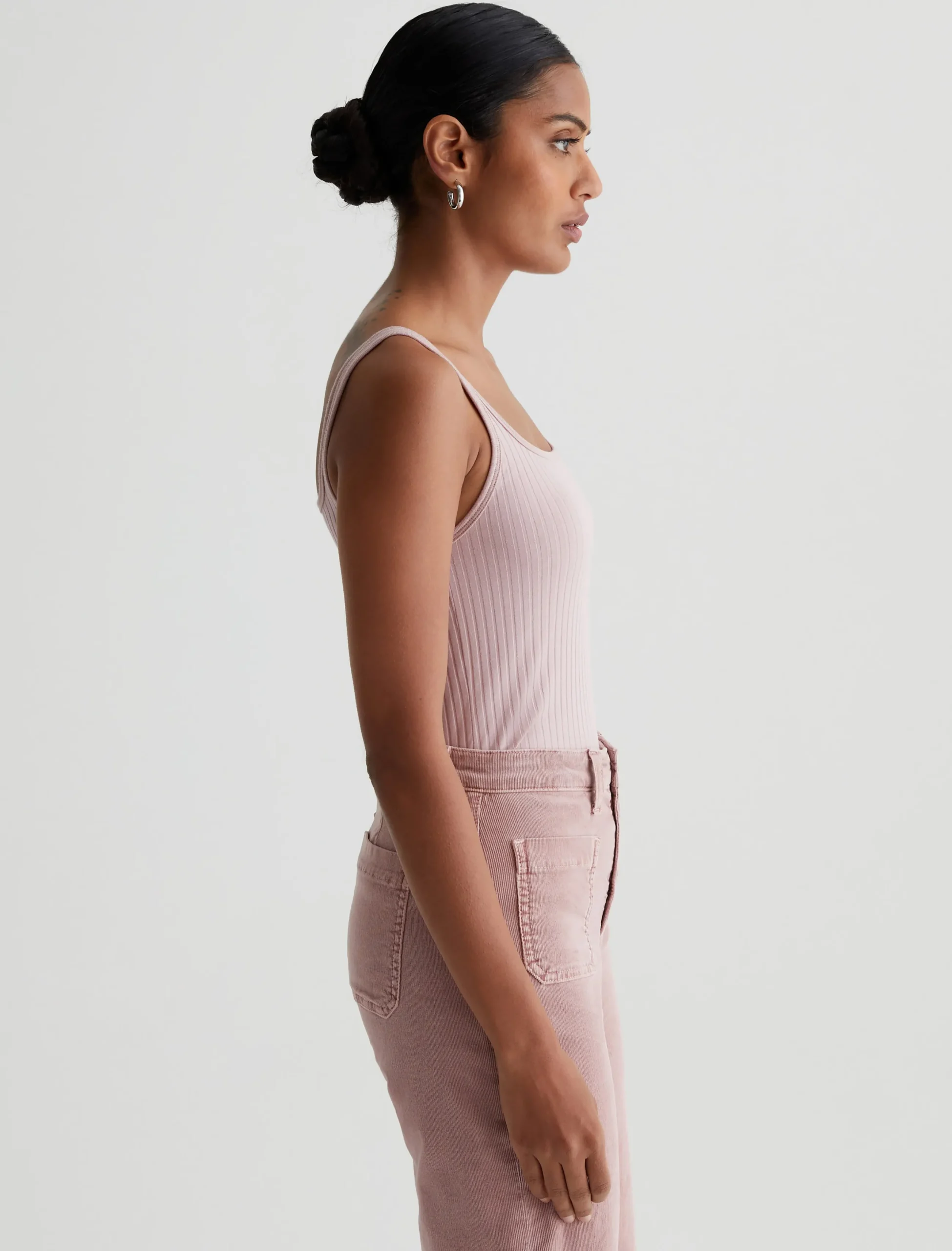 The Jenci Tank sits comfortably close to the body in a soft, stretch-blend rib knit. Featuring a blush-pink color, it’s cut for a slim fit and has a rounded square neckline with binding at the edges.