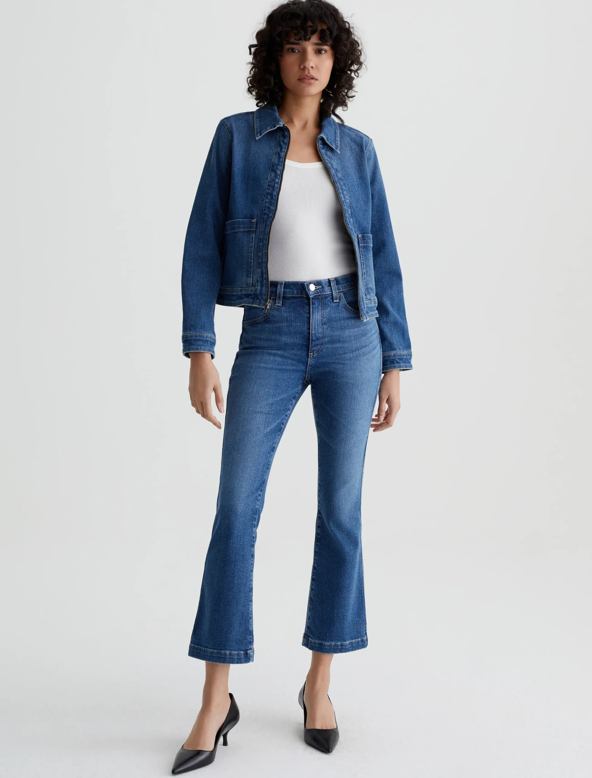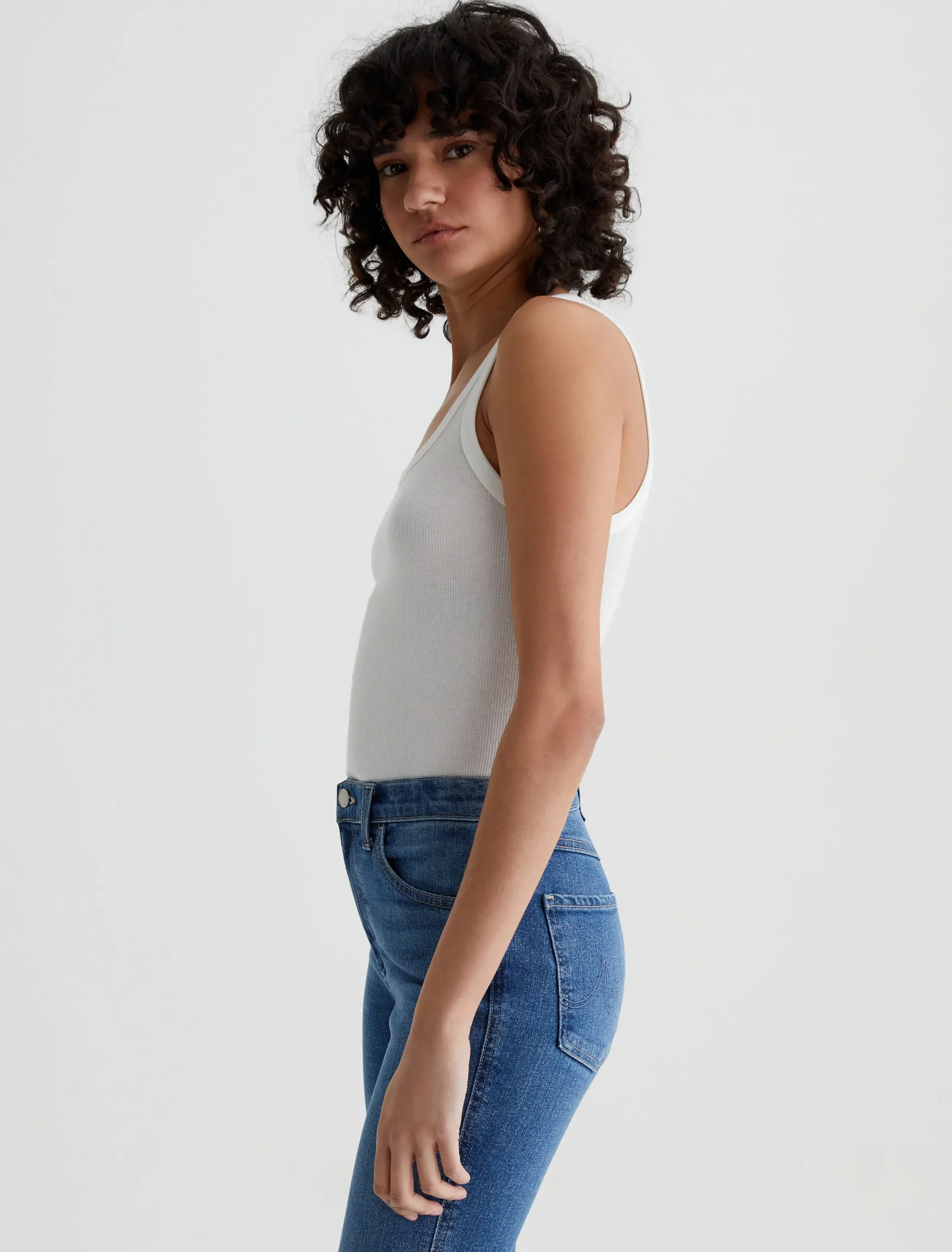 The Kura Tank in white has a slim fit in a figure-clinging rib knit. It’s blended with cotton and lyocell for natural breathability and extra softness.