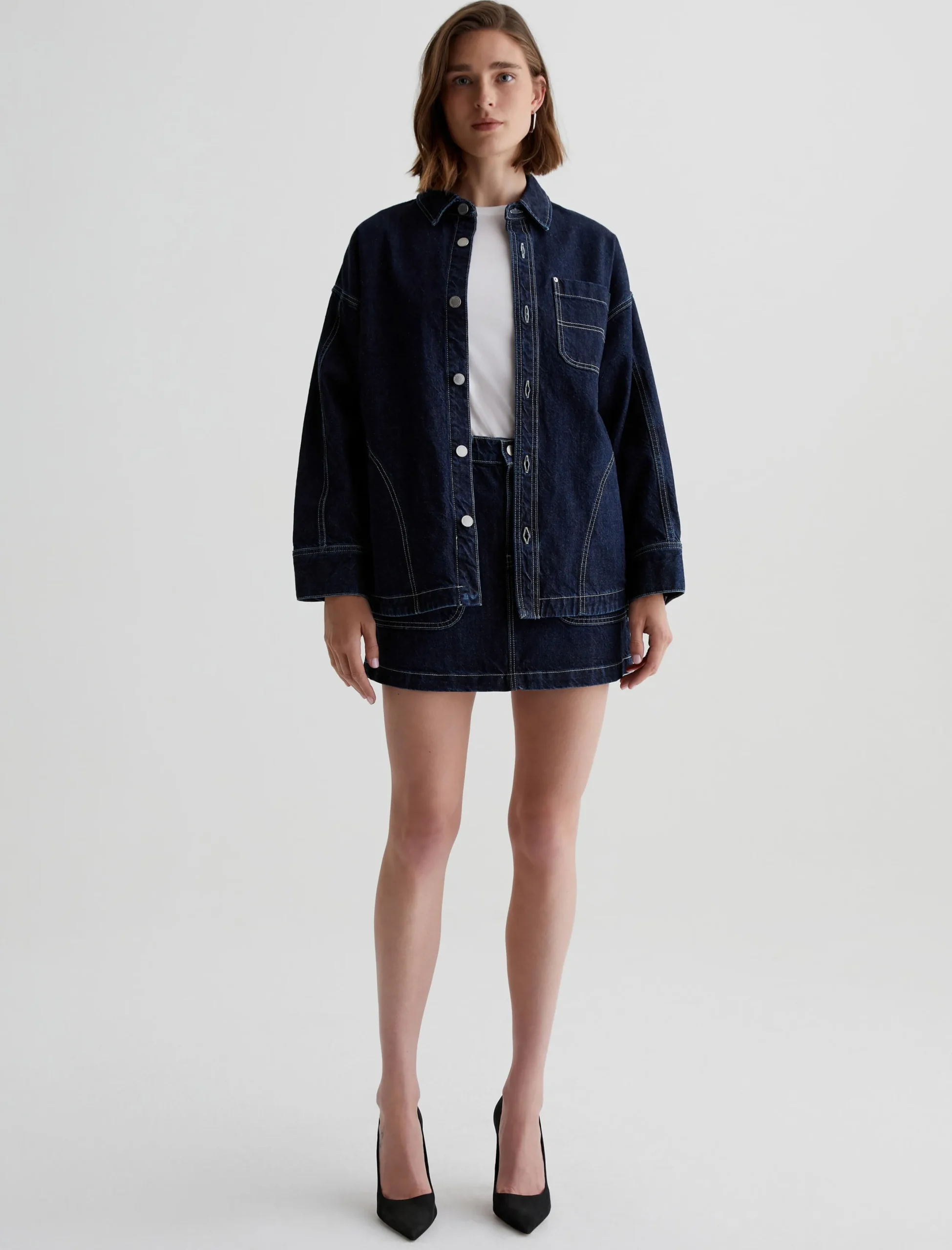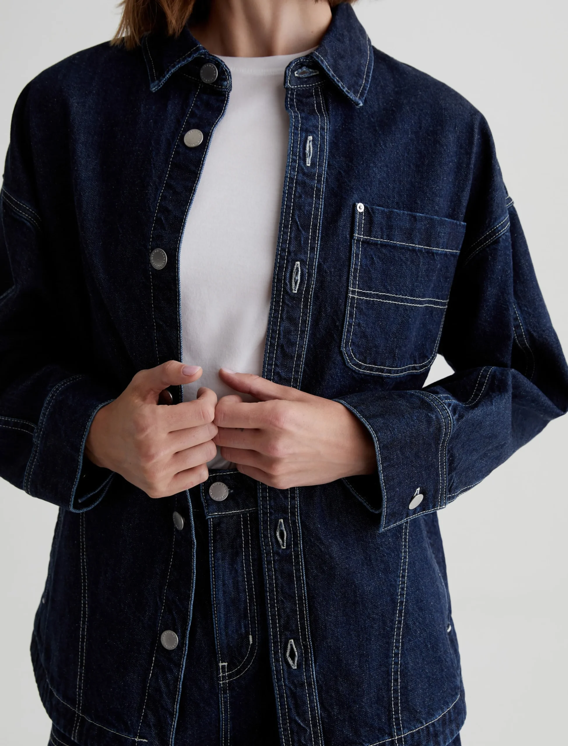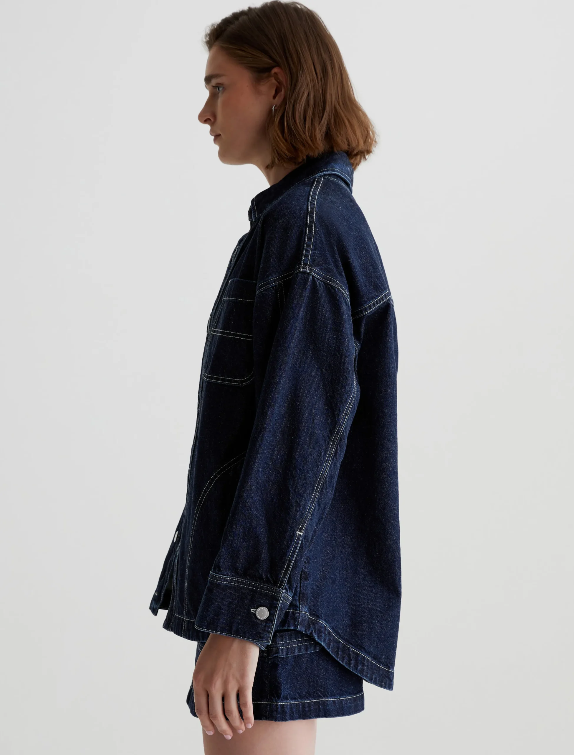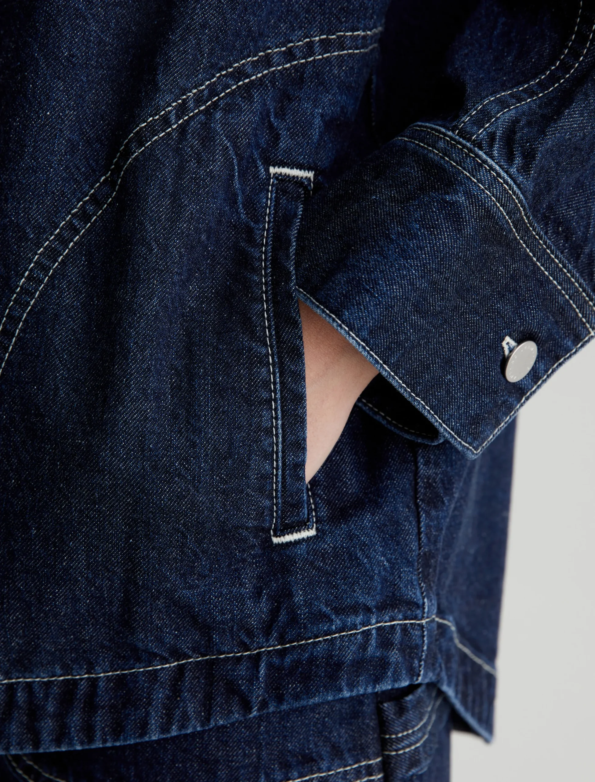 Lucien is a utility-inspired shirt jacket in 11.75 oz. Legion Denim from Japan. Rigid and durable, it’s done in a clean, dark rinse and features contrast stitching that highlights the workwear elements—a single chest pocket, side welt pockets, and button placket with metal hardware.