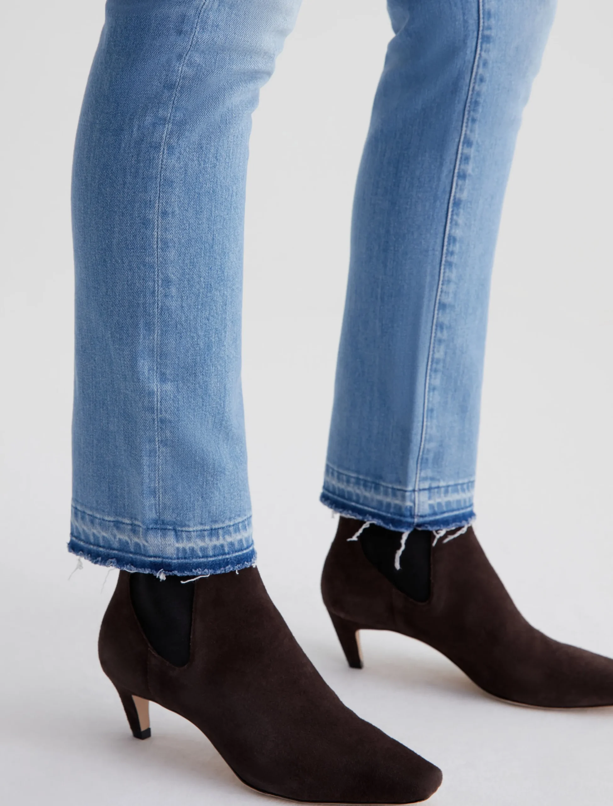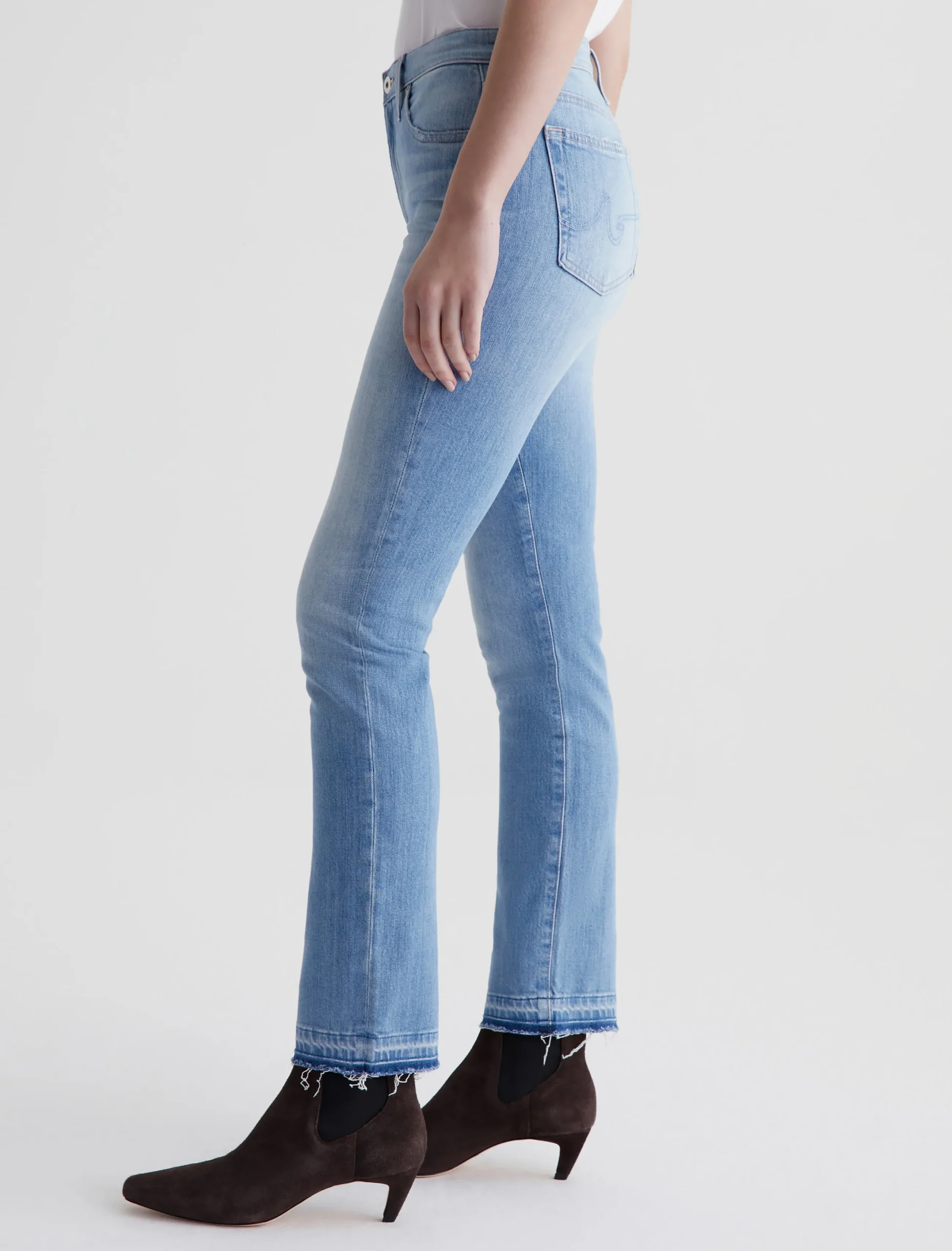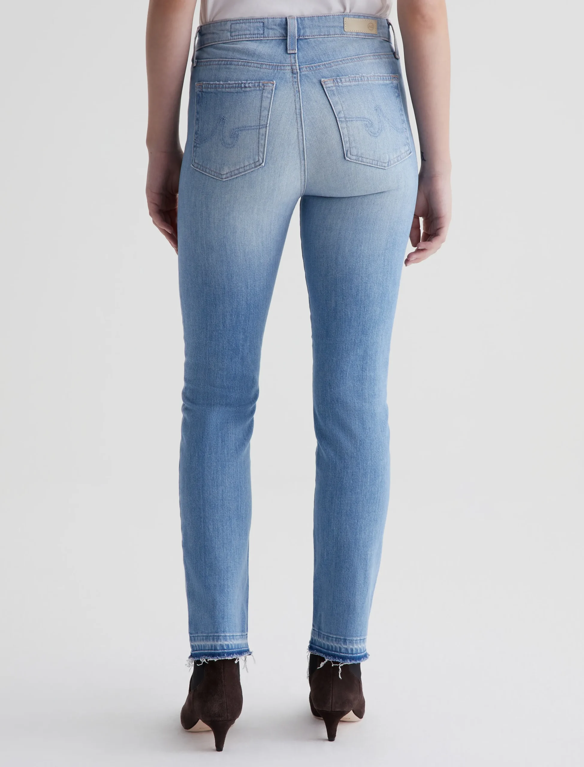 Mari is a mid-rise slim straight jean featuring a light, faded wash and let-down hems. Made from stretch-blend 11 oz. Journey Denim, these high-waisted jeans fit easy around the hips and have straight-leg silhouette that slims down at the leg openings.