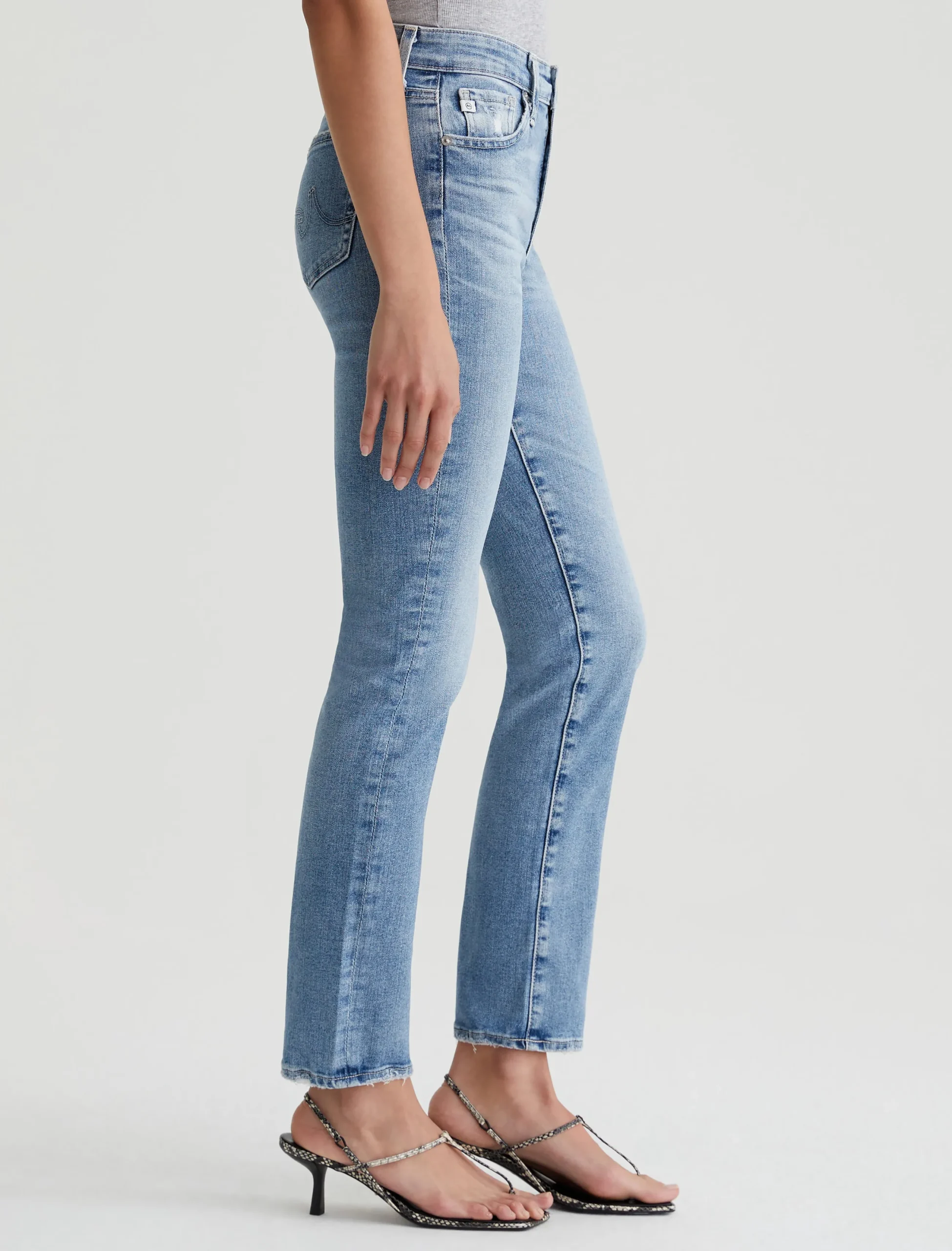 Mari is a mid-rise slim straight jean featuring a light blue wash with heavy fading and distressed pockets. Mari offers a flattering mid-rise waist and fits easy around the hips, finished with a straight leg and subtle slim leg opening. These women’s five-pocket jeans are designed in 10 Oz. Empower Denim with superstretch construction