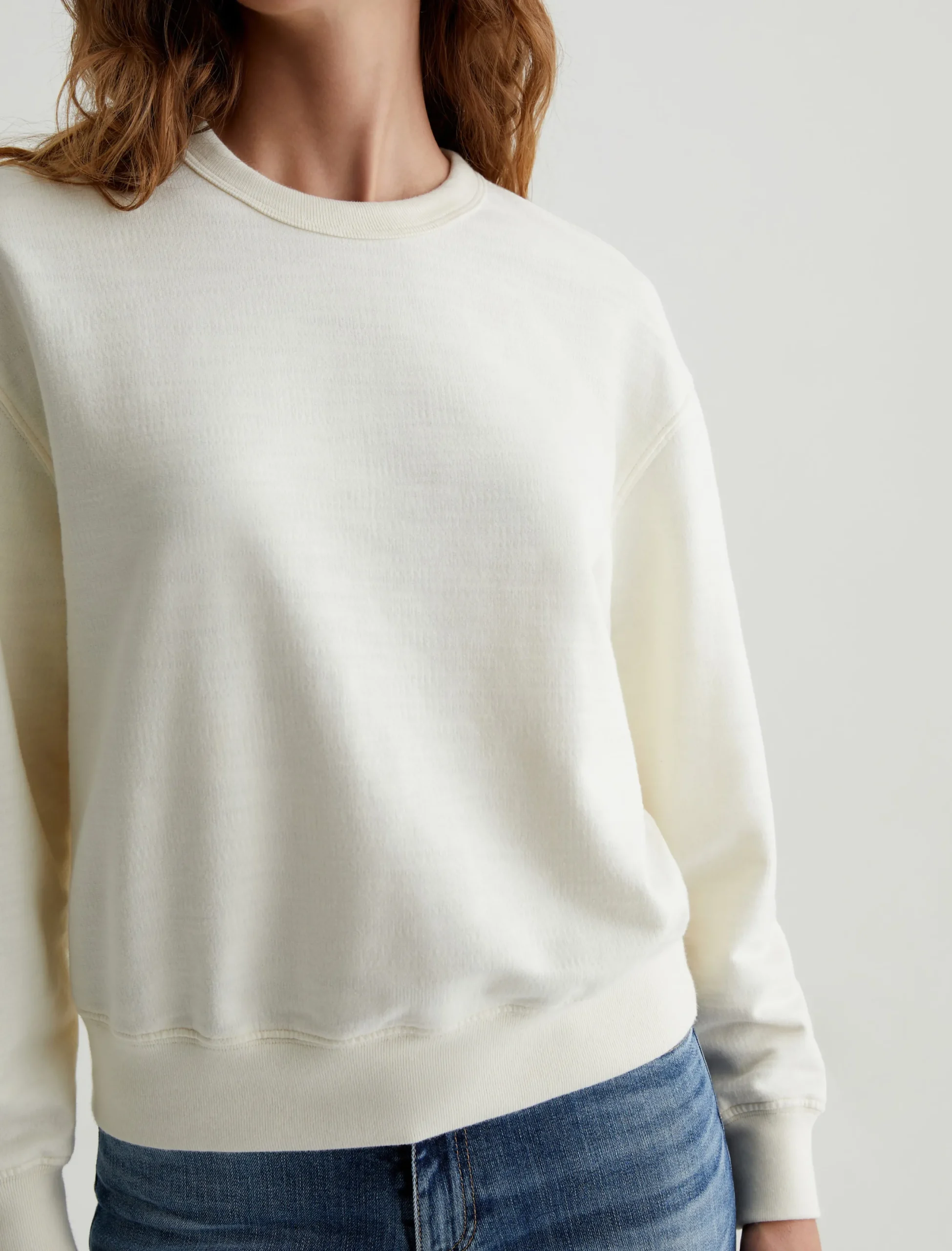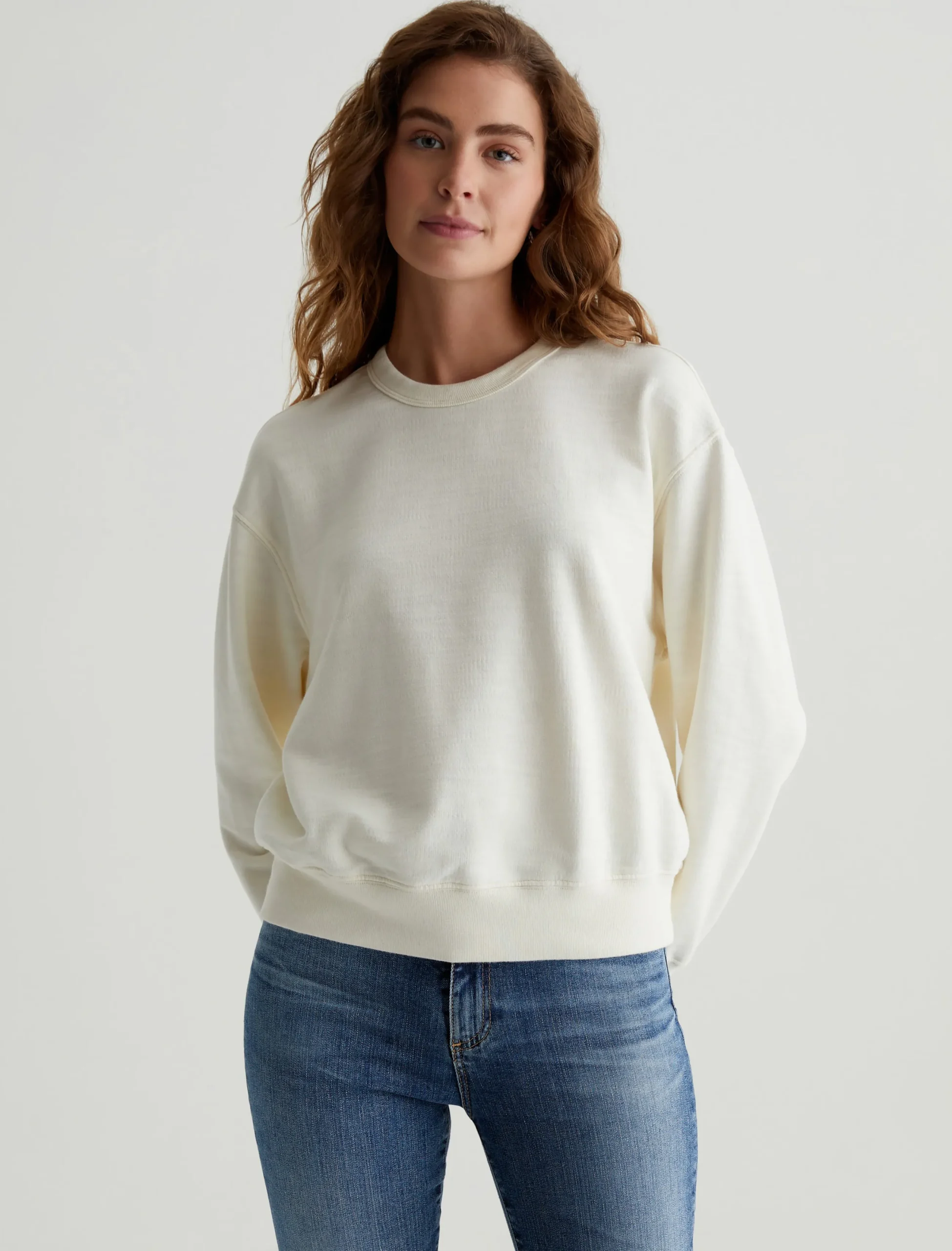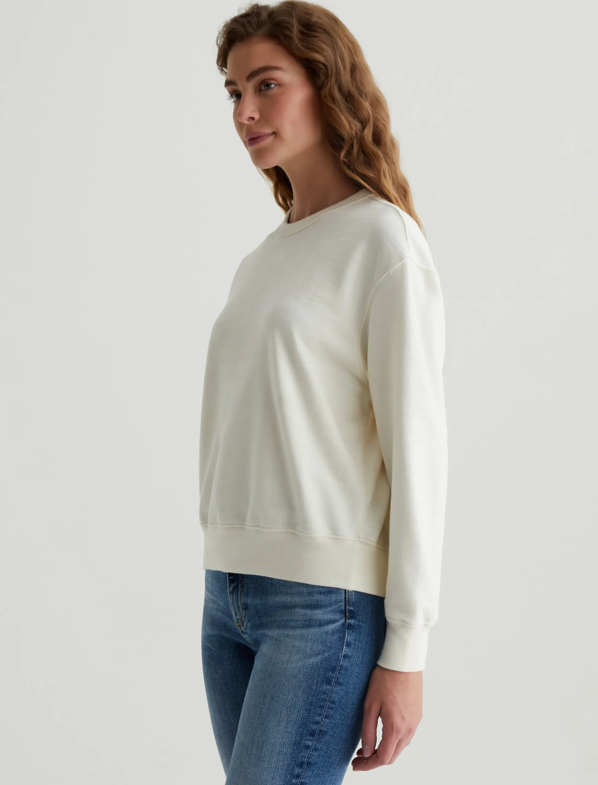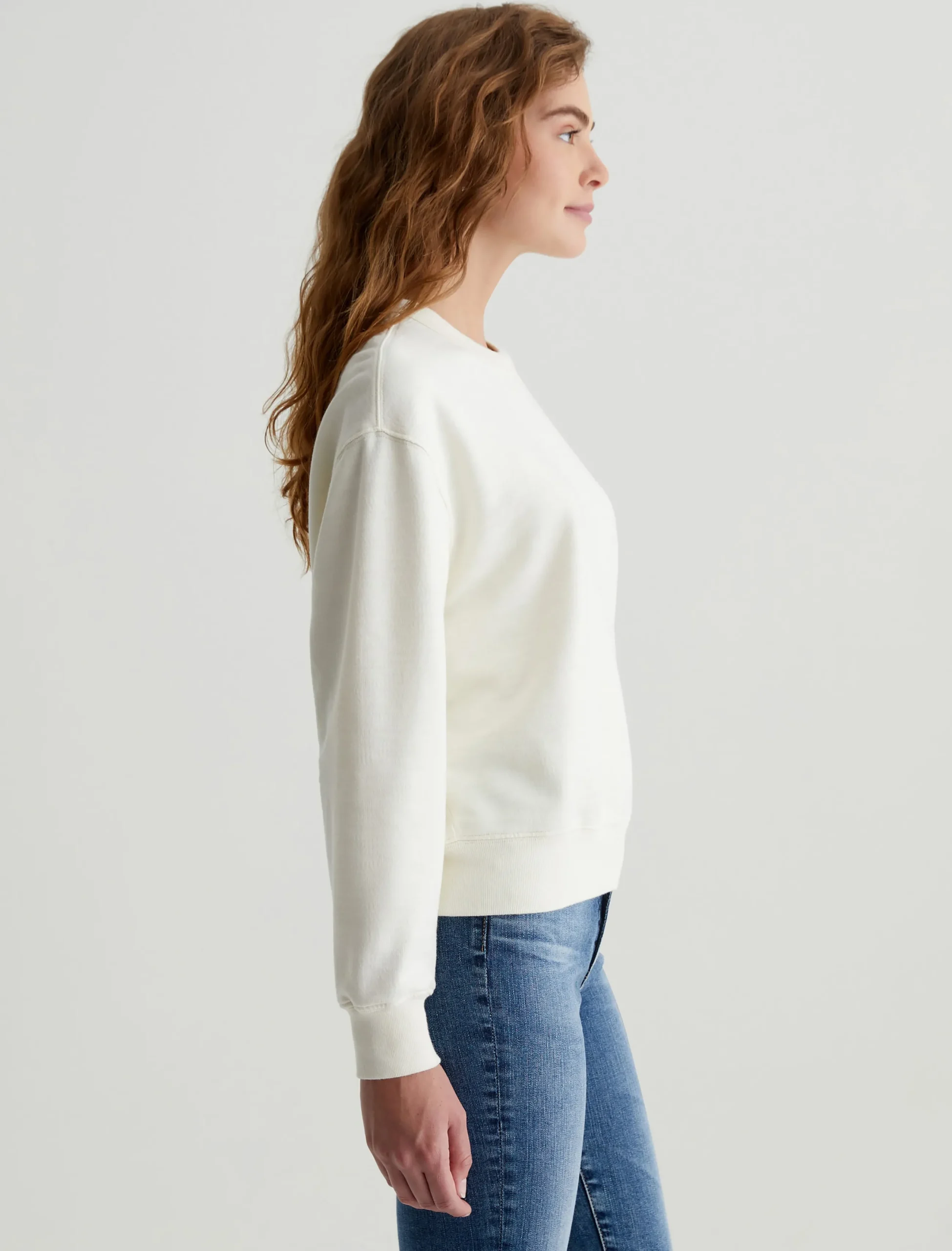 Our Nova Crew is both elevated and comfortable, employing a slouchy silhouette that can be worn relaxed or ready for a night with the girls. This women’s sweatshirt offers a classic crewneck and white hue. Designed in our Cotton Slub Loopback Terry. 100% Cotton.