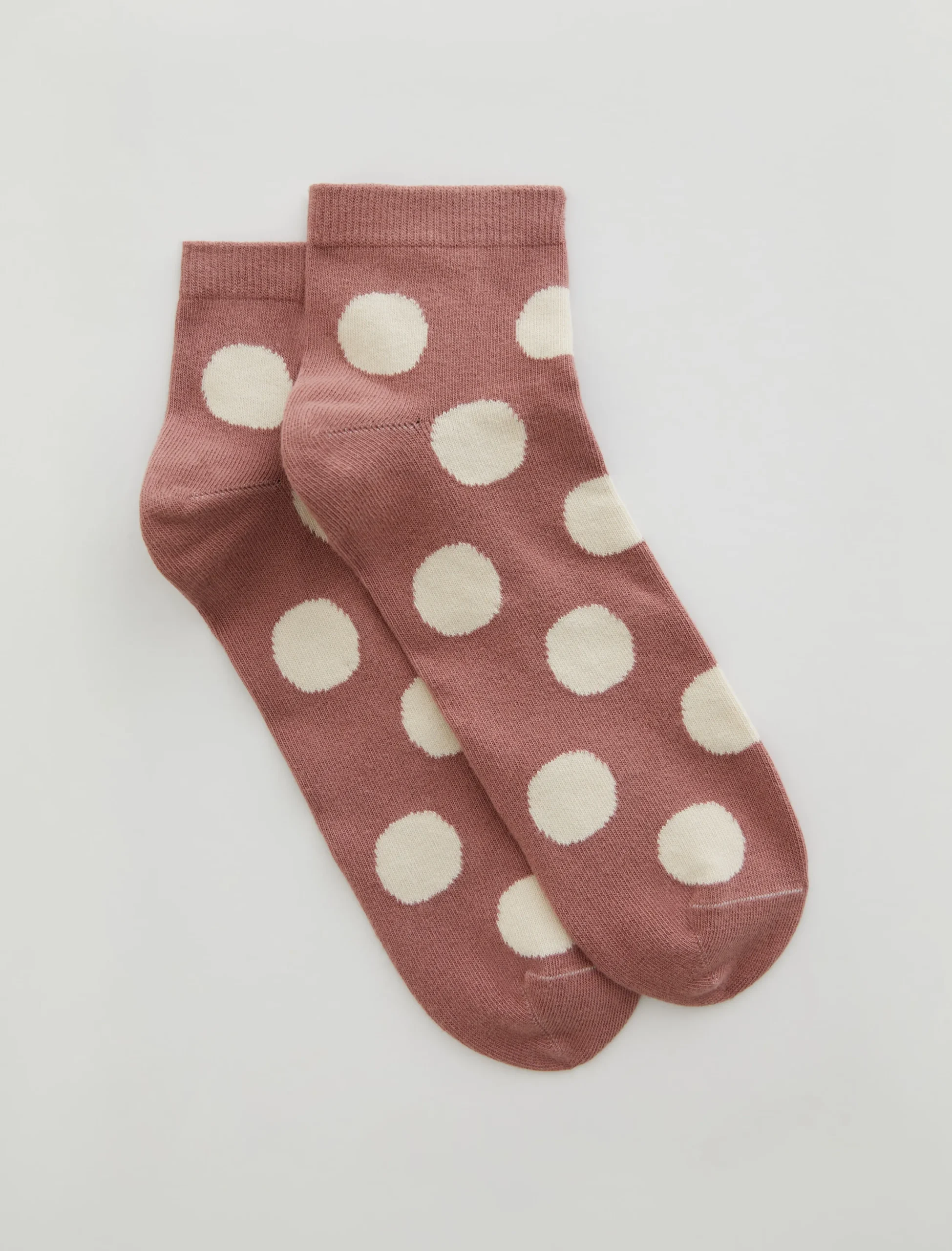 This sock is our classic one quarter sock. Featuring a dot pattern, this pair has been knitted from a comfortable cotton blend and ribbed through the ankles.